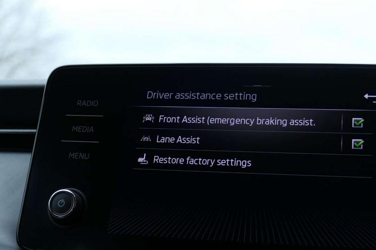 Alarm with interior monitoring, back up horn and tilt sensor with safe function and towing protection, Anti-theft wheel bolts, Immobiliser, Remote central locking with SAFE system, 2 USB - C ports with 1x adaptor cable, 8 speakers, Auxiliary input socket, DAB Digital radio, 3x3 point rear seatbelts, Airbags - driver and front passenger, ESP, Front passenger airbag deactivation switch, Front side airbags with curtain airbags, Hill hold control, Manual parking brake, One tone horn, Rear disc brakes, Seatbelt reminder for driver an co-driver, Traction control, Tyre pressure monitor, Auto dimming rear view mirror, Body colour bumpers, Body colour door mirrors and handles, Chrome grille surround, Electrically adjustable and heated door mirrors, Front and rear electric windows, Headlight range control, Heated rear window, Light and rain sensors, Rear fog lights, Rear wiper, 12V Accessory socket in centre console, Chrome inner door handles, Front head restraints, Glove compartment with illumination, Ice scraper, Isofix child seat fittings on outer rear seats, ISOFIX on front passenger seat, Manual lumbar support for front seats, Rake/reach adjustable steering wheel, Reading lights for driver and front passenger, Sun visor with make up mirror for front passenger, Textile floor mats, Third rear headrest, Top tether for front passenger seat, Umbrella in driver's door, Bluetooth system, E-call, Front assist system, Lane assist, PAS, Service indicator, Speed limiter, Trip computer, Wireless SmartLink for Apple Car Play,