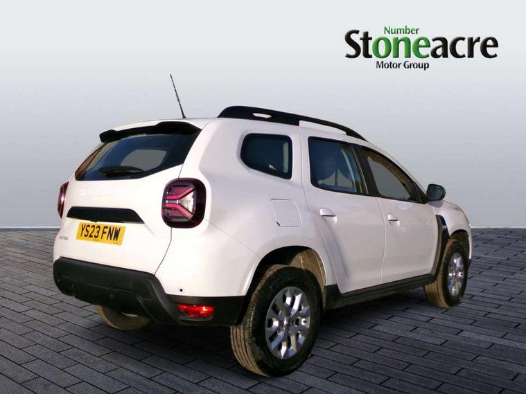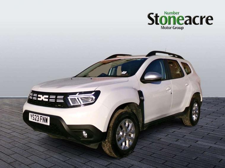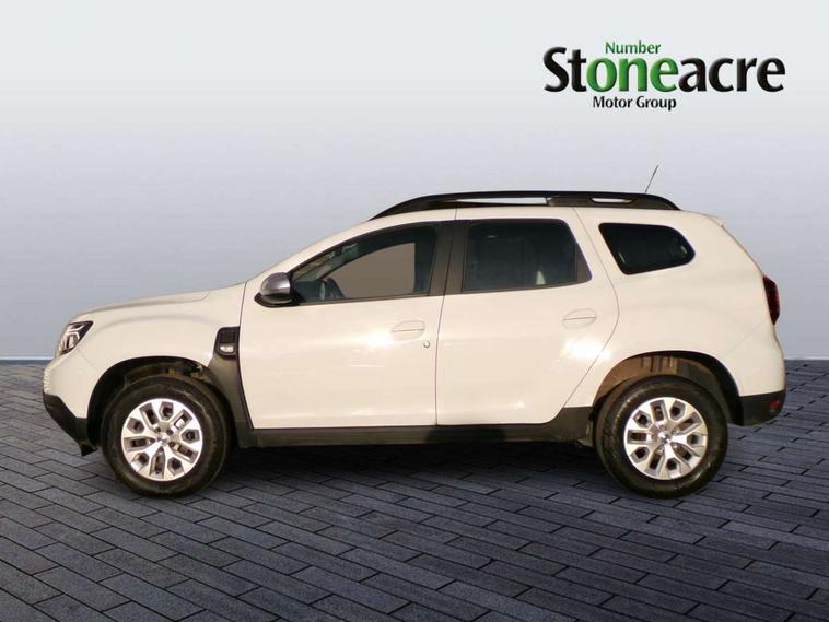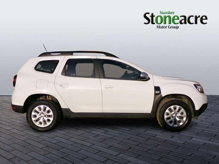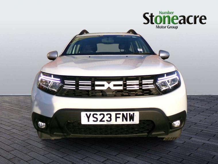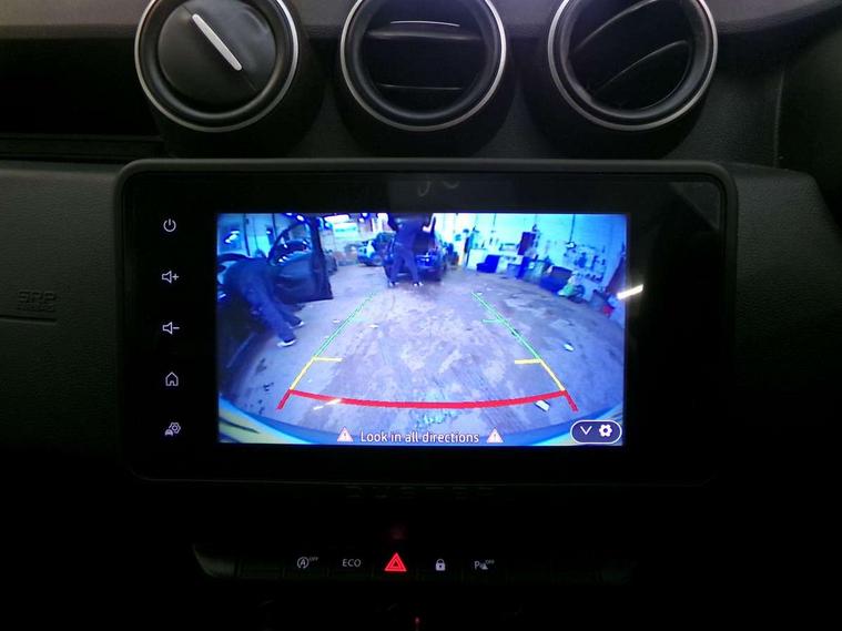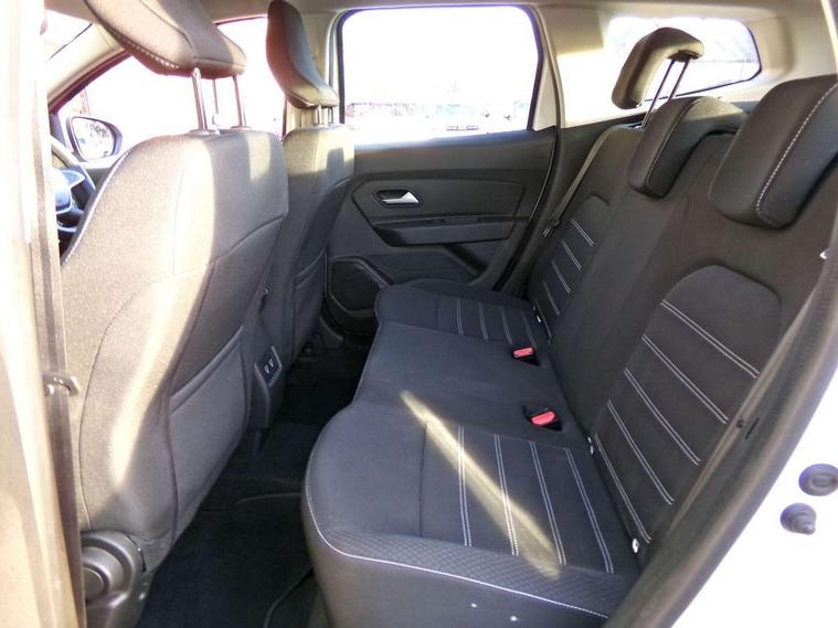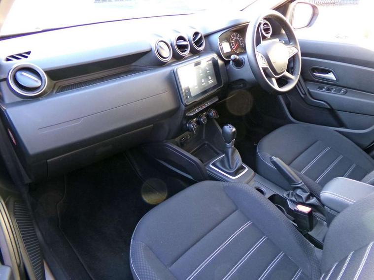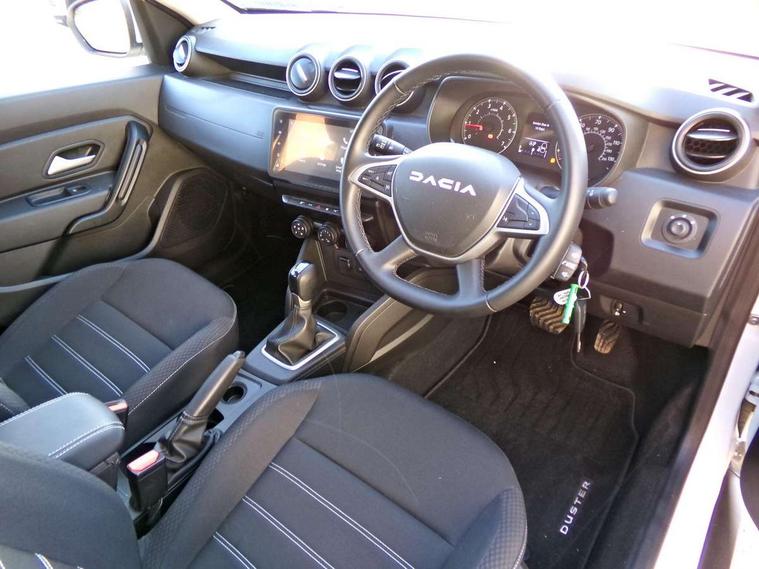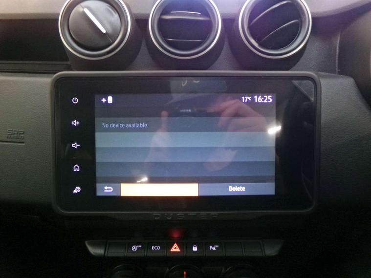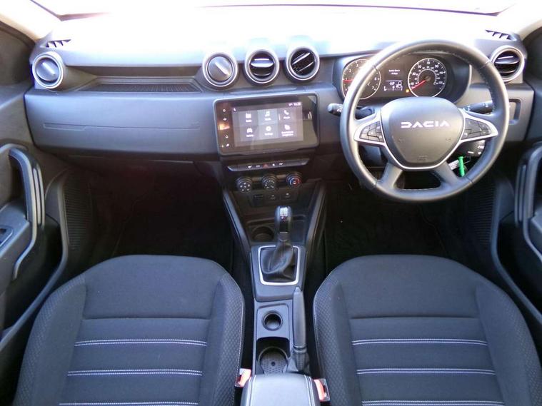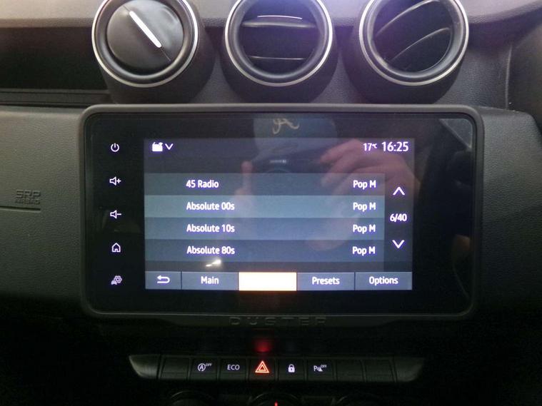 Cruise control and speed limiter, eCall emergency system, Eco mode, Electric power assisted steering, On board computer, odometer, trip computer, average fuel consumption, average speed, service indicator, outside temperature gauge, Rear parking sensors, Rev counter, Reversing camera, Stop/start system, 8" Media display with smartphone replication, 2 usb sockets and 6 speakers, Dacia plug and radio/MP3/USB/bluetooth/DAB/steering wheel control, 3 speed windscreen wipers, Black longitudinal roof bars with Duster inscription, Black side sills, Black/satin chrome tailgate trim with Duster inscription in black background and lettering, Body coloured door handles, Chrome front grille with hot stamping, Chrome logo surround on steering wheel, Daytime running lights, Drivers window one touch up/down, Dusk sensor, Electric adjustable/heated door mirrors, Electric front windows, Electric rear windows, Front and rear body coloured bumpers, Front door sill protection strip, Front fog lights, Heated rear window, High level third rear brake light, Rain sensor, Rear side wing doors, Rear spoiler, Rear wash/wipe, Satin chrome door mirrors, Tinted windows, Underbody protection skid plates, Y shaped LED headlights with rear LED lights, 3 rear height adjustable headrests, 3 seat bench in 2nd row, 60/40 split folding rear seat, Backlighted steering wheel buttons, Boot light, Driver seat lumbar adjustment, Fabric decorative insert on door panels, Fabric upholstery, Front head restraints, Front passenger reading light, Gear shift indicator, Height adjustable driver seat, Height adjustable front and rear headrests, Height and depth adjustable steering wheel, High centre console with driver armrest, Isofix points for child seats in both outer rear seats, Manual air conditioning, Map pocket on front seat backs, Passenger sunvisor with vanity mirror, Rear passenger reading light, Satin chrome interior door handles, Satin chrome lower steering wheel insert, Single front passenger seat, Soft feel leather steering wheel, 3x3 point rear seatbelts, ABS and Emergency brake assist, ASR traction control with Electronic stability control, Child locks on rear doors, Door open visual and audible warning, Driver airbag, Driver and passenger seatbelt not fastened - visual and audible warning, EBD - Electronic brakeforce distribution, Front passenger airbag, Front passenger airbag deactivation, Front seatbelt pretensioners, Front side airbags, Height adjustable front seatbelts, Hill start assist, Tyre pressure monitor, Remote central locking, Thatcham approved engine immobiliser, Charcoal grey central console surround, Matt black central console fascia, Piano black decorative insert on front door panels, Satin chrome air vent surround, Satin chrome instrument dial surrounds, 16" alloy wheels,