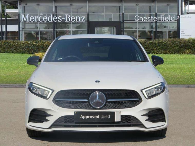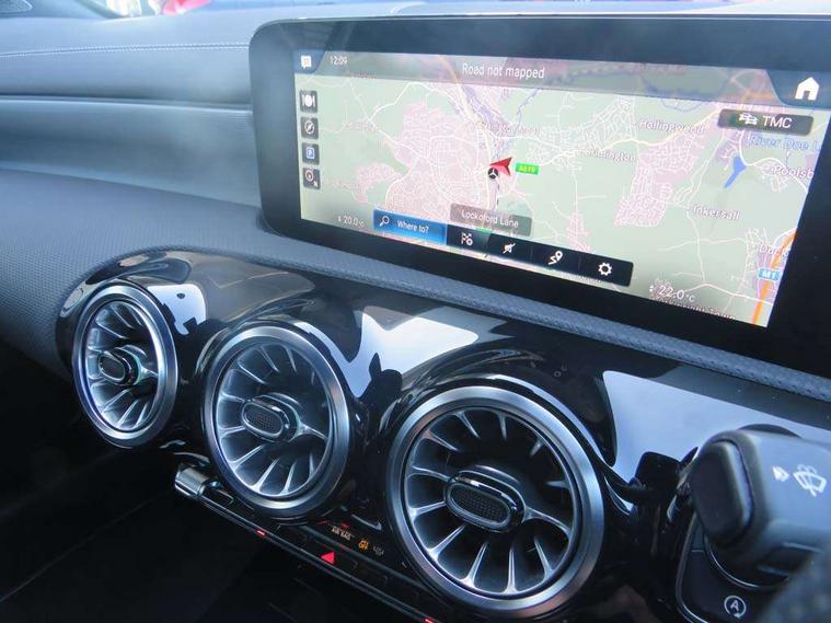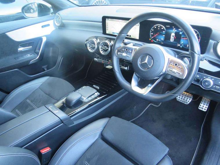10.25" Digital instrument cluster display screen, 10.25" media display, 180 degree rear view camera with parking guidelines, Active parking assist with visual and audible warning of detected obstacles, Attention assist, Brake pad wear indicator warning light, Car wash mode, Cruise control + speed limiter, Direct steering, Dual bluetooth interfaces, DYNAMIC SELECT with a choice of driving modes (ECO, Comfort, Sport and Individual), ECO start/stop function, Fluid level warning indicator for fuel, oil, coolant and washer fluid, Hard-disk navigation, Hey Mercedes Voice activation, Lamp failure indicator, Lane keeping system, Mercedes me connect including emergency call system, accident recovery, breakdown and maintenance management, Mercedes me remote services, Outside temperature gauge, Owners manual in English, Pre-installation for private car sharing, Preinstallation for Mercedes Benz link, Service indicator (ASSYST), Smartphone integration with Apple CarPlay and Android auto, Speed sensitive power steering, Trip computer, Ultrasonic sensors positioned in the front and rear bumpers, Lowered comfort suspension, Rear axle torsion beam, 10 speakers, 2 USB ports (type C) in rear stowage compartment and one in front of center console, DAB Digital radio, MBUX multimedia system with DAB digital radio and touchpad including satellite navigation, Mercedes-Benz sound system - 100W, 4 Electric Front and Rear windows, Adaptive brake lights, AMG bodystyling - Front apron with splitter in chrome, rear apron with chrome trim and chrome visible trim elements in tailpipe, Automatic headlights, Black weather strip, Body colour bumpers, Body colour door handles, Body colour side skirt, Body coloured door mirrors, Electric adjustable and heated door mirrors with integrated LED side indicators, Exclusive diamond radiator grille, Exhaust system - Twin visible tailpipes in polished stainless steel, Headlamp assist automatic headlamp activation, Heated glass rear windscreen + timer control, High gloss black beltline, LED High level third brake light, LED high performance headlamps with integrated LED daytime running lights, LED tail lamp, Privacy glass, Radio aerial, Rain sensing windscreen wipers with two sensitivity settings, Rear fog lights, Rear side wing doors, Rear wiper, Window line trim strip in high gloss black, 3 seat bench in 2nd row, 3 Spoke flat bottom leather multi function steering wheel with perforated leather in grip area, 40:20:40 split folding rear seats, Artico man-made leather/Microfibre Dinamica upholstery with contrast stitching in light grey, Auto Mercedes-Benz child seat recognition sensor, Black air vents with surround in silver chrome, Black roof lining, Brushed stainless steel sports pedals with rubber studs, Controller on centre console with chrome surround, Floor mats with black top stitching and embroidered edition logo and piping in light grey, Front centre armrest with storage compartment, Front seat backs luggage nets, Front seat cushion length adjustment, Galvanished gear shift paddles on steering wheel, Heated front seats, Height/reach adjustable steering column, Illuminated front door sills with changeable cover, Interior lighting - 64 colour Ambient lighting, Interior mirror with reading lamps in black and frameless, Manual height adjustable front seats, Rear armrest with 2 cupholders, Rear head restraints, Seat occupancy sensor for front passenger seat, Single front passenger seat, Sports seats with integrated headrests, Stowage compartment in centre console with retractable cover, Sunvisors with illuminated vanity mirrors, Touchpad on center console, Twin front cupholders, Two zone thermotronic luxury automatic climate control, Light and sight pack - A Class, Mirror package - A Class, Night pack - A Class Saloon/Hatchback, Seat comfort pack - A Class, 3 rear 3 point seatbelts, ABS with Brake Assist, Active bonnet, Active brake assist includes forward collision warning system with autonomous braking, Adaptive brake assist with hold function and hill start assist, Black seatbelts, Childproof locks manually operated for rear doors and electrically operated for rear power windows, Crash responsive emergency lighting, Driver and passenger head and side airbags, Drivers knee airbag, Dual stage driver/passenger airbags, Electronic parking brake, ESP curve dynamic assist, ESP with ASR, Front and rear seatbelt reminder, Front brake callipers with Mercedes Benz lettering, ISOFIX and top tether child seat fixing points in two outer rear seats, Tyre pressure monitoring system, Warning triangle and first aid kit, Window airbags, Alarm system/interior protection/immobiliser, Keyless entry lock/unlock, Keyless Go, Remote central locking and crash sensor with emergency opening function, Urban guard vehicle protection system with immobiliser and interior protection, Matrix look light longitudinal grain aluminium trim element, 18" AMG 5 twin spoke light alloy wheels aerodynamically optimised painted in black with highsheen finish, Summer tyres, Tirefit sealant kit,