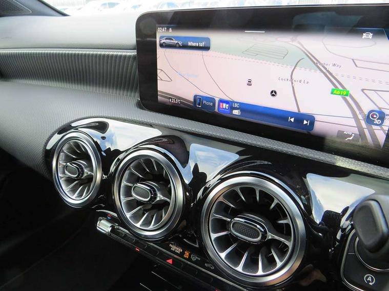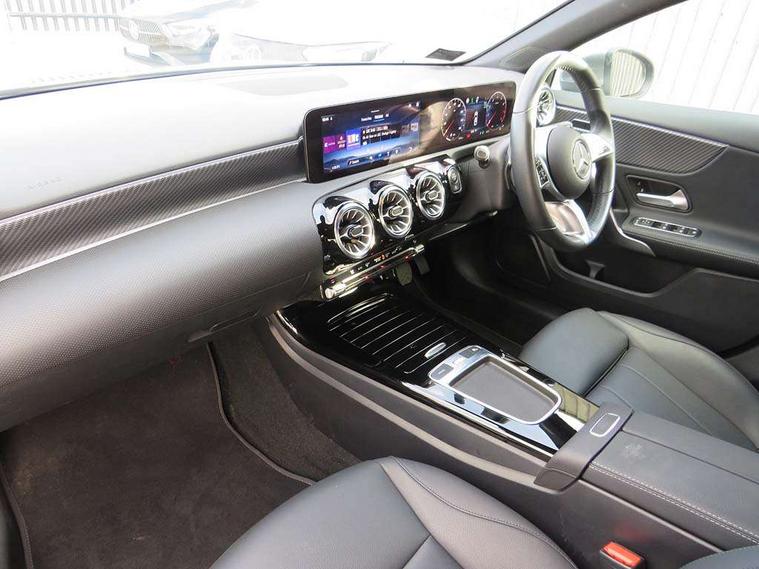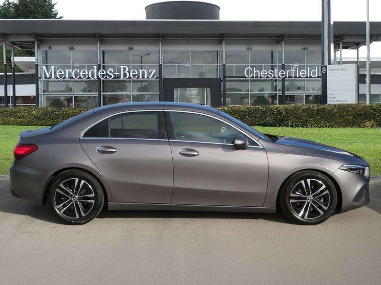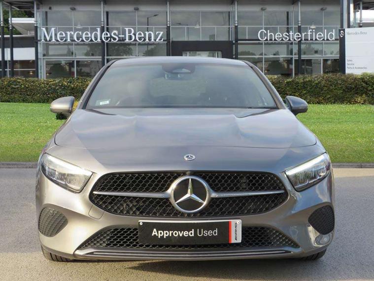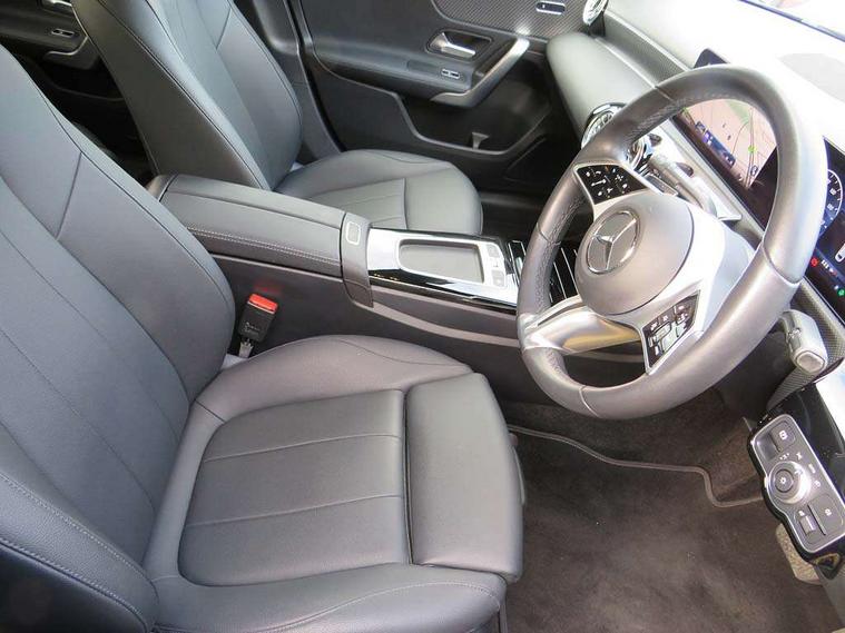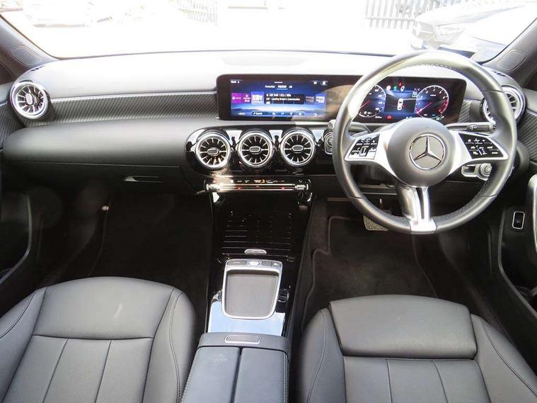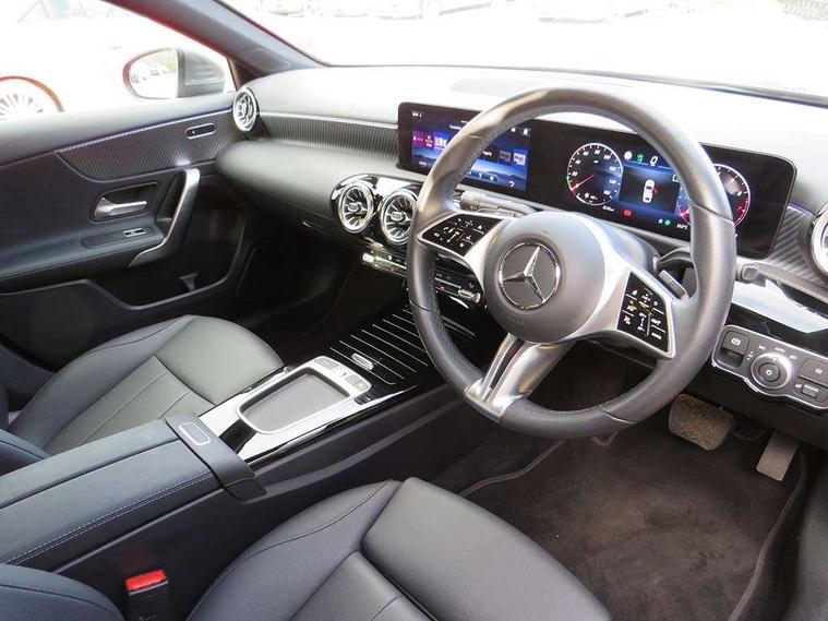 10.25 inch touchscreen central media display, 10.25" Digital instrument cluster display screen, Attention assist, Brake pad wear indicator warning light, Car wash mode, Cruise control + speed limiter, Direct steering, Direction indicators with lane change function, Dual bluetooth interfaces, DYNAMIC SELECT with a choice of driving modes (ECO, Comfort, Sport and Individual), ECO start/stop function, Engine start/stop button, Fluid level warning indicator for fuel, oil, coolant and washer fluid, Hard-disk navigation, Hey Mercedes Voice activation, Lamp failure indicator, Lane keeping system, Mercedes me connect including emergency call system, accident recovery, breakdown and maintenance management, Mercedes me remote services, Outside temperature gauge, Owners manual in English, Pre-installation of private car share, Preinstallation for Mercedes Benz link, Remote boot closing, Service indicator (ASSYST), Smartphone integration with Apple CarPlay and Android auto, Speed limit assist, Speed sensitive power steering, Trip computer in multifunction display with current consumption indicator, Wireless charging, Lowered comfort suspension, DAB Digital radio, MBUX multimedia system, Mercedes Benz sound system (100 W) with 6 speakers, 4 Electric Front and Rear windows, Adaptive brake lights, Body colour bumpers, Body colour door handles with chrome inserts, Body colour side skirt, Body coloured door mirrors, Chrome beltline strips, Diamond radiator grille with pins in fine star pattern, Electric adjustable and heated door mirrors with integrated LED side indicators, Exhaust system with 2 visible tailpipe trim elements and rear apron, Headlamp assist automatic headlamp activation, Heat insulating dark tinted rear and rear side windows, Heated glass rear windscreen + timer control, LED High Performance headlamps including integral LED daytime running lamps and adaptive highbeam assist, LED tail lamp, Privacy glass, Radio aerial, Rain sensing windscreen wipers with two sensitivity settings, Rear boot, Rear fog lights, Rear side wing doors, Third brake light featuring LED technology, Window line trim strip in chrome, 3 seat bench in 2nd row, 3 spoke ARTICO man-made leather multifunction sports steering wheel, 4 way lumbar support, 40:20:40 split folding rear seats, Air conditioning - One zone THERMATIC automatic climate control with automatically controlled air distribution, Artico man-made leather upholstery, Automatic child seat recognition sensor, Black air vents with surround in silver chrome, Black roof lining, Front centre armrest with stowage, Front comfort seats with adjustable head restraints, Front door sills with Mercedes Benz lettering, Front seat backs luggage nets, Gearshift paddles on steering wheel, Heated front seats, Height/reach adjustable steering column, Interior lighting - 64 colour Ambient lighting, Interior mirror with reading lamps in black and frameless, Rear armrest with 2 cupholders, Rear head restraints, Seat occupancy sensor for front passenger seat, Single front passenger seat, Stowage compartment in centre console with retractable cover, Sunvisors with illuminated vanity mirrors, Twin front cupholders, Velour floor mats, Keyless go comfort pack - A Class, Light and sight pack - A Class, Mirror package - A Class, Parking pack - A Class, Seat comfort pack - A Class, USB pack plus - A Class, 3 rear 3 point seatbelts, ABS with Brake Assist, Active bonnet, Active brake assist includes forward collision warning system with autonomous braking, Adaptive brake assist with hold function and hill start assist, Black seatbelts, Bonnet with power domes, Childproof locks manually operated for rear doors and electrically operated for rear power windows, Crash responsive emergency lighting, Driver and passenger head and side airbags, Drivers knee airbag, Dual stage driver/passenger airbags, Electronic parking brake, ESP curve dynamic assist, ESP with ASR, Front and rear seatbelt reminder, ISOFIX and top tether child seat fixing points in two outer rear seats, Tyre pressure monitoring system, Warning triangle and first aid kit, Window airbags, Alarm system/interior protection/immobiliser, Guard 360 degree vehicle protection, Remote central locking and crash sensor with emergency opening function, Dark carbon fibre interior trim, 17" 5 spoke light alloy wheels, aerodynamically optimised, painted in black with high sheen finish, Summer tyres, Tirefit sealant kit,