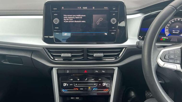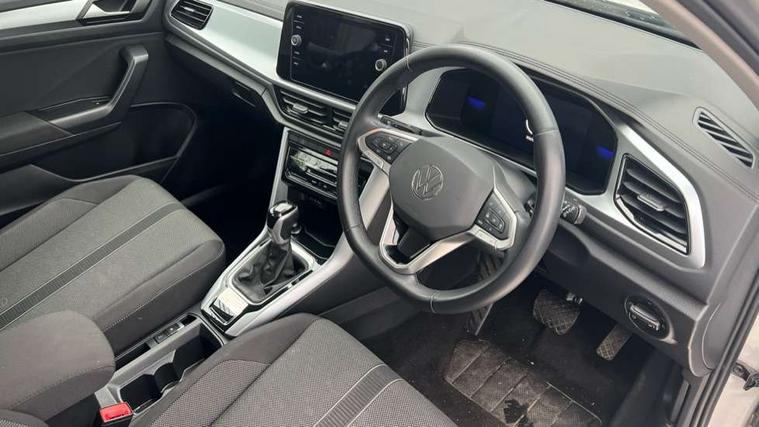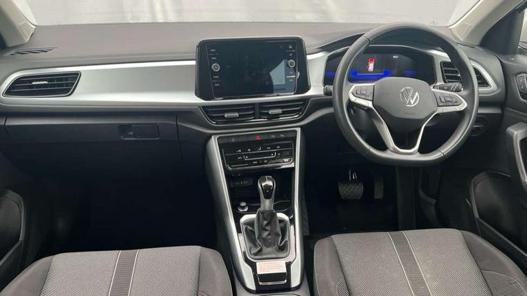 Bluetooth mobile phone interface, Driver alert system with fatigue detection, Driver tips and journey analysis, Emergency call service, Lane keeping system Lane Assist, Modified key software - reduce switch off time for key status change to Long no motion, Online services, Park assist including front and rear parking sensors, Power assisted speed sensitive steering, Service interval indicator, Tailgate/trunk lid release from outside, Think blue trainer driver tips and journey analysis, Warning sound and light for front seatbelts unfastened, Wireless app connect, Battery regeneration during braking, Front shock absorption, Rear shock absorption chassis with increased ride height, Start/stop function with battery regeneration, DAB Digital radio, Diversity antenna for FM reception, Music playback - MP3, WMA and AAC files, Premium USB cable in choice of either Apple or Android smartphone compatibility, SD card slot, Simultaneous pairing of 2 compatible mobile devices, Title and cover art display, We Connect and We Connect Plus functionality, 3rd brake light, Auto dimming interior rear view mirror, Automatic hazard lights activation under emergency braking, Automatic headlight control with LED separate daytime running lights with coming/leaving home function, Black roof rails, Body coloured bumpers and radiator grille with chrome trim and front fog lamps with chrome bezel, Body coloured exterior mirror housings and door handles, Extended roof spoiler, Exterior mirrors aspherical on driver side, convex on front passenger side, External USB type C socket and charging sockets, Front windscreen wiper with intermittent wipe and 4 position delay, Heated rear window, LED rear combination lamps, LED rear number plate lights, LED tail lamp rear comination lamps, Power windows with comfort operation and circuit breaker, Rain sensor, Rear exhaust tailpipe, Rear fog light on one side and reversing lights on both sides, Rear side wing doors, Rear wash/wipe with intermittent wipe setting, Remote electrically foldable door mirrors, puddle lights and reverse activated passenger's door mirror, 12V power socket in centre console, 3 rear head restraints, 3 seat bench in 2nd row, 4 load lashing points in luggage compartment, Air care climatronic air conditoning system with active combination filter and 2-zone temperature control, Ambient lighting with mirror logo projection, Cloth upholstery, Door and side trim panel in cloth, Drawer under drivers seat, Driver/front passenger seat height adjustment, Front centre armrest, Front comfort sports seats, Front cupholders x 2, Front reading light, Instrument lighting, white adjustable panel illumination, Interior light delay, Isofix child seat preparation, Leather gearshift handle, Load-through provision with cup holder when folded down ('Unsplit rear seat bench, split folding backrest, with centre armrest), Luggage compartment lighting, Lumbar support for driver's and front passengers seat, Non-folding front passenger seat backrest, Single front passenger seat, Storage compartment in left and right luggage area, Storage compartment in rear doors, Storage compartments in driver and front passenger doors, Sunvisors with illuminated vanity mirrors, Variable boot floor, height adjustable and removable, Driver assistance pack without proactive passenger protection - T-Roc, 3 point height adj front seatbelts + pretensioners, 3 point seatbelts in outer rear with ECE label, ABS, Child locks on rear doors, Driver and front passenger airbag with front passenger airbag deactivation, Driver and front passenger safety-optimised head restraints, Drivers seatbelt reminder, Electronic parking brake, Electronic Stability Control (ESC) inc EDL (Electronic Differential Lock) and ASR (Traction Control), Front and rear passengers curtain airbag system including front side airbags, Front assist with city emergency braking and pedestrian monitoring, Front disc brakes, Front seat side impact airbags, Hill start assist, Predictive pedestrian protection, Rear disc brakes, Single tone horn, Tyre pressure loss indicator, Volkswagen roadside assistance, Alarm with interior protection, Anti-theft alarm system with interior monitoring, backup horn, and towing protection, Remote central locking with SAFELOCK, radio remote control with 2 remote control folding keys, Pewter matt decorative inserts for intrument panel, centre console and door panels at the front, Trims for alloy wheels,