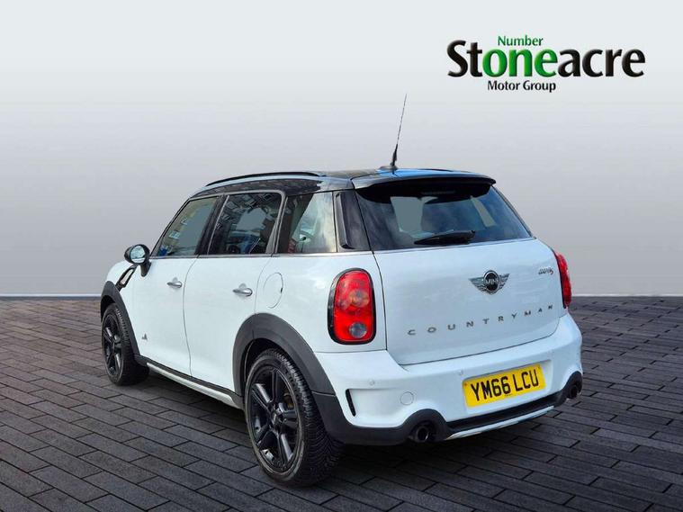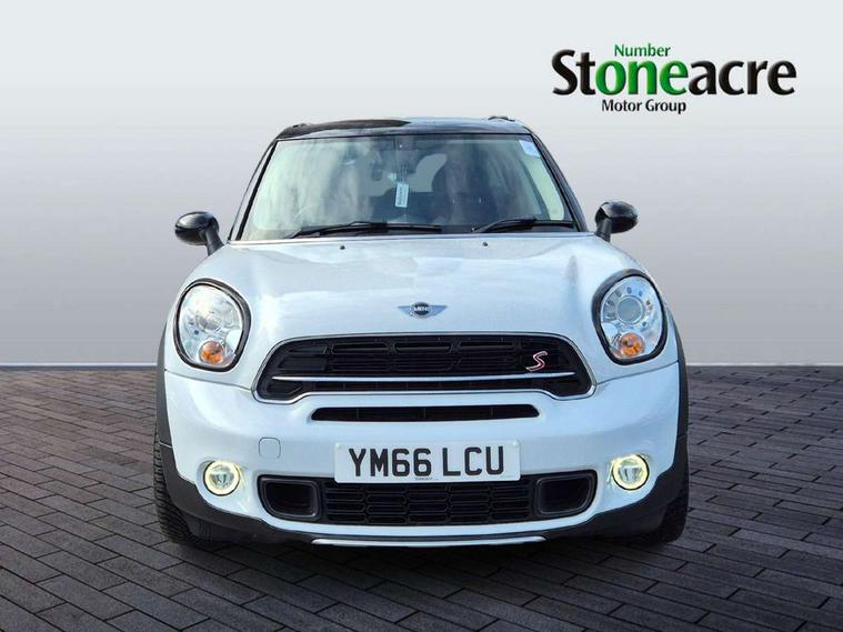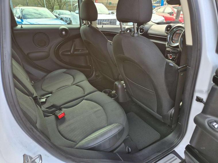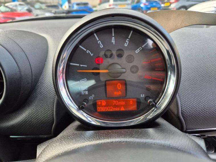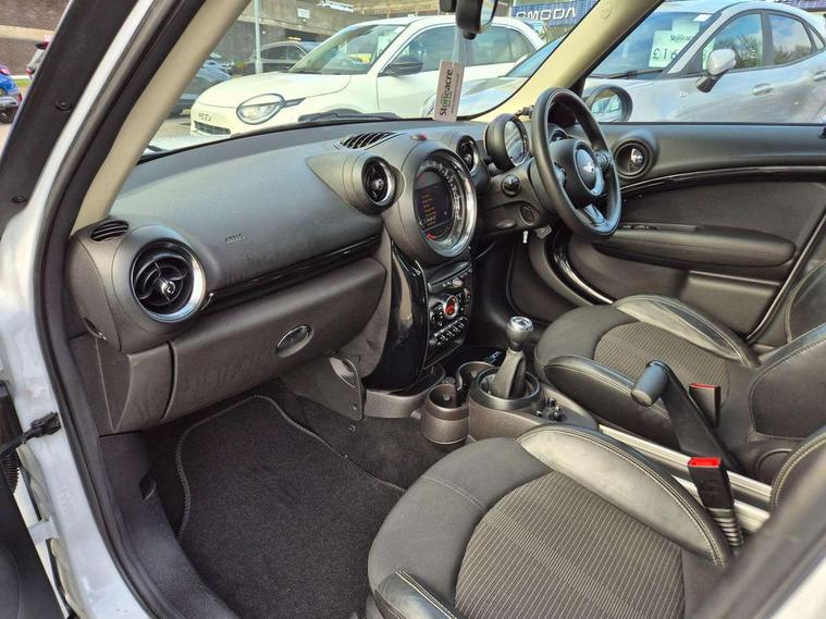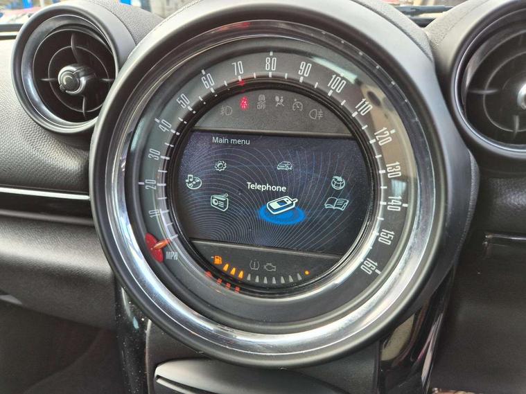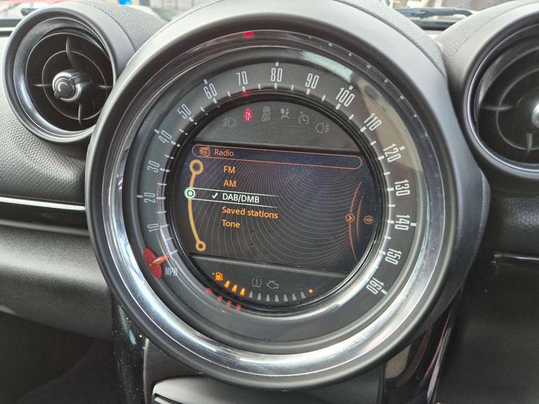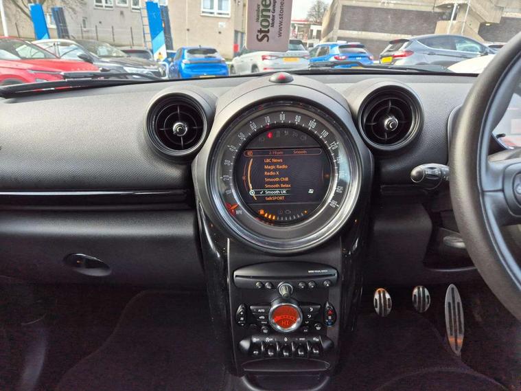 Bluetooth telephone preparation with USB audio interface, Brake fluid level warning light, Brake pad wear indicator warning light, DTC - Dynamic traction control, Electric power steering, Engine start/stop button, Exterior temperature gauge, Navigation system, Oil level indicator, On board computer, Rear park distance control, Run flat indicator, Service interval indicator, Sports button, Voice control system, Sports suspension, Auxiliary input socket, DAB Digital radio, MINI Connected, Radio BOOST + single slot CD, Radio visual boost, Telephone USB audio interface, Aerodynamic body kit, Anthracite roof rails, Anti dazzle mirror, Bi-Xenon headlights / auto height adjust/ headlight washers, Body colour bumpers, Body coloured air scoops, Chrome bezels around rear lights and headlights, Chrome door handles, Chrome exhaust tailpipes, Chrome plated trim on bottom edge of window, Chrome-plated radiator grille surround, Electric folding door mirrors, Electric front and rear windows + anti trap + one touch, Electrically adjustable door mirrors, Follow me home headlights, Front fog lights, Heated door mirrors/heated windscreen washers, Heated rear window with automatic switch off, Honeycomb radiator grille, Metal look door sill finishers, Rain sensor including auto headlights activation, Rear wiper, Roof spoiler in roof colour, White indicator lights, 2 cupholders in front centre console, 3 rear seats, 3 spoke sport leather steering wheel, 4 lashing points to secure luggage, 60/40 split sliding rear seats, Adjustable headrests, Anthracite headlining, Anthracite Velour floor mats, Automatic air conditioning, Boot light, Centre console storage, Chrome interior door handles, Driver's seat height adjuster, Driver/passenger sunvisors, Folding front centre armrest + storage, Front reading lights, Front seat backrest storage nets, Front sports seats, Gear knob with chrome ring, Gear/selector and handbrake in artificial leather, Height/reach adjustable steering column, Interior light, Isofix child seat preparation, MINI centre rail, Multifunction steering wheel inc cruise control, Passenger seat height adjuster, Rear grab handles, Side sunvisor for driver, Stainless steel foot rest, Stainless steel pedals, Storage compartments in doors, Vanity mirrors, Interior lights pack - Countryman, Storage Compartment Pack - Countryman, 3-point rear centre seat belt, ABS, Automatic Stability Control (ASC), CBC - (Cornering brake control), Crash Sensor - activates hazard/interior lighting + unlocks doors, Driver and passenger airbags, Driver and passenger side airbags, DSC - Dynamic Stability Control, Electronic brake force distribution, Front head airbags, Front seatbelt pretensioners with force limiters, Hill start assist, Passenger airbag deactivation system, Tyre pressure warning, Automatic door locking, Electronic immobiliser, Locking wheel bolts, Remote central locking + boot release, Second remote key, Thatcham Cat.1 alarm, Anthracite interior trim, 18" twin spoke burnished black alloy wheels, Run flat tyres,