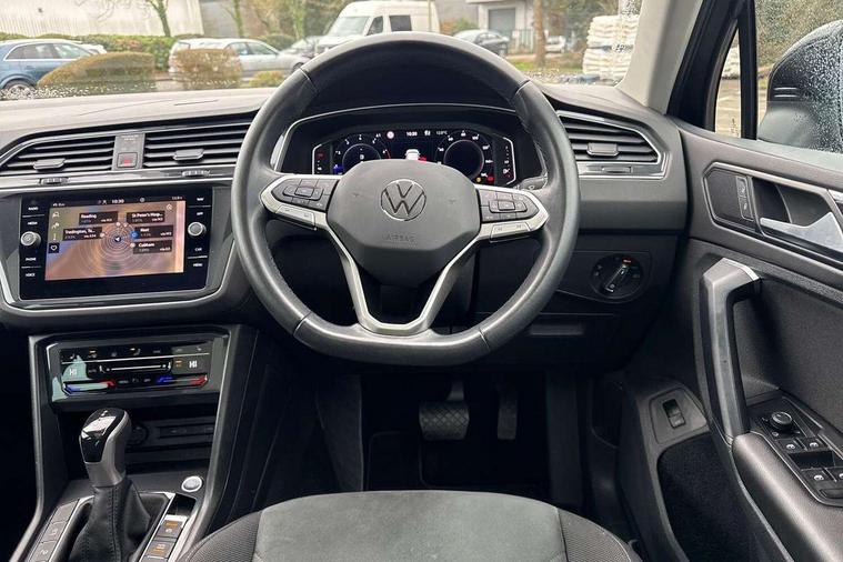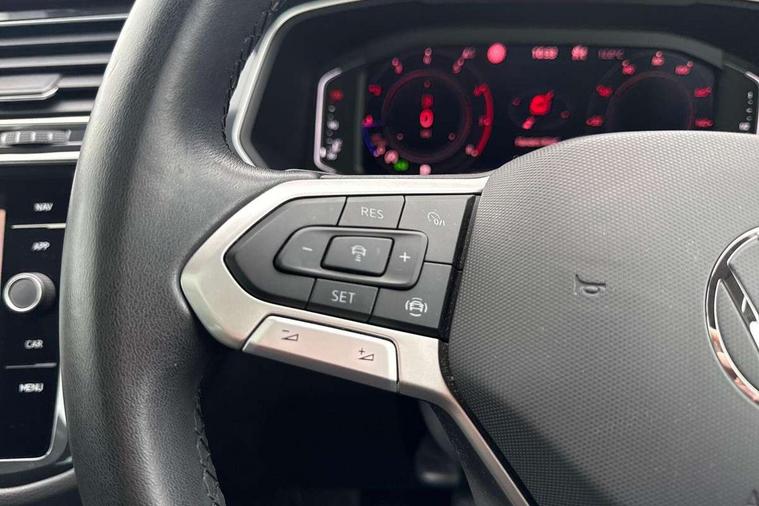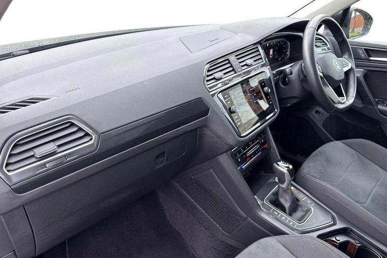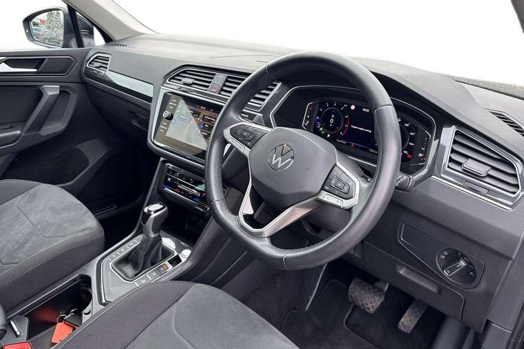 Adaptive cruise control ACC stop and go including speed limiter, App-Connect incl. App-Connect Wireless for Apple CarPlay and Android Auto, Bluetooth phone integration system, Digital Cockpit Pro - Active info display, Distance control assist, Driver alert system, Driver profile selection, Dynamic road sign display, eCall emergency call system, Electromechanical speed sensitive power steering, Engine start/stop button, Lane keeping system Lane Assist, Lights on warning, Motorised electric tailgate operated via key fob, drivers door and foot movement under tailgate, Multifunction front facing camera, Outside temperature display, Premium multifunction display with multi colour display, Remote control boot opening, Rev counter, Revision / skills operating concept travel assistant, Service interval indicator, Speed limit display, Start/stop system with regenerative braking, Tailgate/trunk lid unlocking from outside, Trip computer, Warning sound and light for doors and tailgate open, Battery regeneration during braking, XDS electronic differential lock for improved traction and handling, 2 USB-C ports in the front, 1 USB-C charging socket on the center console in the rear, Diversity antenna for FM reception, Radio, SD card slot, Simultaneous pairing of 2 compatible mobile devices, SMS functionality - read, compose and send SMS messages using touch-screen display, Title and cover art display, Aluminium door sill protectors, Auto dimming interior rear view mirror, Automatic headlight control system, Body colour door handles, Body coloured bumpers, Body coloured door mirrors with integrated indicators, Coming/leaving home lighting function, Dynamic headlight range control, Front and rear electric windows, Heated rear window, High level 3rd brake light, IQ light-Adv high beam, Dynamic light assist for LED matrix headlamp+LED separate DRL+DCL, dark red rear LED tech, Poor weather light+ cornering light, Laminated safety glass windshield, heat and sound insulating, LED rear number plate lights, Poor weather light and cornering light, Privacy glass for rear side windows and rear window, Rain sensor windscreen wipers, Rear exhaust tailpipe, Rear fog lamp, Rear side wing doors, Rear windscreen washer and wiper with interval delay, Side and rear windows in heat insulating glass, Tilting and sliding panoramic sunroof with rear panoramic sunroof, Trailer Stability Programme, Windscreen wipers/ intermittent wipe + 4 position delay, 12V outlet in center console rear and in luggage compartment, 12V outlet in front and tray, 2 cup holders in front, 2 LED front reading lights, 2 LED rear reading lights, 3 bench rear seats in 2nd row, 3 rear headrests, 4 load lashing points, 40:20:40 split folding rear seats, Air Care Climatronic 3 zone automatic climate control with enhanced air filter and controls in the rear, Backrest release for left front seat, Climate control unit rear with touch function, Door and side trim panel in foam film and woven fabric, Front + rear carpet mats, Front centre armrest, Front footwell illumination, Front seats head restraints (x-adjustment), Height adjustable front seats, Height/reach adjust steering wheel, Instrument lighting white adjustable panel illumination, Interior light with delay, Isofix Preparation 2 Rear child seats, Leather gear knob, Lockable cooled glovebox, Luggage compartment lighting, Luggage net, Rear bench seat asymetrically split folding, longitudinally movable and folding with load-through hatch and center armrest, Remote unlocking for rear seat backrest, Removable luggage cover, Removable rear headrests, Safety optimised front head restraints, Single front passenger seat, Sliding/reclining rear seats, Standard rear seat release, Storage compartment in driver's door, Storage compartment in passenger's door, Storage compartment in rear doors, Storage compartments in luggage area left and right, Storage tray on dashboard, Sun visors with illuminated vanity mirrors, Top front comfort seats, Variable boot floor, height adjustable and removable, Ambience pack - Tiguan, Chrome pack - Tiguan, Easy open and close pack with safelock - Tiguan, 3 point seat belt for centre rear seats, 3 point seat belts with seat belt pretensioners for the outer rear seats, Active bonnet, Curtain airbags for front and rear passengers, Driver/Front Passenger airbags, Drivers knee airbag, Electronic parking brake with auto hold, Electronic Stability Control with driver steering recommendation, ABS, ASR, EDL, EDTC and trailer stabilization, Front assist with autonomous emergency braking (for Adaptive Cruise Control ACC up to 130 mph), Front disc brakes, Front passenger airbag deactivation, Front side airbags, Height adjustable front 3 point seatbelts + pretensioners, Hill hold control, Manual child proof rear door locks, Pedestrian monitoring system, Power assisted brakes, Proactive passenger protection system in combination with front assist, Rear disc brakes, Rigid safety cell with front and rear crumple zones, Two tone horn, Warning sound and light for front seat belts if unfastened, Anti theft alarm system with interior monitoring, backup horn and towing protection, Anti theft wheel bolts, Central locking system with safelock radio remote control and 2 remote control folding keys, Electronic engine immobiliser, Tool kit,