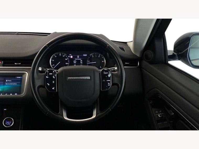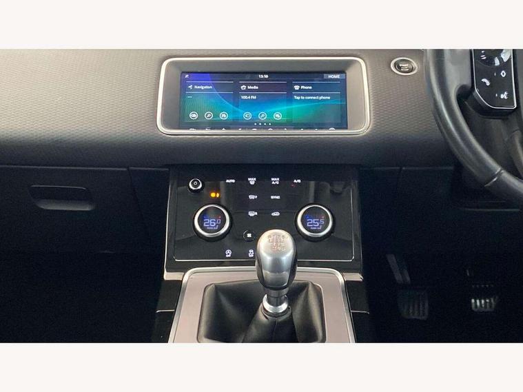 10" touch screen pro, Android Auto, Apple car play, Bluetooth connectivity, Brake pad wear indicator warning light, Cruise control + speed limiter, Driver condition monitor, Electronic power assisted steering (EPAS), InControl remote, Land Rover InControl apps, Lane keep assist, Navigation pro system, Pro services and wifi hotspot, Push button starter, Smart settings, Traffic sign recognition with adaptive speed limiter, Voice control system, Passive suspension, Digital Audio Broadcast radio-DAB, Steering wheel mounted controls, Electric windows with one touch open/close and anti trap, Evoque badge, Flush deployable exterior door handles, Heated rear window with timer, Heated washer jets, Heated windscreen, Rain sensing windscreen wipers, Rear fog lights, Tailgate spoiler, 40:20:40 split folding rear seats, Isofix system on outer rear seats, Overhead lighting console, Overhead stowage for sunglasses, Passive front head restraints, Rear air vents, Rear centre headrest, Sunvisors with illuminated vanity mirrors, Twin front cupholders with cover, Twin sliding front centre armrest, 3 rear 3 point seatbelts, Anti-lock braking system (ABS), Customer configurable autolock, DSC - Dynamic Stability Control, Electronic brake force distribution, Electronic parking brake, Electronic traction control, Emergency braking, Front and rear seatbelt reminder, Hill launch assist, Power operated child locks, Roll stability control, Six airbags - Driver and passenger airbags/driver knee airbag/front side airbag and curtain airbags, Tyre pressure monitoring system, Alarm, Immobiliser, Intrusion sensor, Locking wheel nuts,