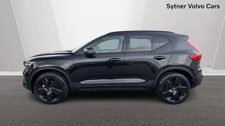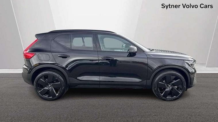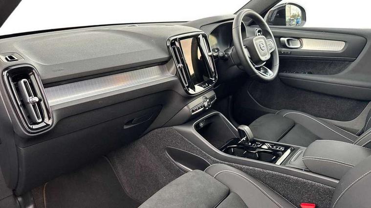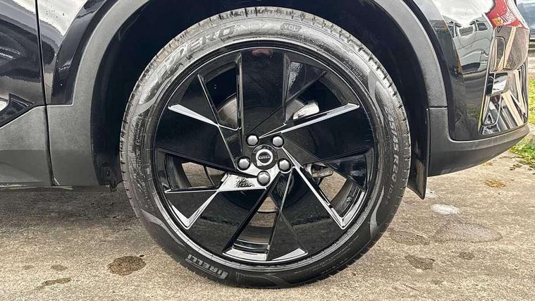 12.3" Progressive Driver Display, 9" centre console portrait touch screen, Adjustable steering wheel force, Android auto (Wired), Apple carplay (wired), Bluetooth handsfree system, Driver alert control, Driver assistance (pilot assist and adaptive cruise control), Driver awareness - Blind spot information system with steer assist, cross traffic alert with autobrake and rear collision warning and mitigation, E-call, Front and rear parking sensors, Front park assist, Google automotive services - Enabled entertainment apps, navigation with google maps, voice recognition with google assistant, Hands free power tailgate, Intelligent speed assistance, Lane keeping aid, Oncoming Lane Mitigation, Speed sensitive steering, Volvo cars services with app - Driving journal, emergency and breakdown call, engine remote start, remote door locking/unlocking and vehicle dashboard, Wireless/Inductive Mobile Phone Charging, Automatic transmission with start/stop and manual change functions, Dynamic chassis, DAB Digital radio, Steering wheel mounted remote controls, Adaptive brake lights with high level LED brake lights, Auto dimming feature for exterior door mirrors, Auto dimming interior mirror, Auto folding and heated power door mirrors, Automatic headlamp levelling, Automatic LED Headlights + Active high beam incorporating daytime running lights, Dark tinted windows - rear side windows and rear screen, Front aluminium tread plates, Front and rear electric windows, High gloss black front and rear skid plate, High gloss black front bumper deco, High gloss black front grille strikethrough and ironmark, High gloss black rear model, engine and volvo logo badges, High gloss black window trim, Home safe and approach lighting, Integrated roof rails in high gloss black, LED front fog lights, Puddle lights, Rain sensor with automatic windscreen wiper activation, Rear side wing doors, Rear wiper, Roof antenna, Roof spoiler, Visible VIN plate, 12V socket in front tunnel console and luggage compartment, 2-Zone electronic climate control with CleanZone air quality system and pollen filter, 3 seat bench in 2nd row, 3 Spoke tailored steering wheel with chrome trim, 60/40 versatile split folding rear seat, Centre console cupholders and storage, Charcoal carpet and floor mats, Charcoal headlining, Connect suede textile/microtech upholstery, Flexible load floor and grocery bag holder, Front headrests, Front seat cushion extensions, Glovebox bag hook, Heated front seats, Height adjustable passenger seat, Height/reach adjustable steering column, High gloss centre tunnel deco, High level illumination - Front door pocket, front side step (under door), tailgate, instrument panel, front door inlay, rear courtesy&reading lights, Integrated waste bin, Isofix attachments on outer rear seats, Load cover, Load protection net, Mid level illumination - Front footwell, luggage & glovebox compartment, front cabin courtesy & reading lights, illuminated vanity mirrors+ticket holder, Multi directional lumbar support for driver and passenger seat, Power driver seat with memory + exterior mirrors memory, Rear armrest with cupholders, Rear headrests, Single front passenger seat, Underfloor luggage compartment storage, Climate pack without heated front seats - XC40, 3x3 point rear seatbelts, City safety with steering support with Pedestrian + cyclist + front collision warning with full auto brake and rear auto brake, Driver and passenger airbags, Drivers knee airbag, Electronic parking brake with auto hold, First aid kit, Front and outer rear seatbelt reminder and pretensioners, Front seats SIPS airbags, Hill descent control - Off-road drive mode, Hill start assist, IC (Inflatable Curtains) - Full Length, Passenger airbag cut-off device, Power child locks on rear doors, Road sign information display, Run off Road Protection, SIPS (Side Impact Protection System), Slippery road and hazard light alert, Stability and Traction Control with Spin control, Engine Drag Control and Corner Traction Control, Tyre pressure monitoring system, Vehicle deceleration control with Anti-lock Brake System, Electronic Brake Distribution and Emergency Brake Assist, Warning triangle, WHIPS whiplash protection system - front, 2 x Key integrated remote control central locking including with deadlocking system and auto open/close windows, Anti-theft alarm including immobiliser/volume sensor + level sensor, Keyless drive includes keyless entry and keyless start, Locking wheel nuts, 20" 5 spoke high gloss black alloy wheels,