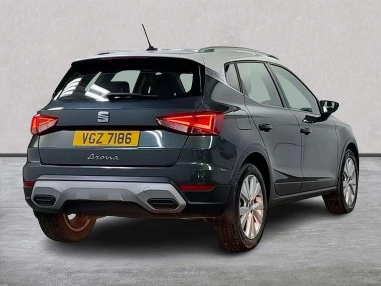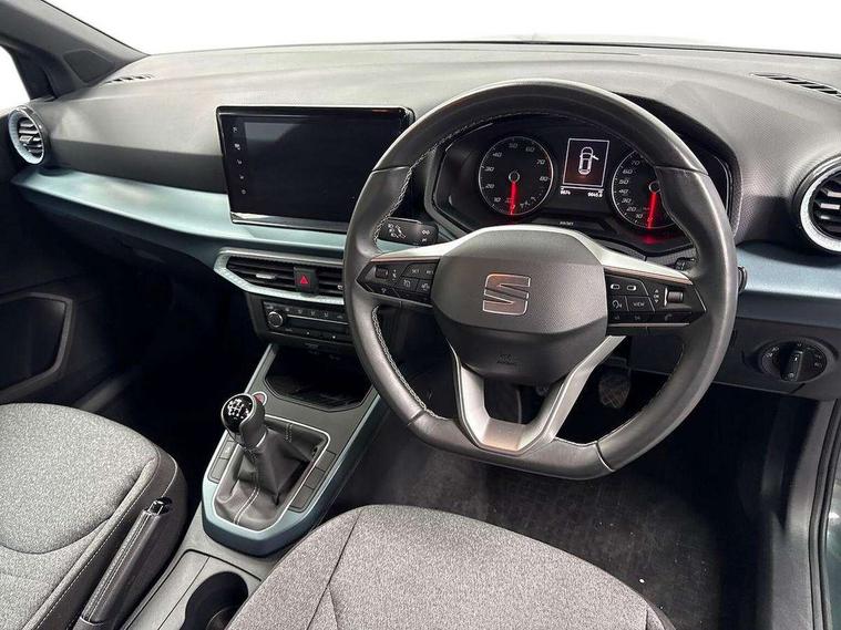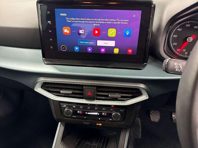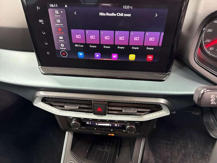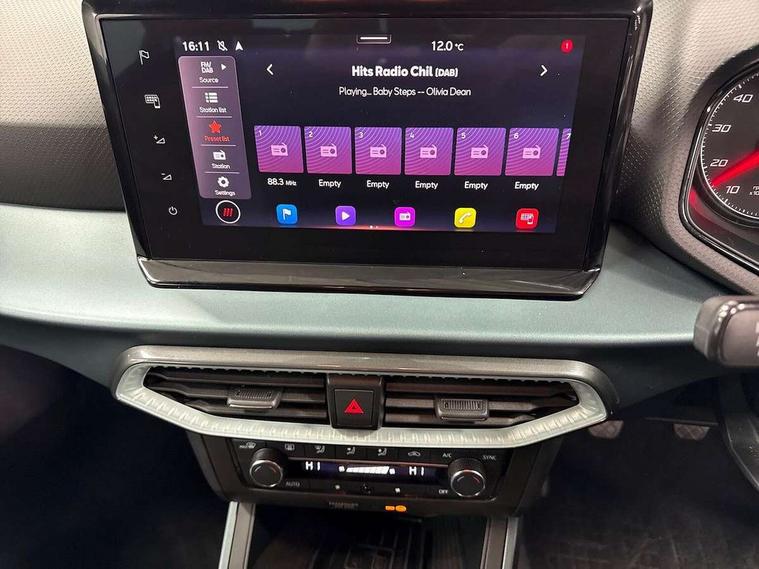 'Lights On' Reminder warning buzzer, Digital clock, E-call, Electric speed sensitive power steering, Full Link Smartphone Integration with Mirror Link, Apple Car Play, Google Android Auto with USB Type C cable for Apple and Android compatibility, Lane keeping system, Low fuel warning light, Outside temperature display, Rear parking sensor, RPM counter, Seat connect with safety, service, remote and online, Trip computer, Bluetooth interface for hands free and audio streaming, DAB digital radio and AM/FM radio, Steering wheel mounted audio controls, Anti theft roof antenna, Auto dimming interior rear view mirror, Automatic activation of hazard warning lights, Body coloured bumpers, Body coloured door handle inserts, Chrome roof rails and window surrounds, Chrome window trim, Electric front/rear windows, Electrically adjustable, heated and folding door mirrors, FULL LED automatic headlights with dynamic headlight range control, coming and leaving home, LED daytime running lights, Hidden exhaust pipe, LED rear tail lights and licence plate lights, Protective side mouldings, Rain sensing wipers, Rear side wing doors, Rear spoiler, Rear window wash/wipe, Roof colour door mirrors, Third brake light, Visible VIN plate, Windshield wiper with intermittent control and potentiometer, 2 cupholders, 3 seat bench in 2nd row, 60/40 split folding rear seat, Aircare filter, Aran green Illuminated coloured air vent, Black interior roof, Cloth upholstery, Double boot floor, Driver sunvisor with covered mirror + card holder, Dual zone climate control, Flat bottomed leather steering wheel/gear knob/handbrake, Front courtesy light with 2x front and 2x rear reading lights, Front seat back storage pockets, Gear shift indicator, Height adjustable front seats, Height/reach adjustable steering column, Illuminated boot, Instrument lighting with brightness control, Interior ambient lighting, Interior light in footwell, central console and door panel, ISOFIX points in outer rear seats with top tether anchorage points, Passenger sunvisor with vanity mirror, Single front passenger seat, Storage net on centre console, Two front and three rear height adjustable headrests, Connectivity pack plus - Arona, Interior chrome pack - Arona, Safety and driving pack (M) - Arona, Storage pack - Arona, 3 point seatbelts on all rear seats, ABS, Active front headrests, Child locks on rear doors, Driver and front passenger airbags with front passenger airbag de activation, front side and curtain airbags, Electronic stability control, Emergency Brake Assist (EBA) and front assist, Front and rear seatbelt reminder, Hill hold control, Multi-Collision braking, Tiredness recognition system, Traction control, Tyre pressure monitoring system, Alarm with back-up horn, Electronic engine immobiliser, KESSY Keyless entry and go, Locking wheel bolts, Remote central locking + deadlocks, Tow away protection, Titan black dashboard, 17" Dynamic alloy wheels,