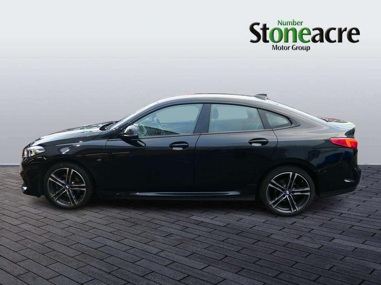 Active guard plus, Attentiveness assist, Auto start-stop, BMW Intelligent Personal Assistant, BMW Live Cockpit Professional with 10.25" high resolution instrument and control display, BMW Online services, BMW operating system with 7.0 mid interface, BMW Teleservices, Check Control warning system for monitoring of lights and door/luggage compartment open warning, Cruise control with braking function, iDrive controller with 7 short cut favourite buttons on centre console, Integrated navigation data with map data via USB +features such as 3D landmarks and micro city models, Integrated owners handbook, Intelligent voice assistant, Lane departure warning system, M Sports steering, On board computer - average speed+fuel consumption, service interval, clock/date, odometer/trip meter, outside temperature display and ice warning, Optimum shift indicator, Personal Profile, Pull away assistant, Speed limiting function, 6 speed manual transmission, Aluminium lightweight construction, Balancer shaft, Double VANOS, Drive performance control with ECO PRO comfort + sport mode, Electronic differential lock, High precision injection, M Sport suspension with stiffer spring/damper set-up and vehicle lowered by 10mm + twin tube gasfilled shock absorbers and Anti roll bars, Performance Control, Petrol Particulate Filter, VALVETRONIC engine management, 2x USB Type C ports (for charging and data transfer), 4G LTE Connectivity with hard wied 4G network sim card, DAB digital radio, MP3 players and RDS double tuner, Auto wipers, Automatic headlight beam throw control, Automatically dimming rear view mirror, Body colour door handles, Body colour mirror caps, Chrome 'M' logo side designation, Chrome exhaust single tailpipe, round, Direction indicator side lights integrated exterior mirrors, Electric windows - front and rear, with open/close fingertip control and trap release, Exterior mirrors - electrically folding with anti-dazzle, Fading support, Follow me home headlights, Front and rear bumper system with replaceable deformation elements, Front door sill finishers in black plastic with M designation in metallic look, Heated, electrically adjustable exterior mirror aspheric on driver side, convex on passenger side, High gloss black B pillar finish, High gloss shadow line exterior trim, High level third brake light, LED daytime running lights, LED front fog lights, LED Headlights, Lightweight engineering, Model designation on right side of tailgate, Preparation for high beam assistant, Rain sensor with automatic headlight activation, Rear boot, Rear fog lights, Rear side wing doors, Reversing light in rear light cluster, Welcome lighting, 12V power socket in centre console, 2 cupholders in front centre console, 3 rear seat head restraints, 3 rear seats, 3 spoke M sports design leather steering wheel finished in nappa leather with specific M badge, Anthracite finished floor mats with contrasting surround, Anthracite headlining, Automatic two zone climate control air conditioning, Child seat ISOFIX attachment for two outer rear seats and front passenger seat with anchorage points, Conditioned based service, Driver and front passenger seat heating, Front and rear door pockets including bottle trays, Front and rear side armrests integrated into door trim, Front armrest foldable with integrated storage compartment, Front centre interior light over interior mirror and rear centre automatic interior light when door is opened/ignition switched off or via remote key, Front head restraints, Front passenger seat, Front sports seats with electric side bolster adjustment, Gearshift lever with M designation, Glove compartment, Glovebox with light, Luggage compartment lighting, Manually adjustment steering wheel column, Multi-function controls for steering wheel, Sun visors with vanity mirrors and insert tab, Through loading system with 40/20/40 split folding rear seat, Two lashing eyes, Additional interior lighting pack - 2 Series Gran Coupe, Extended storage pack - 2 Series Gran Coupe, M Sport exterior styling aerodynamics pack - 2 Series Gran Coupe, 2 tone horn, Airbag - Front driver and passenger, front and rear head, front side, curtain head protection, manual deactivation of front passenger airbag possible, Anti lock braking system (ABS) with cornering brake control, BMW emergency call, Brake drying, Braking readiness, City braking function, Crash sensor activating of airbags, Unlocking doors, hazard warning lights, interior light, safety battery terminal, Dynamic stability control + (DSC+), Dynamic Traction Control - DTC, Electrically operated hand brake, Rear brake discs, Rear child proof door locks, Seat belt security check for driver and front passenger, Seatbelt warning, Side impact protection, Three point seat belts on all seats including front belt stopper, pyrotechnic belt tensioners and belt force limiters, Trailer stability control, Tyre pressure monitoring system, Ventilated front disc brakes, Warning triangle and first aid kit, Central locking switch for all doors, fuel filler cap and luggage compartment, Deadlocking function system to all doors, Drive away locking system on all doors and luggage compartment, Locking wheel bolts, Start/Stop button (illuminated) in centre console with keyless engine start and Auto Start-Stop deactivation button, Thatcham Cat.1 alarm and immobiliser, Two remote control key with integrated key - open/close doors/fuel flap/tailgate +1 button for unlock compartment with M design high gloss black inlay, Contrast stitching on instrument panel, 18" Burnished M double spoke bi-colour alloy wheels finished in orbit grey - style 819M, Reduced rolling resistance tyres,