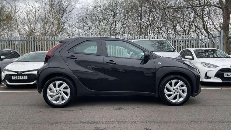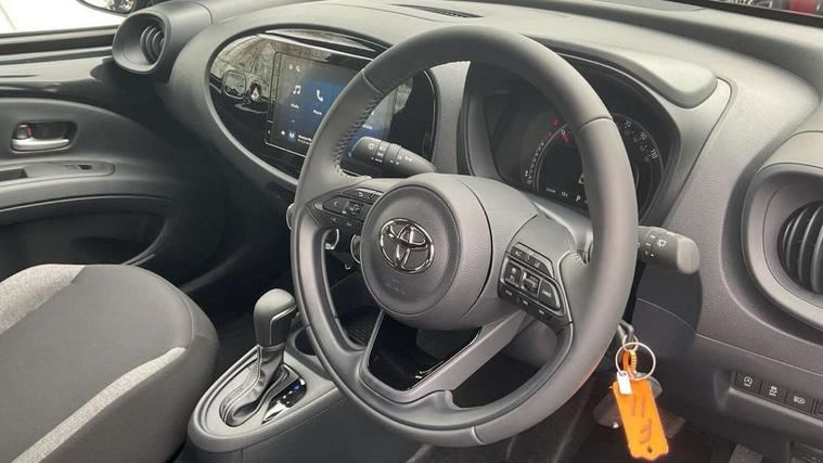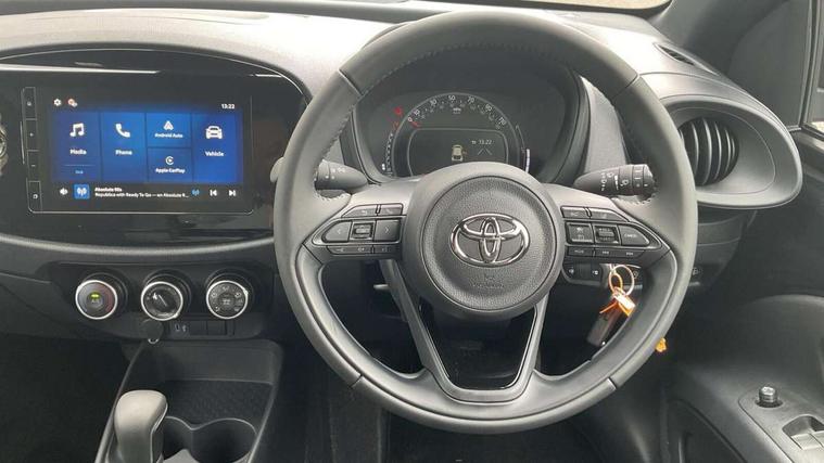 4.2" TFT colour screen, Adjustable speed limiter, Analogue speedometer, Bluetooth connectivity, Digital tachograph, Driver attention alert system, eCall emergency call system, ECO-driving indicator, Electric power steering, Intersection turn assist, Key reminder warning, Noise reduction kit, Pre collision system with emergency steering assist, Reversing camera with static guide lines, Smart phone integration with Apple car play/Android Auto, Speed limit display, Start and stop, Vehicle Stability Control (VSC), 4 speakers, 9" HD multimedia display touch screen with Toyota smart connect, DAB digital audio broadcast, USB connector, Auto headlights, Automatic headlights cut-off, Bicycle towing hook, Black lower front grille, Black rear bumper, Black side protection mouldings, Black upper front grille, Black wheel arch mouldings, Body colour door handles, Body coloured front bumper, Boot door scuff plate, Electric heated door mirrors, Follow me home headlights, Front power windows, Gloss black door mirrors, Headlight cut-off reminder, LED daytime running lights, LED front light guide, LED High mounted stop lamp, Manual day/night rear view mirror, Manual headlight levelling, Pagoda roof, Power adjustable door mirrors, Power back door, Projector halogen headlights, Rain sensor, Rear combination lights LED bulb type, Rear side wing doors, Rear windscreen defogger, Rear windscreen wiper, Short antenna, Variable intermittent windscreen wipers, 12v power outlet - front, 2 seat bench in 2nd row, 3 spoke leather steering wheel, 50/50 split folding rear seat, Adhesive roof headlining, Adjustable speed limiter switch on steering wheel, Audio and telephone switches on steering wheel, Black insert on steering wheel, Boot light, Centre room light, Chrome interior door handles, Chrome surround on air conditioning buttons, Clean air filter, Fabric upholstery, Floor mats, Front and rear cup holders, Front head rest deco art, Front head restraints, Gear shift indicator, Height adjustable driver seat, Intelligent adaptive cruise control switch on steering wheel, ISOFIX child restraint system on rear seats, Lane departure alert switch on steering wheel, Leather gearshift knob, Light grey roof lining, Manual air conditioning, Manual tilt steering wheel, Manually reclining and sliding driver seat, Manually reclining and sliding front passenger seat, Multimedia switches on steering wheel, Pollen filter, Rear door pockets, Rear head restraints, Resin console box storage, Satin silver insert on gear shift knob, Silver stitching on gear shift knob, Single compartment glovebox with lights, Single front passenger seat, Soft tonneau cover, Sun visors with mirror on driver and passenger side, Voice recognition switch on steering wheel, Toyota safety sense pack - Aygo X, Anti lock braking system + Electronic brake force distribution, Child safety door lock, Emergency brake light signal (EBS), Hill start assist control (HAC), Passenger airbag on/off switch, Seat belt reminder for front and rear seats, Supplement restraints system (SRS) - 6 airbags, Traction control, Tyre pressure warning system, Immobiliser, Remote power door locks, Black air vent surround, Black wheel centre caps, Tyre repair kit,