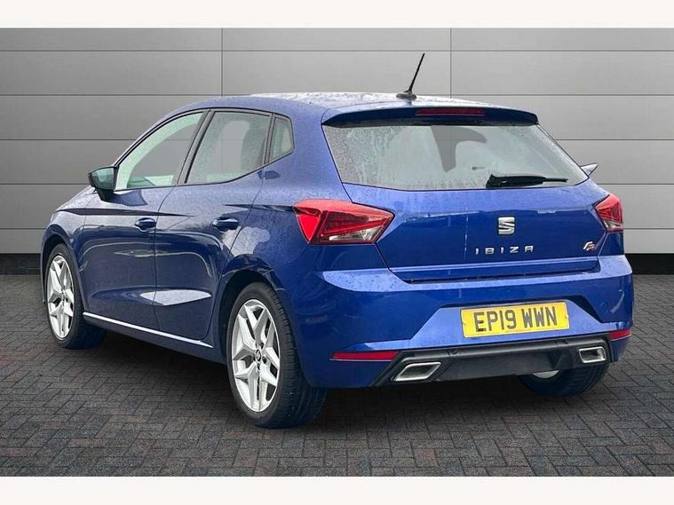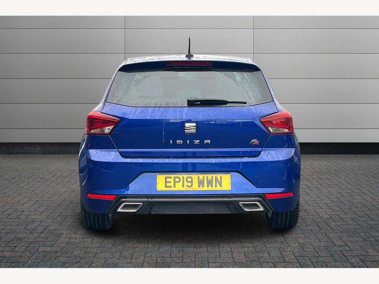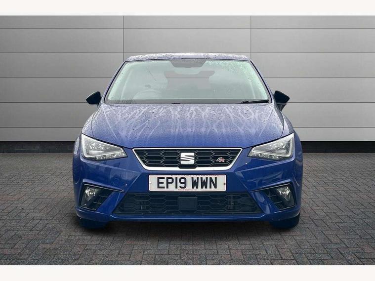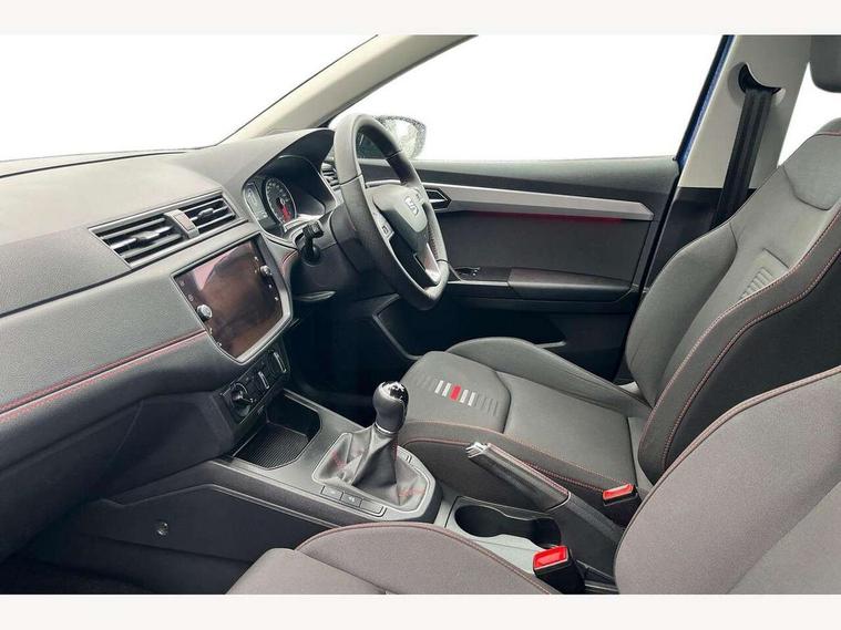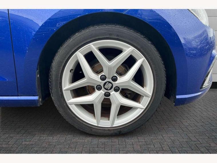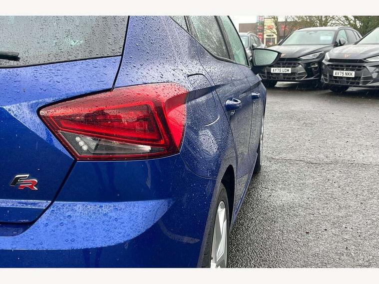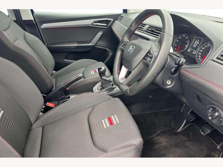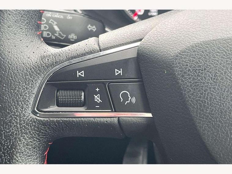 'Lights On' Reminder warning buzzer, Bluetooth Handsfree Phone Connection, Cruise control, Digital clock, Full Link Smartphone Integration with Mirror Link, Apple Car Play, Google Android Auto, Low fuel warning light, Outside temperature gauge, Power Steering, Satellite navigation system with 3D mapping, 8" touch screen, voice control and additional USB port, SEAT Drive profile, SEAT logo boot release, Trip computer, Sports suspension, 6 speakers, Auxiliary input socket, CD player, Digital Audio Broadcast (DAB) Tuner, Radio/MP3 player, SD card slot, SEAT USB media cable, Steering wheel mounted controls, USB port, Anti theft roof antenna, Auto dimming rear view mirror, Automatic headlights, Automatic rain sensing wipers, Body colour bumpers, Body colour door handles, Brilliant black door mirrors, Chrome front grille frame, Chrome grille, Coming/leaving home lighting function, Cornering front fog lights, Dark tinted rear windows, Electric folding door mirrors, Electric front windows, Electric headlight adjustment, Electrically adjustable and heated door mirrors, Exclusive FR rear bumper, Full LED headlights, LED daytime running lights, LED tail lights, Rear fog lights, Twin exhaust pipes, 3 rear headrests, 60/40 split folding rear seat, Air conditioning, Door and steering wheel ice metal decorative inserts, Driver's sunvisor with ticket holder/vanity mirror, Dust/pollen filter, Flat bottomed perforated leather steering wheel with red stitching and FR logo, Front courtesy lights, Front cupholders x 2, Front reading lights, Gear shift indicator, Glovebox, Height adjustable driver's seat, Height adjustable front/rear head restraints, Height adjustable passenger seat, Height/reach adjust steering wheel, Illuminated boot, Instrument lighting with brightness control, Leather handbrake, Multi-colour ambient interior lighting, Nora cloth upholstery, Passenger sunvisor, Rear top tether child seat ISOFIX attachment, Sports seats, Full LED headlight pack - Ibiza, 3 point seatbelts on all 3 rear seats, ABS, Active front headrests, Child locks on rear doors, Curtain airbags, Driver/Front Passenger airbags, ESP+EBA, Front assist (AEB), Front passenger airbag deactivation, Front side airbags, Hill hold control, Multi-Collision braking, Seatbelt warning, Tiredness recognition system, Tyre pressure monitoring system, Electronic engine immobiliser, Locking wheel bolts, Remote central locking + deadlocks, Volumetric alarm with back up horn, Leather dashboard, 17" Dynamic alloy wheels,