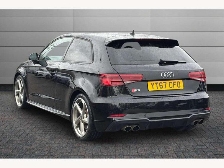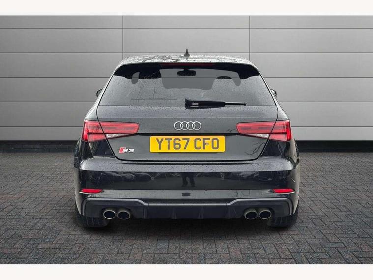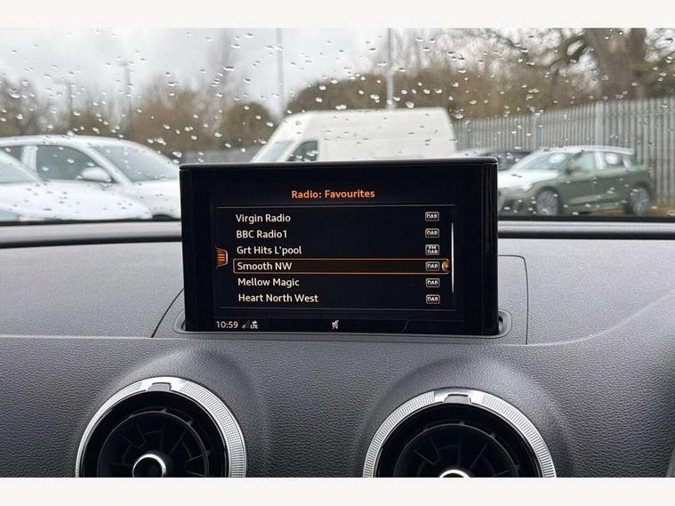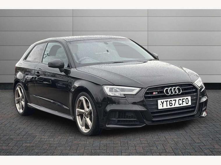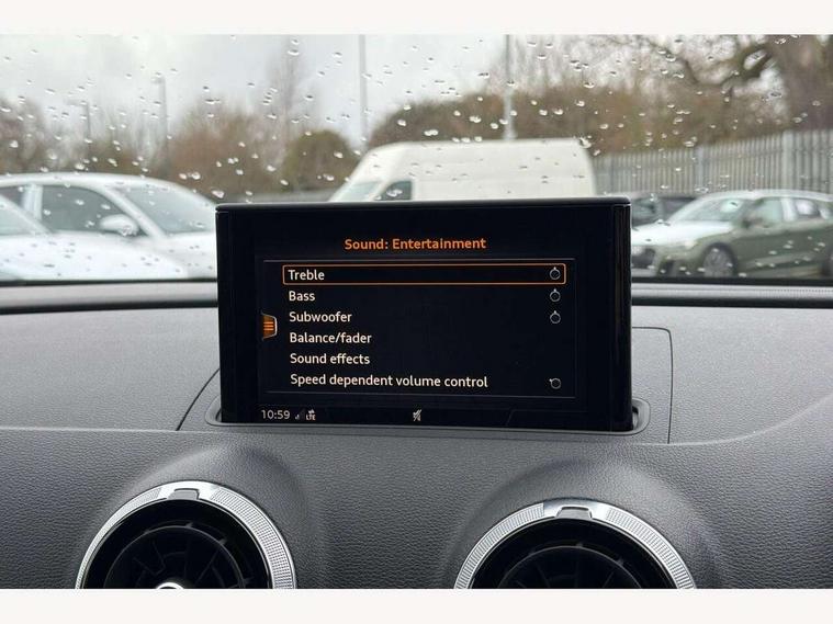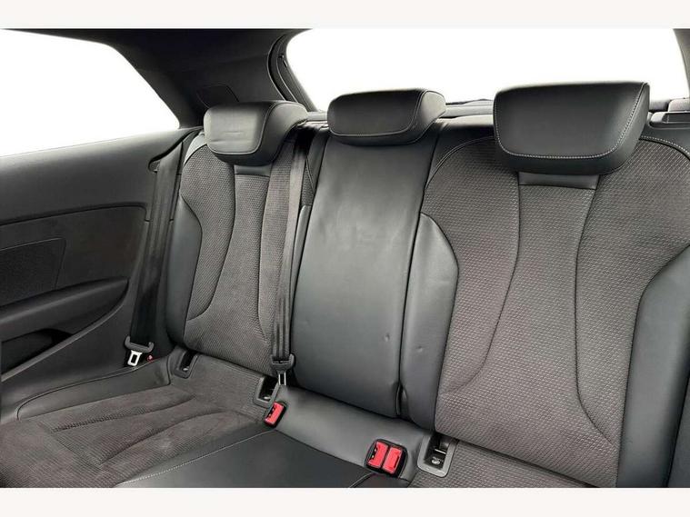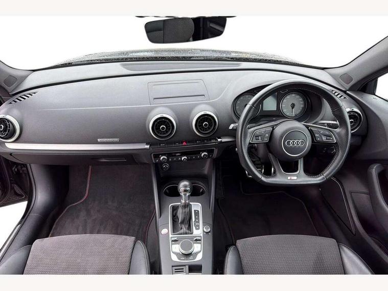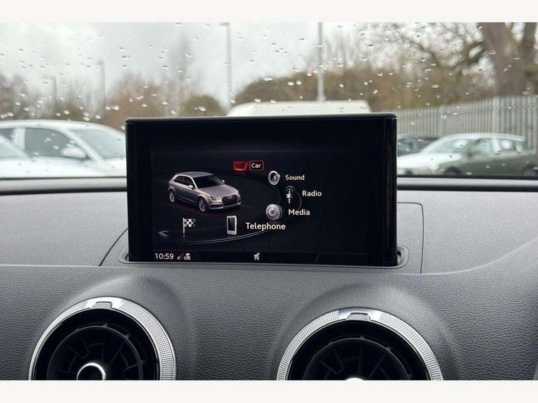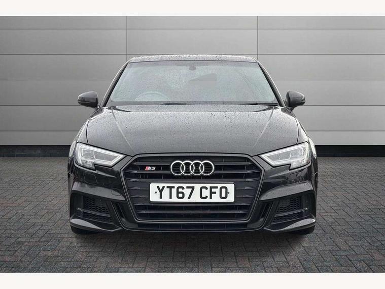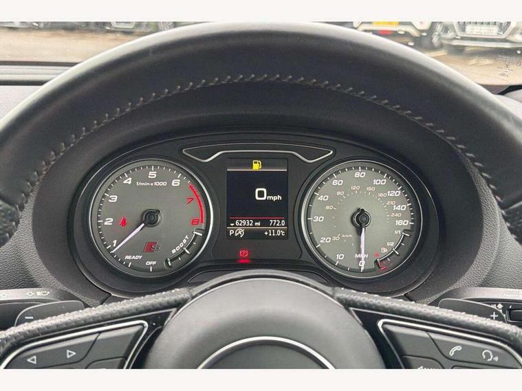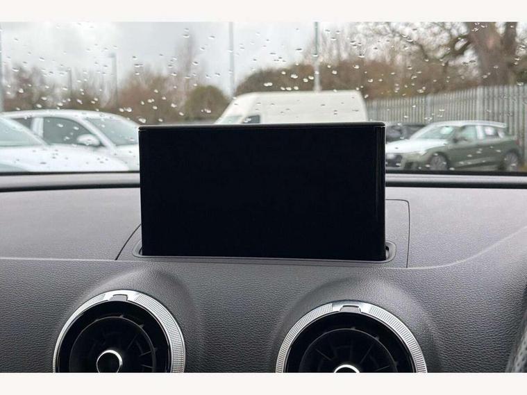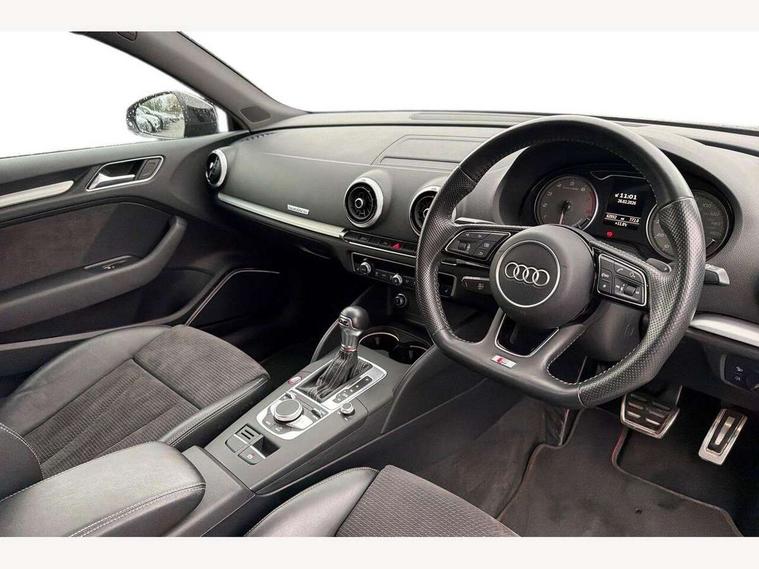 Audi connect, Audi drive select, Audi smartphone interface, Colour driver's information system display, Mobile telephone preparation - bluetooth interface, Progressive power assisted steering, SD card based satellite navigation system, Service interval indicator, Speed limit display, Voice control system, S sports suspension, 2 USB ports, Audi music interface, Auxiliary input socket, Bang + Olufsen advanced sound system, CD player, DAB Digital radio, MMI radio plus with 7" colour MMI screen and MMI controller, Auto dimming rear view mirror with light and rain sensors, Black door mirrors, Black window surrounds, Body colour bumpers with black insert, Body colour roof spoiler, Electric front windows, Electric operated/heated door mirrors, Headlight washers, Heated windscreen washer jets, LED daytime running lights, Matt black radiator grille, Platinum grey radiator grille with double chrome bars, Privacy glass, Rear wiper, S body styling, Twin oval chrome trimmed exhaust tailpipes, 3 adjustable rear headrests, 3 spoke flat bottomed multi-function leather steering wheel, 4 lashing points to secure luggage, Adjustable front armrest, Dual zone electronic climate control, Front and rear interior lights with delay, Front passenger seat isofix location point, Front/rear floor mats, Heated front seats, Height/depth adjustable steering column, Illuminated door sills, Illuminated glovebox, ISOFIX child seat preparation+airbag deactivation, Jack and tool kit, Rock grey headlining, Stainless steel pedals, Steering wheel gearshift paddles, Storage compartment in centre console, Storage compartment under front seats, Storage compartments in doors, Black styling pack - A3/S3, LED interior light pack - A3/RS3, Non smoking pack - A3, Storage and luggage pack - A3/RS3, 3 point seatbelts on all seats, ABS/EBD, Active bonnet, Active front headrests, ASR, Curtain airbags, Driver and passenger side airbags, Driver/Front Passenger airbags, Drivers knee airbag, EDL, Electromechanical parking brake, ESC - Electronic Stability Control + traction control, Front passenger airbag deactivation, Manual rear child locks, Multi-Collision braking, Seatbelt warning, Tyre pressure warning, Warning triangle and first aid kit, Anti theft alarm, Anti-theft wheel bolts, Remote control central locking, Thatcham category 1 alarm + immobiliser, Aluminium air vent surrounds, Aluminium trim elements, Space saver spare wheel,
