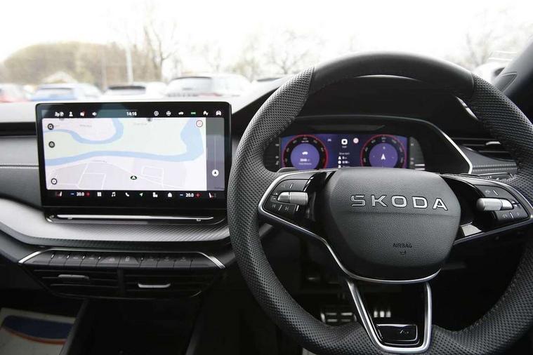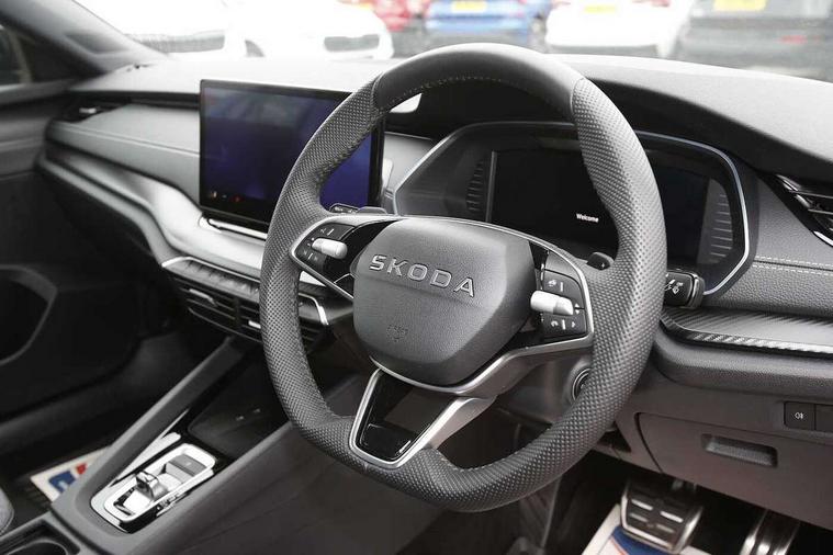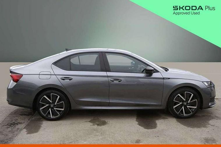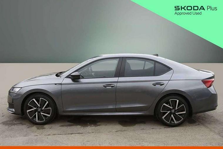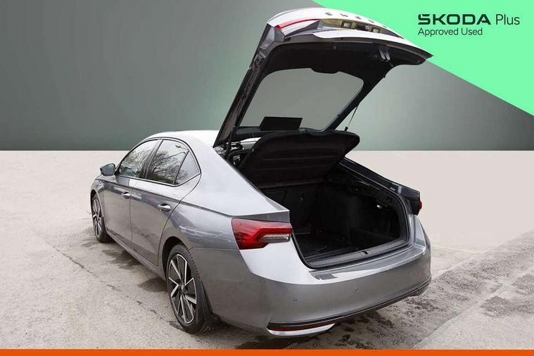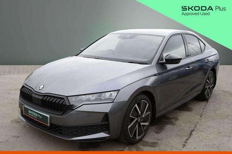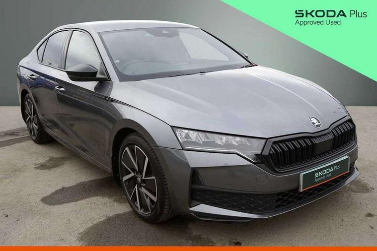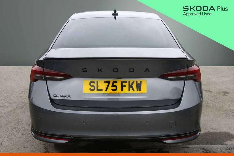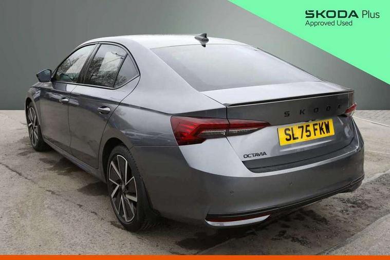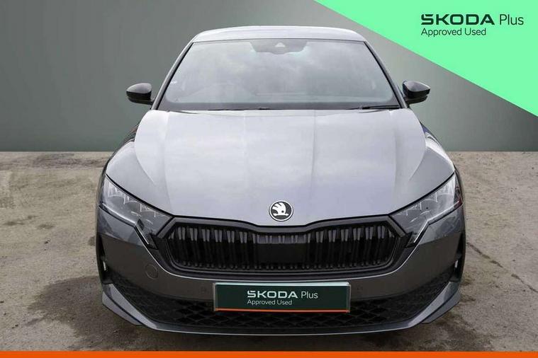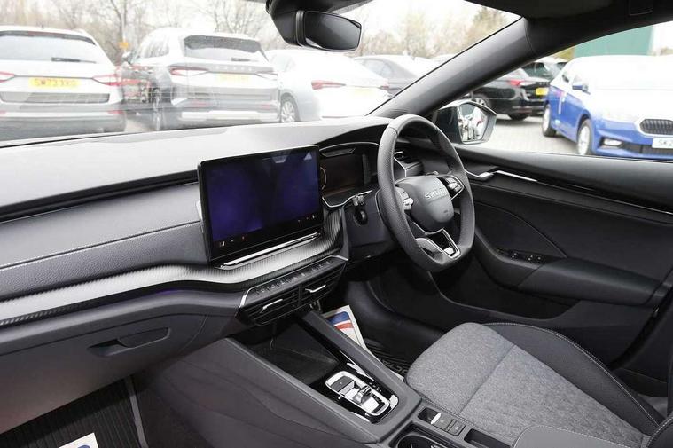 1x USB Typc C port in rear view mirror, 4x USB Type C ports - 2x in front centre console and 2x in rear (45W), Drive mode selection, Driver fatigue sensor, eCall emergency system, Front assist system, Progressive dynamic steering, Traffic sign recognition, Turn Assist, Virtual Cockpit - 10.25" digital display, Voice control system, Wireless charging (15W) with cooling function, Wireless SmartLink for Apple CarPlay and Android Auto, Sports suspension with 15mm lower, 13" touchscreen display with navigation, DAB Digital radio, Aero front windscreen wipers with intermittent function, Auto dimming rear view mirror, Body colour bumpers, Body colour door handles, Chrome strip in lower front bumper, Electric front and rear windows, Exterior gloss black sports styling including front grille, window surrounds, door mirrors and badging, Gloss black diffuser, Gloss black spoiler, Heated rear windscreen, High beam control, High level third brake light, Ice scraper in fuel cap, LED daytime running lights, Logo projection in front doors, Rain and light sensors, Rear fog light on one side and reversing lights on both sides, Rear privacy glass, Rear side wing doors, 12 volt socket in boot, 3 rear headrests, 3 seat bench in 2nd row, 4 foldable roof handles, Aluminium pedals, Boot net programme, Front head restraints, Front sport seats, Heated front seats, Illuminated glovebox, Interior door handles in dark chrome, Jumbo Box storage, Luggage compartment lighting x2 lights, Mechanical rear seat release from boot, Parcel shelf - folding, Single front passenger seat, Steering wheel in black leather with black stitching, Storage compartments in left and right of boot, Sun visors with mirrors, Sunglasses storage, Three spoke leather sports multifunction steering wheel with paddles, Ticket holder, Umbrella in door panel, Unsplit rear bench seat, split folding backrest with centre armrest with cupholder, SportLine Design Selection pack - Octavia, 3x3 point rear seat belts, Alarm with interior monitoring, tilt sensor and back up horn, Curtain airbags and front side airbags, Driver and front passenger airbags, Drivers knee airbag, Electronic parking brake, ESC including ABS, EBV, MSR, ASR, EDS, HBA, DSR, Front central airbag, Hill hold assist, ISOFIX on front passenger seat and outer rear seats, Passenger airbag deactivate switch, Three point seat belts in front and rear, Two tone horn, Tyre pressure monitor, Visual and acoustic seat belt reminder, Warning reflectors in front door, Anti-theft wheel bolts, Keyless entry and start/stop, Remote central locking, Gloss black air vent surrounds,