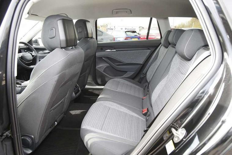 13" touchscreen display with satellite navigation, 4x USB-C ports (2x in front centre console and 2x in rear) (45W), Adaptive cruise control with speed assist, lane assist plus and traffic tram assist, Blind spot detection with door exit warning, Bluetooth system, CareConnect and Emergency Call, ChatGPT functionality, Drive mode selection, Driver fatigue sensor, Front assist with extended predictive pedestrian protection, Front cross traffic assist, PAS, Quick start all heating software functionality, Stop/start engine system, Traffic sign recognition, Turn assist with evasive assistance, Virtual Cockpit - 10.25" digital display, Voice control system, Washer for rear camera, Wireless charging for one smartphone (15W) with cooling function, Wireless smartlink apple carplay, SmartLink+ android auto, Mode 3 charging cable, 8 Speakers, DAB Digital radio, Display cleaner, FM radio connection, Web radio connection, Acoustic side windows and interior noise suppression, Backdrop lighting, Body colour door handles, Body coloured door mirrors, Chrome roof rails, Chrome window surround, Dark chrome grille surround, Frameless auto-dimming rear view mirror with USB-C, Ice scraper in fuel tank cap, LED 3rd brake light, Light assist with High beam control, Light assistant (coming/leaving home/tunnel light), Privacy glass, Rear fog light (x1), Rear roof spoiler, Rear side wing doors, Rear windscreen wiper, Unique dark chrome design logo on alloy wheels, Windscreen wipers with rain sensor, 12V socket 1x centre console 1x boot, 2x cargo elements in boot, 2x light in boot, 3 seat bench in 2nd row, 4x foldable bag hooks in boot, 60:40 Split folding rear seats, Bottle holders in the front doors 1.5 litre bottle and rear 1.5 litre bottle, Cup holder in front with easy open mat, Front armrest with storage box, Heated front seats, Height adjustable front and rear head restraints, Illuminated glovebox, Interior lights with control switches, Isofix child seat fittings in outer rear and front passenger seats, LED front and rear reading lights, Single front passenger seat, Skoda lettering on steering wheel, Standard front seats, Storage compartment with cover, Storage pockets on back of front seats, Sun visors with illuminated vanity mirrors, Ticket holder on A Pillar, Tri zone climate control, Umbrella in driver's door, 3 rear seatbelts, 8 Airbags - Front driver and passenger, front side driver and passenger, centre, curtain front and rear, drivers knee, Crew protect assist, Driver and passenger seatbelts with warning light, Electronic parking brake, ESC including ABS, EBV, MSR, ASR, EDS, HBA, DSR, RBS, CBC, multi-collision brake (MKB) and Auto hold, Hill hold assist, Power operated child lock in rear doors, Alarm with interior monitoring tilt sensor and back up horn, Backrest remote release from trunk, Electronic engine immobiliser, Keyless start/stop, Remote central locking with SAFE system, Third key, Decorative front door sills, Tyre repair kit,