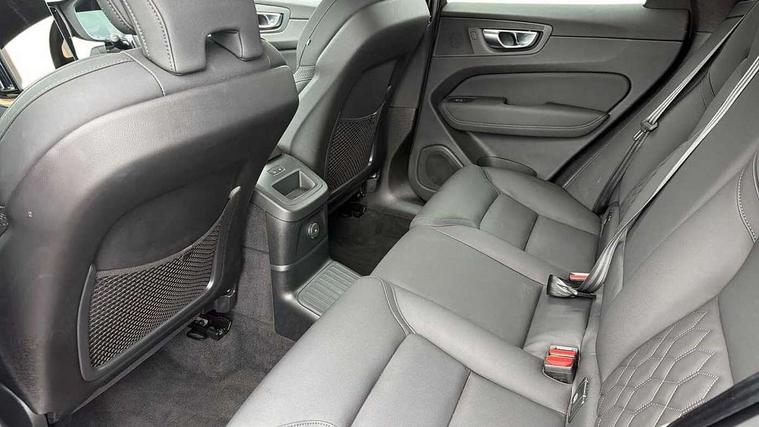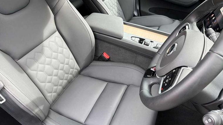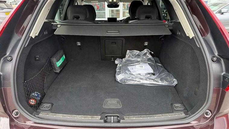 11.2" centre console touch screen, 12.3" Progressive Driver Display, 360 degree surround view parking camera with side proximity sensors, Adaptive cruise control, Adjustable steering wheel force, Android auto (Wired), Apple carplay (wired), Bluetooth handsfree system, Drive mode settings, Driver alert control with lane keeping aid, Emergency services call system, Front and rear park assist, Google Automotive Services, Intelligent speed assistance, Oncoming Lane Mitigation, PAS, Power operated tailgate with handsfree opening and closing, Service interval indicator, Speed limiter, Speed sensitive steering, Trip computer, Volvo cars services with app, Volvo on call with App, Wireless/Inductive Mobile Phone Charging, 2 phase on board charger 6.4kW (home charging limited to 3.7kW), 6m 3 phase 16amp Type 2 / mode 3 charge cable, 8 speed automatic transmission with start/stop + manual change functions, Electric rear axle drive, Recharging port located in nearside front wing, DAB Digital radio, Low speed exterior sound speaker, Premium Sound by Harman Kardon, dirac unison, dolby pro logic II surround sound, 13 speakers/600W output and fresh air subwoofer, Steering wheel remote infotainment controls, Adaptive brake lights with high level LED brake lights, Auto dimming interior + exterior mirrors, Automatic headlight levelling system, Automatic LED Headlights + Active high beam incorporating daytime running lights, Electric adjustable/heated/auto power folding door mirrors, Electric front+rear windows, Front aluminium tread plates, Heated front windscreen, High gloss black door mirrors and window surround, High gloss black front and rear bumper decoratives, High gloss black mesh front grille with high gloss black surround, Home safe and approach lighting, Integrated roof rails in high gloss black, Puddle lights, Rain sensor with automatic windscreen wiper activation, Rear side wing doors, Rear wiper, Roof antenna, Roof spoiler, Tinted windscreen, Visible VIN plate, 12V socket in front tunnel console and luggage compartment, 2 zone electronic climate control with Clean zone air quality system and pollen filter, 3 seat bench in 2nd row, 3 Spoke tailored steering wheel with chrome trim, A-pillar parking ticket holder, Air purifier particulate matter (PM) 2.5 filter, B Pillar ventilation, Bright metal luggage scuff plate, Centre console cupholders and storage, Charcoal floor mats, Front and rear courtesy lights, Front and rear door pocket illumination, Front cupholder illumination, Front footwell illumination, Front reading lights, Front seat cushion extensions, Glovebox compartment with illumination, Head restraints for all seats, Heated front seats, Heated steering wheel, Height/reach adjustable steering column, Illuminated luggage compartment, Illuminated vanity mirrors + ticket holder, Inner door release handle illumination, ISOFIX attachment on outer rear seats, Load cover, Load protection net, Multi directional lumbar support, Power driver seat with memory + exterior mirrors memory, Power height adjustable passenger seat, Power passenger seat with memory, Quilted nordico leather upholstery, Rear armrest with cupholder, Rear footwell and front and rear side step illumination, Rear reading lights, Rear seat concealed storage, Single front passenger seat, Tailgate illumination and ambient door lighting, Underfloor stowage compartment, Versatile split folding rear seat - 60/40, Driver assist pack without Adaptive cruise control - XC60, 5 three point seatbelts, City safety with steering support with Pedestrian + cyclist + front collision warning with full auto brake and rear auto brake, Drivers knee airbag, Dual stage driver/passenger airbags, Electronic parking brake with auto hold, First aid kit, Front seats SIPS airbags, Hill descent control - Off-road drive mode, Hill start assist, IC (Inflatable Curtains) - Full Length, Passenger airbag cut-off device, Power child locks on rear doors, Road sign information display, Run off Road Mitigation, Run off Road Protection, Seatbelt reminder and pretensioners, SIPS (Side Impact Protection System), Slippery road and hazard light alert, Stability and Traction Control with Spin control, Engine Drag Control and Corner Traction Control, Tyre pressure monitoring system, Vehicle deceleration control with Anti-lock Brake System, Electronic Brake Distribution and Emergency Brake Assist, Warning triangle, WHIPS whiplash protection system - front, Anti-theft alarm including immobiliser/volume sensor + level sensor, Key integrated remote control central locking + fuel flap with deadlocking system and auto open/close power windows, Keyless Drive (includes Keyless Entry and Keyless Start), Locking wheel nuts, Private locking for tailgate, Summer tyres, Tyre sealant kit + 12v compressor,
