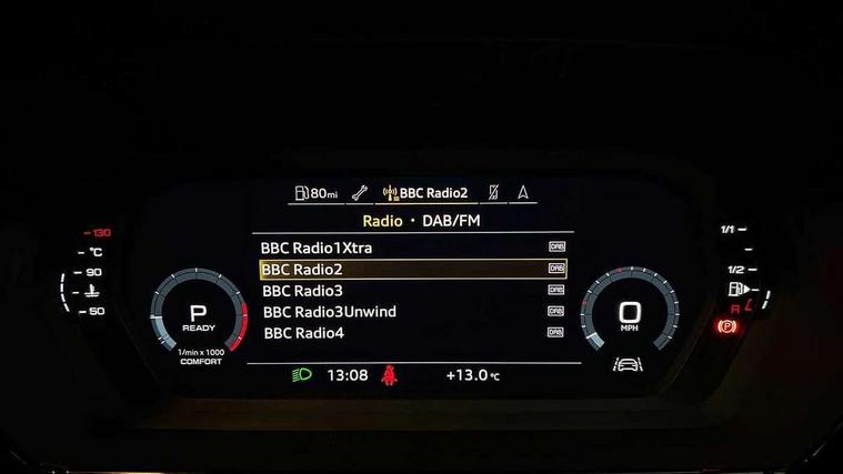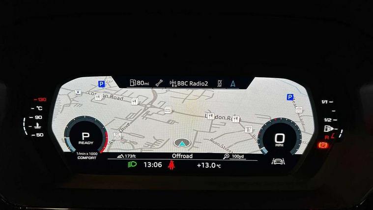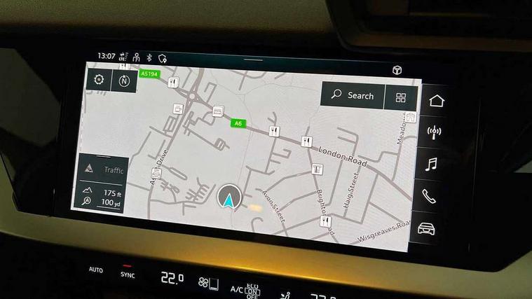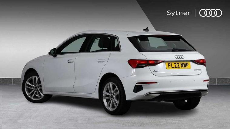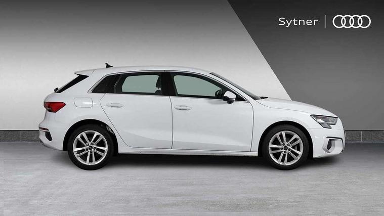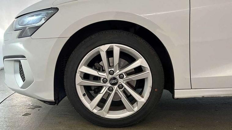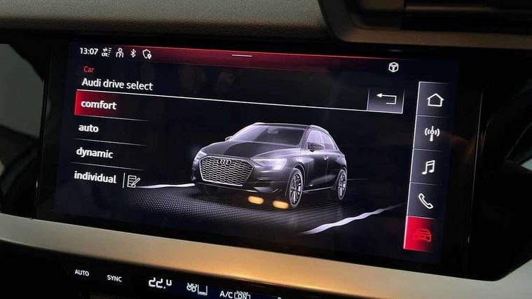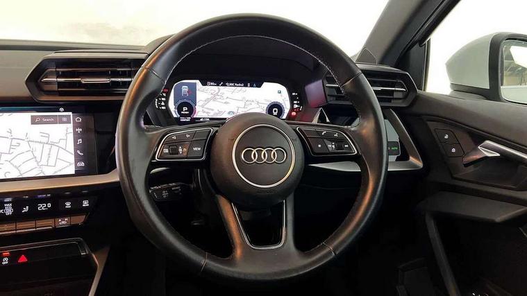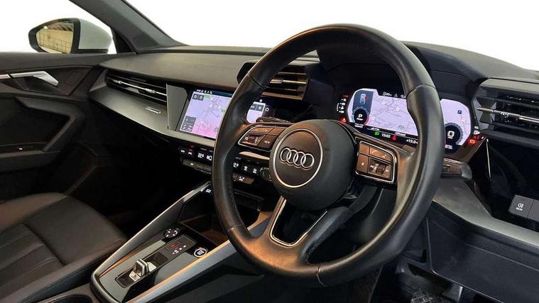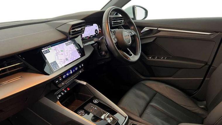 Audi connect emergency call and service, Audi drive select (Auto, Comfort, Dynamic and Individual), Audi smartphone interface, Audi Virtual Cockpit - 10.25" digital and colour instrument cluster, Automatic start/stop system with recuperation, Bluetooth interface, Collision avoidance assistant, Electromechanical power speed sensitive steering, Lane departure warning system, MMI Navigation Plus with high resolution 10.1" colour touch screen display, Service indicator, Trip computer, Voice control system with natural language interaction, Standard suspension, 2xUSB-C connection with data and charging functions, 6 passive loudspeakers, DAB Digital radio, 3rd brake light, Acoustic glass windscreen, Aluminium window trim, Auto dimming frameless rear view mirror, Body colour exterior mirrors, Body colour roof spoiler, Electrically adjustable/heated/folding/auto dimming door mirrors with integrated LED indications + kerb view function for passenger side, Front electric windows, LED daytime running lights, LED headlights and halogen rear lights, Light and rain sensors, Rear electric windows, Rear window, rear door windows and rear side windows in clear glass, Rear wiper, 12V socket and storage compartment in front centre console, 40/20/40 split folding rear seat bench with cupholder, Dual zone electronic climate control, Front and rear centre armrest, Front and rear headrests, Front door sill trims with aluminium inlay, Front/rear floor mats, Height and reach adjustable steering wheel, Interior lighting - Front and rear roof module including reading lights, glove compartment light and right hand side, Luggage compartment floor covering, Manual boot compartment lid, Manually adjustable front seats, Seat side bolsters, Steel grey cloth headlining, Twin leather upholstery, Aluminium interior elements pack - A3 Sportback, Sport styling pack - A3 Sportback, 3x3 point rear seat belts, Driver and front passenger airbag with passenger airbag deactivation, Electronic Stabilisation Control (ESC) including ABS, ASR and EDL, First aid kit with warning triangle and 2 safety vests, Front side airbags with head airbags and interaction airbag, Hill hold assist, Pre-sense front with pedestrian and cyclist detection, Seatbelt monitoring, Tyre pressure loss indicator, Anti theft alarm, Anti-theft wheel bolts, Electronically operated child lock, Immobiliser, Remote control central locking, Inlays with silk effect paint in platinum grey,