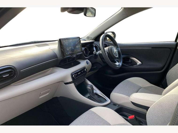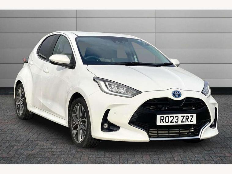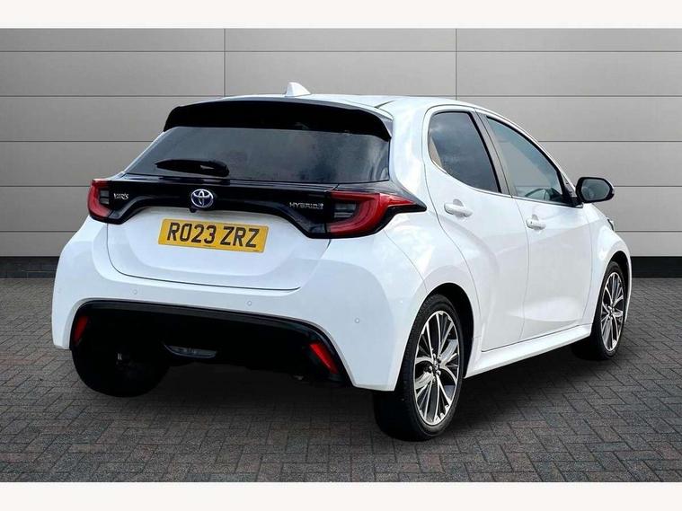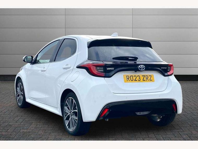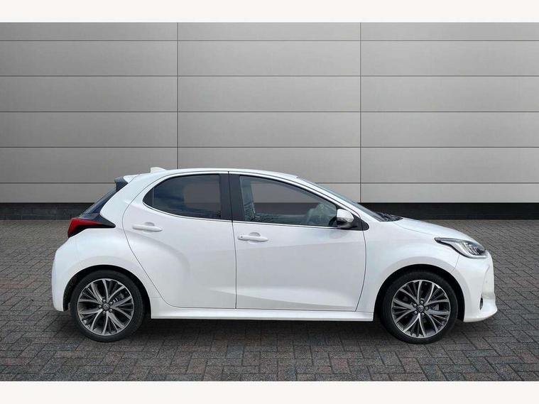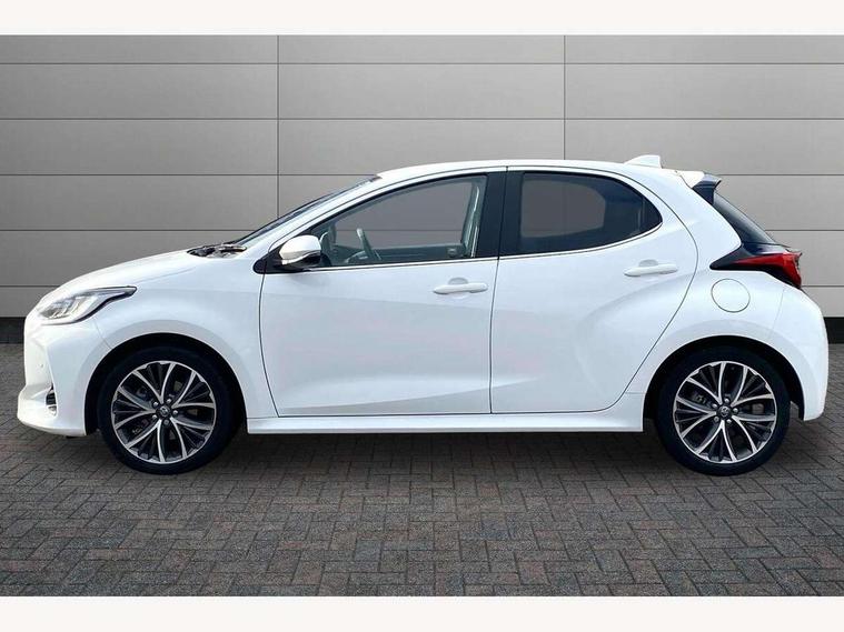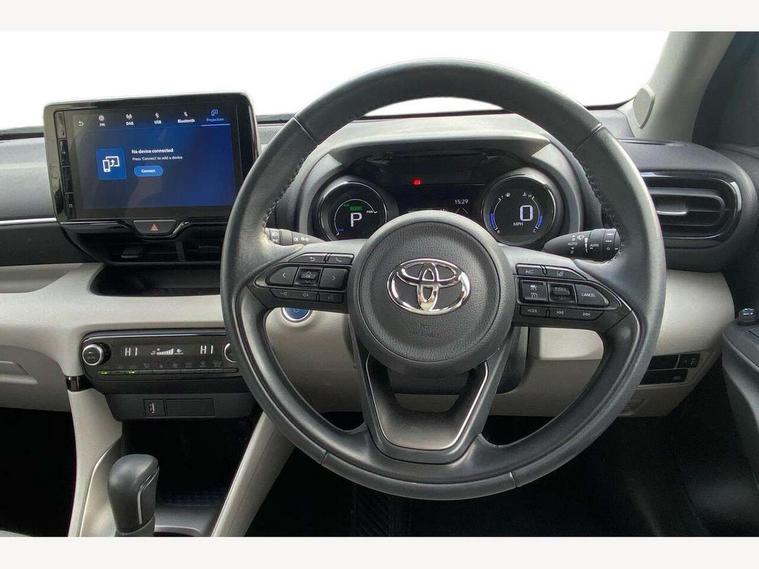 Adaptive cruise control, Adjustable speed limit with speed warning, Blind spot monitoring, Bluetooth connectivity, Colour binocular inspired displays with digital speedometer, E-call, Electric power steering, Hybrid energy display, Multi information display switches on steering wheel, Reversing camera, Smartphone integration with Apple CarPlay and Android auto, Tailgate, Touch 2 navigation system, Voice recognition, Vehicle Stability Control (VSC), 6 speakers, 9" HD multimedia display touch screen with Toyota smart connect, USB connection, Acoustic windscreen glass, Auto windscreen wipers, Automatic headlights, Automatically retractable door mirrors, Body coloured door mirrors, Electric adjustable heated door mirrors, Follow me home headlights, Front auto power windows with anti jam protection, Full LED rear lights, LED daytime running lights, LED front fog lights, LED front light guide, LED Headlights, LED High mounted stop lamp, LED Indicators, LED rear light guide, Manual headlight levelling, Painted chequered front grille, Rain sensor, Rear auto power windows with anti jam protection, Rear privacy glass, Rear side wing doors, Rear spoiler, Rear wiper, Satin lower front grille, Shark fin antenna, Turning signal integrated indicators in door mirrors, Variable front intermittent wipers, 3 adjustable rear headrests, 3 seat bench in 2nd row, 3 spoke leather steering wheel, 60/40 split folding rear seat, Active headrests, Adjustable boot height, Coat hooks in rear grab handles, Cup holders (2 front & door), Data Communication Module (DCM) connected services, Dual zone automatic air conditioning, Fabric seat with partial synthetic leather upholstery, Front armrest, Front sport seats, Glovebox, Grey roof lining, Height adjustable driver's seat, Height adjustable passenger seat, Isofix seat fixing, Leather gearshift, Map pockets on the backs of the front seats, Pollen filter, Shopping bag hooks, Single front passenger seat, Tilt/telescopic steering column, Parking pack - Yaris, 3 point seatbelts on all rear seats, ABS+EBD+Brake assist, Electronic parking brake, Emergency brake light system (EBS), Front passenger airbag on/off switch, Front seatbelt reminder, Hill start assist control (HAC), Rear child proof door locks, Rear seat belt reminder, Supplemental Restraint System (SRS) 8 airbags: Driver & passenger's airbags, dual side curtain airbags, side impact airbags, front centre airbag, Toyota Safety Sense 2, Precollison + Night time Pedestrian & Cyclist Detection, Lane Trace Assist, Auto High Beam, Intelligent ACC & Road Sign Assist, Tyre pressure warning system, 2x Master key, Alarm/immobiliser, Keyless smart entry with push button start, Remote AC via MyT, Remote locking via MyT, Remote powered central double locking doors, Satin chrome interior styling, Soft touch instrument panel, Space saver spare wheel,