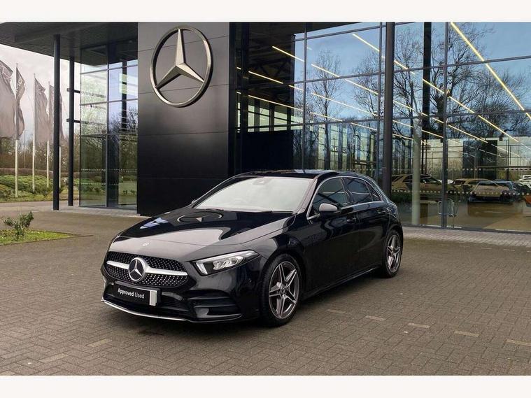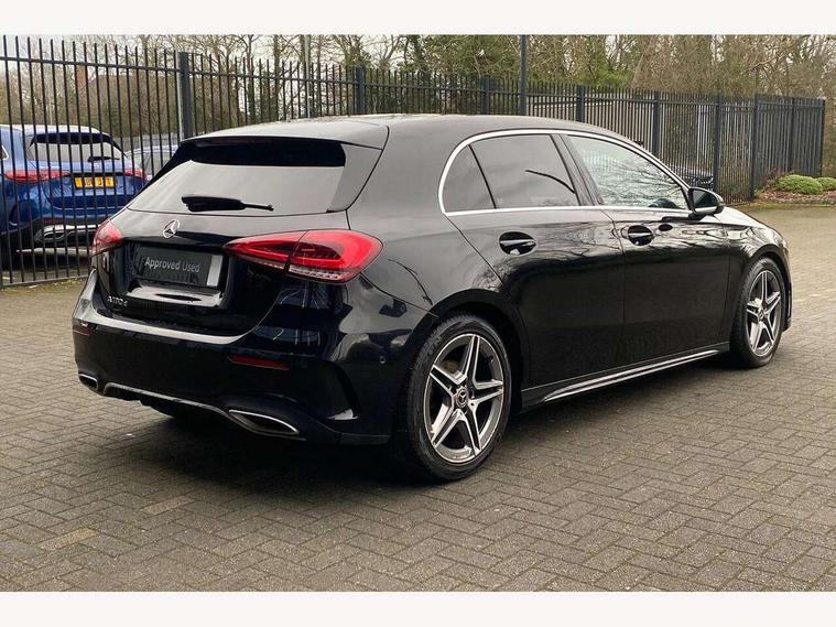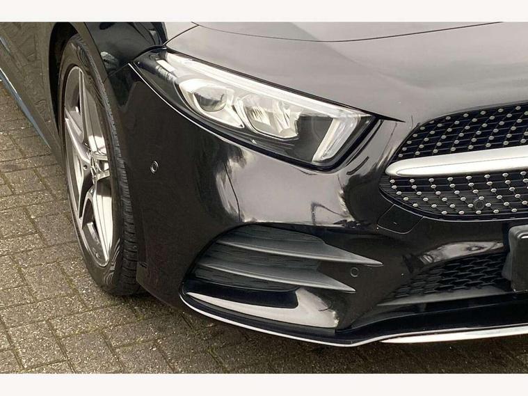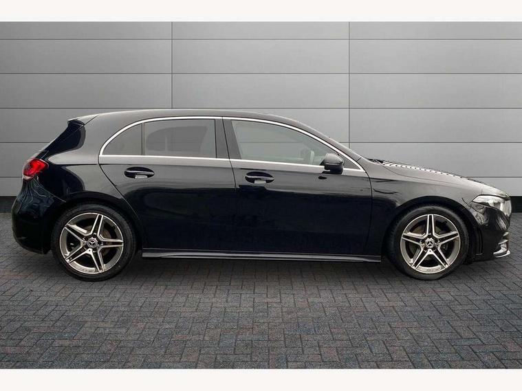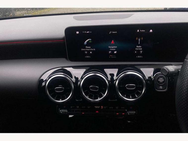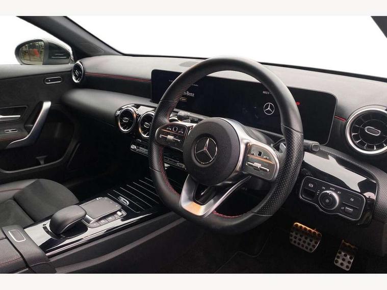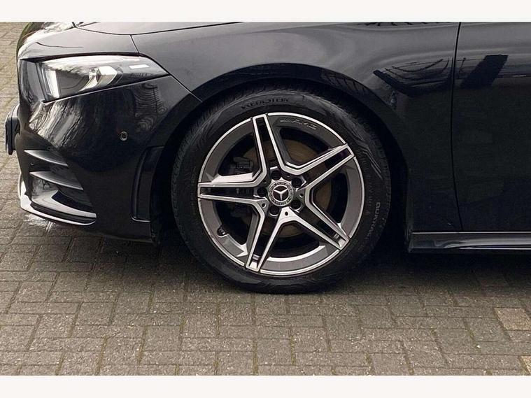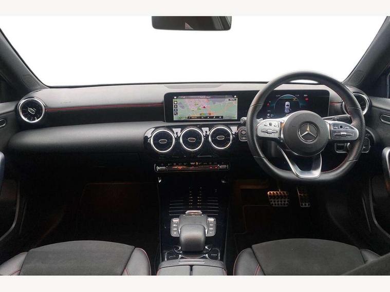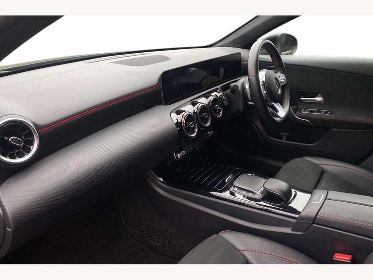 10.25" media display, 180 degree rear view camera with parking guidelines, 7" colour screen in instrument panel, Active lane keep assist, Active park assist with parktronic system including front and rear parking sensors, Attention assist, Brake pad wear indicator warning light, Cruise control + speed limiter, Direct steering, Dual bluetooth interfaces, DYNAMIC SELECT with a choice of driving modes (ECO, Comfort, Sport and Individual), ECO start/stop function, Fluid level warning indicator for fuel, oil, coolant and washer fluid, Hard-disk navigation, Hey Mercedes Voice activation, Lamp failure indicator, Mercedes me connect including emergency call system, accident recovery, breakdown and maintenance management, Outside temperature gauge, Owners manual in English, Pre-installation for private car sharing, Pre-installation for Vehicle Monitoring, Pre-installation for Vehicle Setup, Preinstallation for Mercedes Benz link, Service indicator (ASSYST), Smartphone integration with Apple CarPlay and Android auto, Speed sensitive power steering, Trip computer, Wireless charging, Lowered comfort suspension, Rear axle torsion beam, 2 USB ports (type C) in rear stowage compartment and one in front of center console, 6 speakers, DAB Digital radio, MBUX multimedia system with DAB digital radio and touchpad including satellite navigation, Mercedes-Benz sound system - 100W, 4 Electric Front and Rear windows, Adaptive brake lights, AMG bodystyling - Front apron with splitter in chrome, rear apron with chrome trim and chrome visible trim elements in tailpipe, Black weather strip, Body colour bumpers, Body colour door handles, Body colour side skirt, Body coloured door mirrors, Chrome beltline trim, Diamond radiator grille with chrome pins and silver louvre + chrome insert, Electric adjustable and heated door mirrors with integrated LED side indicators, Exhaust system - Twin visible tailpipes in polished stainless steel, Headlamp assist automatic headlamp activation, Heated glass rear windscreen + timer control, LED high performance headlamps with integrated LED daytime running lights, LED tail lamp, LED third brake light, Privacy glass, Radio aerial, Rain sensing windscreen wipers with two sensitivity settings, Rear fog lights, Rear wiper, Window line trim strip in chrome, 3 Spoke flat bottom leather multi function steering wheel with perforated leather in grip area, 40:20:40 split folding rear seats, Artico man-made leather/Microfibre Dinamica upholstery with red contrast stitching, Auto Mercedes-Benz child seat recognition sensor, Black air vents with surround in silver chrome, Black roof lining, Brushed stainless steel sports pedals with rubber studs, Controller on centre console with chrome surround, Floor mats with stitched edging and AMG lettering, Front centre armrest with storage compartment, Front door sills with Mercedes Benz lettering, Front seat backs luggage nets, Front seat cushion length adjustment, Galvanished gear shift paddles on steering wheel, Heated front seats, Height/reach adjustable steering column, Manual height adjustable front seats, Rear head restraints, Seat occupancy sensor for front passenger seat, Spectacles compartment for driver, Sports seats with integrated headrests, Stowage compartment in centre console with retractable cover, Sunvisors with illuminated vanity mirrors, Touchpad on center console, Twin front cupholders, Two zone thermotronic luxury automatic climate control, Light and sight pack - A Class, Mirror package - A Class, Seat comfort pack - A Class, 3 rear 3 point seatbelts, ABS with Brake Assist, Active bonnet, Active brake assist includes forward collision warning system with autonomous braking, Adaptive brake assist with hold function and hill start assist, Black seatbelts, Childproof locks manually operated for rear doors and electrically operated for rear power windows, Crash responsive emergency lighting, Driver and passenger head and side airbags, Drivers knee airbag, Dual stage driver/passenger airbags, Electronic parking brake, ESP curve dynamic assist, ESP with ASR, Front and rear seatbelt reminder, Front brake callipers with Mercedes Benz lettering, ISOFIX and top tether child seat fixing points in two outer rear seats, Tyre pressure monitoring system, Warning triangle and first aid kit, Window airbags, Alarm system/interior protection/immobiliser, Keyless Go, Remote central locking and crash sensor with emergency opening function, Dinamica microfibre trim in black, 18" AMG 5 twin spoke light alloy wheels in titanium grey with highsheen finish, Summer tyres, Tirefit sealant kit,