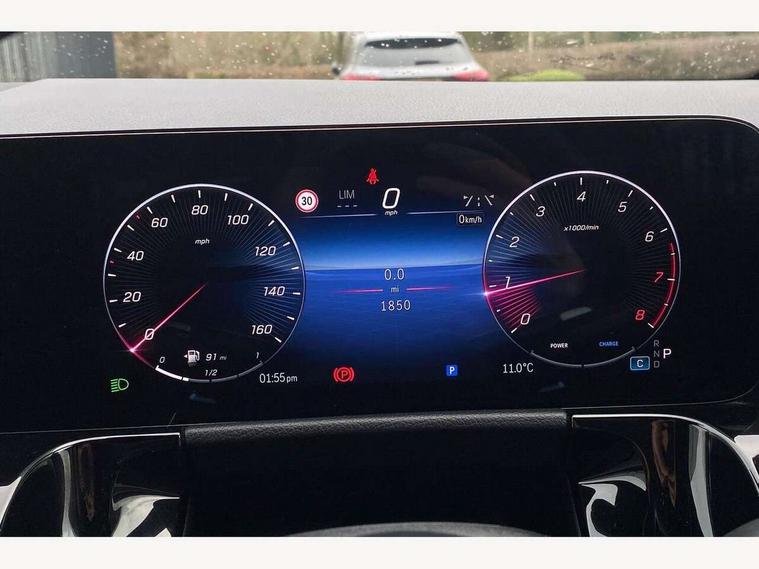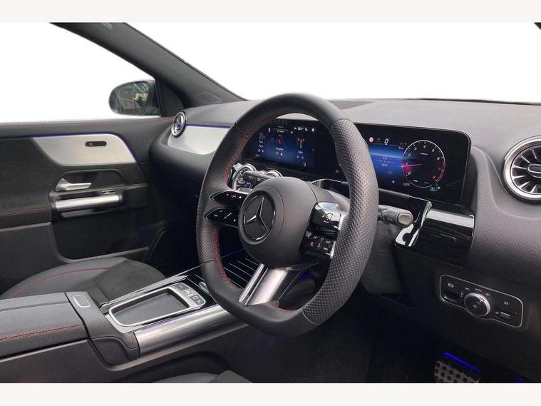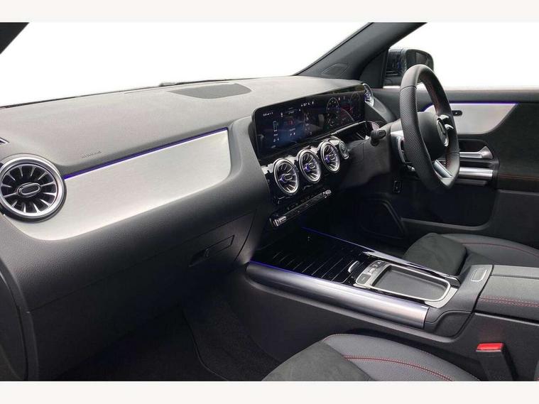 10.25 inch touchscreen central media display, 10.25" Digital instrument cluster display screen, Attention assist, Blind spot assist, Direct steering, DYNAMIC SELECT with a choice of driving modes (ECO, Comfort, Sport and Individual), ECO start/stop function, Fluid level warning indicator for fuel, oil, coolant and washer fluid, Hard-disk navigation, Hey Mercedes Voice activation, Lamp failure indicator, Lane keeping assist (LKA), Mercedes me connect including emergency call system, accident recovery, breakdown and maintenance management, Mercedes me remote services, Multi function trip computer, Outside temperature gauge, Owners manual and service booklet in English, Pre-installation of private car share, Radio aerial integrated into front and rear windshields, Service indicator (ASSYST), Smartphone integration with Apple CarPlay and Android auto, Speed limit assist, Wireless charging, Lowered comfort suspension, Rear axle multi-link, Bluetooth connectivity including audio streaming, DAB Digital radio, MBUX multimedia system, Mercedes Benz sound system (100 W) with 6 speakers, Adaptive brake lights, Adaptive highbeam assist, Aluminium roof rails, AMG front apron with front splitter in the colour of the vehicle with chrome trim element, AMG rear apron with visible tailpipe trim and chrome trim element, AMG specific/dual flow exhaust pipes in chrome (non-functional), Automatic headlamp activation, Beltline trim and window line trim strip in high gloss aluminium, Black grained side sill trim with chrome inlay, Car wash function, Dark privacy glass from B-pillar backwards, Electric front windows, Electric rear windows, Electrically adjustable and heated door mirrors with integrated LED indicators, Exhaust system with 2 Visible tailpipe trim elements and rear apron with trim in chrome, Heat insulating dark tinted glass, Heated glass rear windscreen + timer control, Interior mirror with black reading lamps and frameless, LED high performance headlamps with integrated LED daytime running lights, LED tail lights, LED third brake light, Rain sensor windscreen wipers, Rear fog lights, Rear side wing doors, Rear wiper, Wheel arch liners in the colour of the vehicle, 3 seat bench in 2nd row, 3 spoke flat bottom multifunction nappa leather steering wheel, 4 way lumbar support, 40:20:40 split folding rear seat backrests, Adjustable head restraints, Air conditioning - air vents with silver chrome surround, Air conditioning - One zone THERMATIC automatic climate control with automatically controlled air distribution, AMG floor mats, Artico man-made leather/Microcut microfibre upholstery with red contrast stitching, Auto Mercedes-Benz child seat recognition sensor, Black roof lining, Courtesy light in boot, Fluorescent jacket, Front centre armrest with stowage, Galvanished gear shift paddles on steering wheel in silver chrome, Heated front seats, Illuminated glovebox, Interior lighting - 64 colour Ambient lighting, Luggage net on driver/front passenger seat backrest, Manually height and reach adjustable steering column, Single front passenger seat, Sports pedals in brushed stainless steel with black rubber studs, Sports seats, Sports steering wheel, Stowage compartment in centre console, Stowage compartment with retractable cover, Sunvisors with illuminated vanity mirrors, Twin front cup holders, Two outer rear seat isofix and top tether child seat fixing points, Comfort seat pack - GLA Class, Interior lighting with light and sight pack - GLA, Keyless go comfort package - GLA, Mirror pack - GLA Class, Parking package with reversing camera - GLA, USB package plus - GLA, Winter package - GLA, 3 rear 3 point seatbelts, ABS with Brake Assist, Active bonnet pedestrain safety measure which detects an impact and raises bonnet by 65mm, Active brake assist includes forward collision warning system with autonomous braking, Adaptive brake assist with hold function and hill start assist, Black seatbelts, Bonnet with power domes, Brake pad wear warning indicator, Childproof locks manually operated for rear doors and electrically operated for rear power windows, Crash responsive emergency lighting, Driver and passenger head and side airbags, Drivers knee airbag, Dual stage driver/passenger airbags, Electronic parking brake, ESP curve dynamic assist, ESP with ASR, Front and rear seatbelt reminder, Front brake callipers with Mercedes Benz logo lettering on front, Front brake discs internally ventilated and perforated, Front passenger seat occupancy sensor, Sports braking system, Tyre pressure monitoring system, Warning triangle and first aid kit, Window airbags, Alarm system with immobiliser and interior protection -Thatcham category 1, Guard 360 degree vehicle protection, Remote central locking and crash sensor with emergency opening function, Light longitudinal grain aluminium trim, 19" AMG 5 twin spoke light alloy wheels aerodynamically optimised, painted in high-gloss black and with a high-sheen finish RTG, Summer tyres, Tirefit tyre sealant kit,