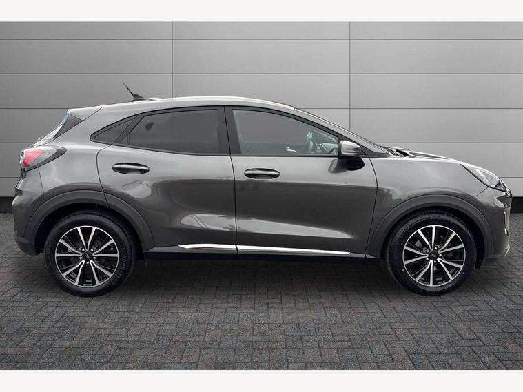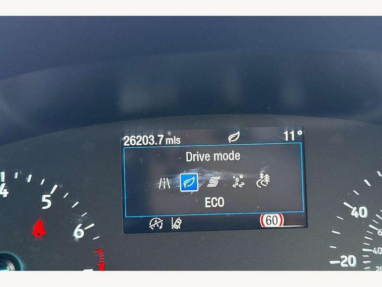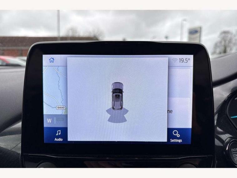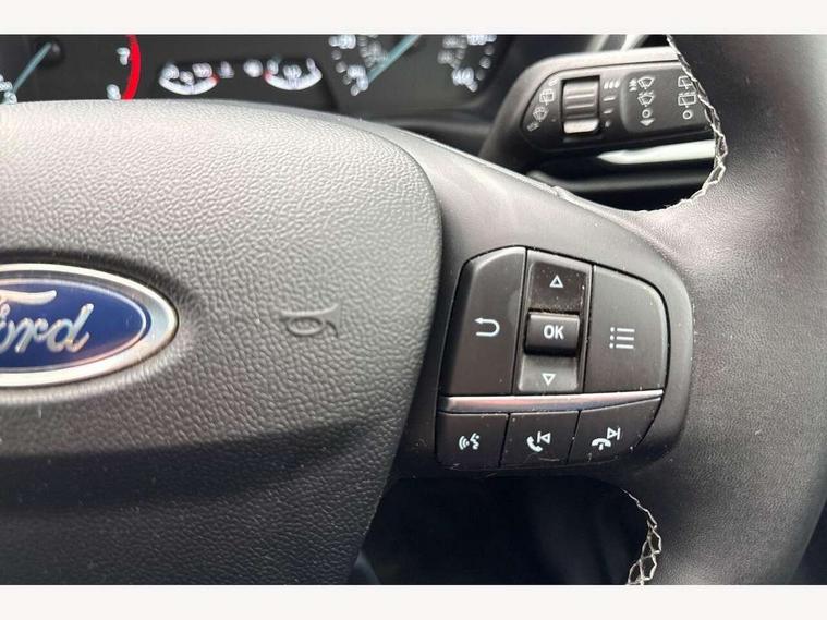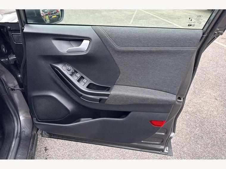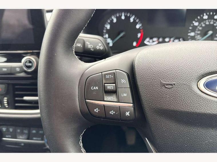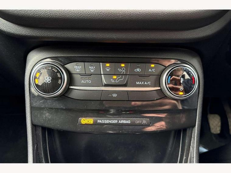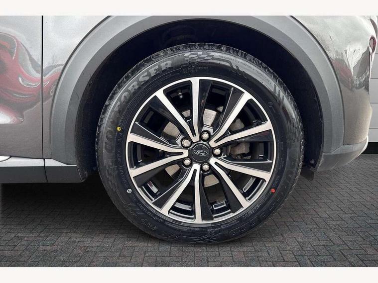 Driver impairment monitor, Emergency call service, Ford easy fuel, Lane keeping aid with lane departure warning, Power assist steering, Power start button, Rear parking sensor, Selectable drive modes(Normal, Eco, Sport, Slippery and Trail), Speed sign recognition, Standard suspension, Automatic headlights with auto high beam, Automatic rain sensing wipers, Body colour rear spoiler, LED rear lamps, Power foldable heated door mirrors with puddle lamps, Projector headlamps with LED day time running lights and front fog lamps, Quickclear heated windscreen, Rear side wing doors, Rear wiper, Third brake light, 3 seat bench in 2nd row, Centre console with armrest and stowage, Electronic automatic temperature control (EATC), Ford megabox extended bootspace, Front and rear head restraints, Front floor mats, Manual 2 way passenger seat adjustment, Manual 4 way driver seat adjust with lumbar adjustment, Sensico leather steering wheel/gear knob/handbrake, Single front passenger seat, Titanium cloth upholstery, Ford SYNC 3 navigation pack - Puma, 3 rear seatbelts, Child safety lock, Electronic stability control (ESC) and hill start assist, Pedestrian/cyclist detection & post-collision braking, Pre collision assist system, Tyre pressure monitoring system (TPMS), Thatcham alarm, 17" 10 spoke absolute black machined finish alloy wheel,