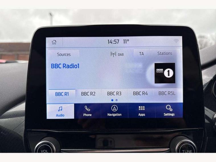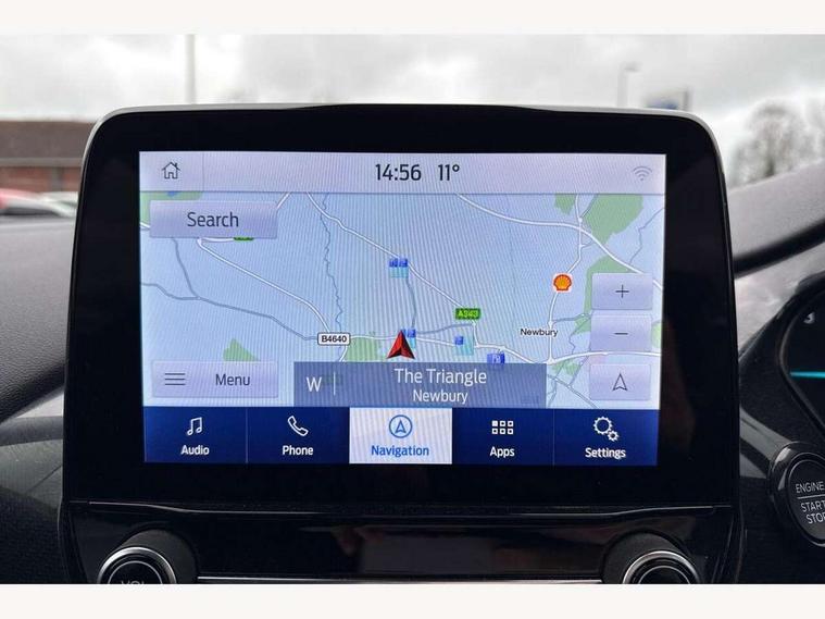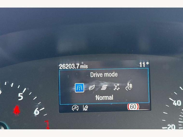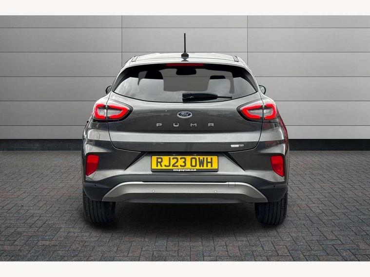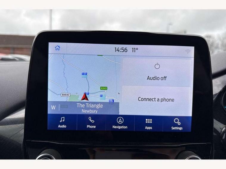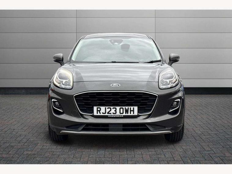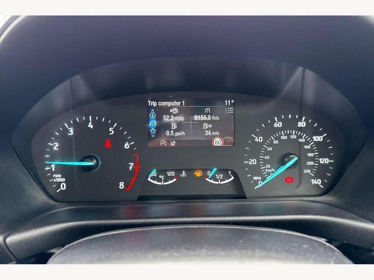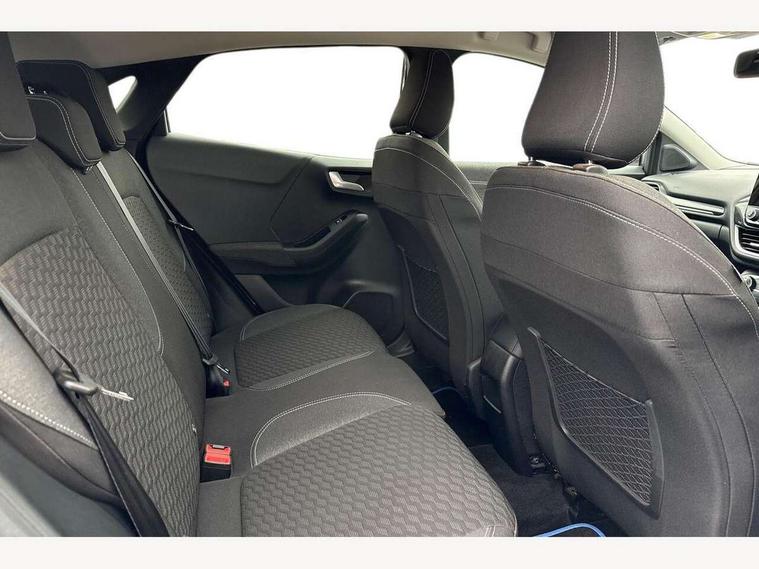Driver impairment monitor, Emergency call service, Ford easy fuel, Lane keeping aid with lane departure warning, Power assist steering, Power start button, Rear parking sensor, Selectable drive modes(Normal, Eco, Sport, Slippery and Trail), Speed sign recognition, Standard suspension, Automatic headlights with auto high beam, Automatic rain sensing wipers, Body colour rear spoiler, LED rear lamps, Power foldable heated door mirrors with puddle lamps, Projector headlamps with LED day time running lights and front fog lamps, Quickclear heated windscreen, Rear side wing doors, Rear wiper, Third brake light, 3 seat bench in 2nd row, Centre console with armrest and stowage, Electronic automatic temperature control (EATC), Ford megabox extended bootspace, Front and rear head restraints, Front floor mats, Manual 2 way passenger seat adjustment, Manual 4 way driver seat adjust with lumbar adjustment, Sensico leather steering wheel/gear knob/handbrake, Single front passenger seat, Titanium cloth upholstery, Ford SYNC 3 navigation pack - Puma, 3 rear seatbelts, Child safety lock, Electronic stability control (ESC) and hill start assist, Pedestrian/cyclist detection & post-collision braking, Pre collision assist system, Tyre pressure monitoring system (TPMS), Thatcham alarm, 17" 10 spoke absolute black machined finish alloy wheel,