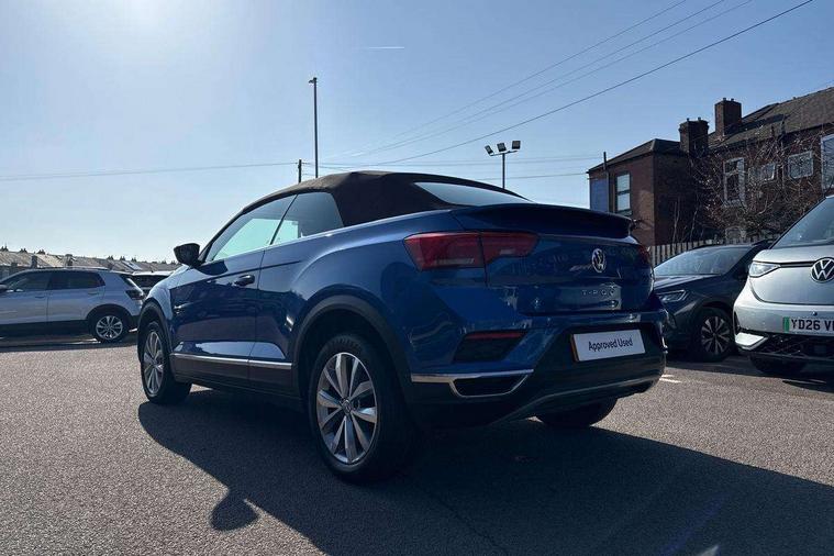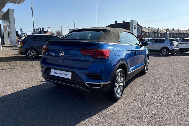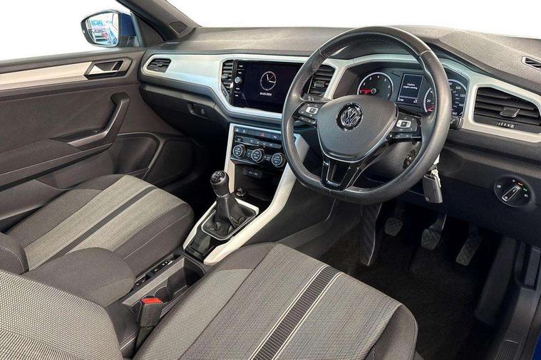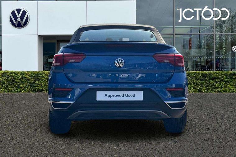 8" colour touch screen, Adaptive cruise control, Bluetooth telephone and audio connection for compatible devices, Brake pad wear indicator, Car information display, Driver alert system with fatigue detection, Driver profile selection including ECO function, Driver tips and journey analysis, Dynamic road sign display, Emergency call service, Front assist, radar sensor controlled distance monitor, city emergency braking + predictive pedestrian protection, Lane assist with warning text instrument cluster, Mobile phone interface, Modified key software - reduce switch off time for key status change to Long no motion, Multifunction computer with visual gear change recommendation for fuel consumption, Navigation system discover media including streaming and internet, Online services, Power assisted speed sensitive steering, Service interval indicator, Start/stop system with brake energy recovery, Wired and wireless app connect, Standard suspension, Bluetooth - Simultaneous pairing of 2 compatible mobile devices, DAB Digital radio, Diversity antenna for FM reception, Front USB type C Interface 2X and USB charging socket, Music playback - MP3, WMA and AAC files, SMS functionality - read, compose and send SMS messages using touch-screen display, Title and cover art display, WeConnect plus, Auto dimming interior rear view mirror, Automatic hazard lights activation under emergency braking, Automatic headlamp activation with manual coming home and automatic leaving function, Black door handles, Body colour bumpers, Body colour rear roof spoiler, Chrome effect left and right trapezoid exhaust tailpipe fascia surround, Chrome trim on upper and lower radiator grille, Dusk sensor, Electrically power adjustable, heated, folding, auto dimming, front passenger exterior door mirror lowering function, Front and rear electric windows, High level 3rd brake light, LED rear number plate lights, LED tail lamp rear comination lamps, Power operated canvas convertible top, Rain sensor, Rear fog lamp, Volkswagen roundel, Windscreen wiper with intermittent wipe light, 12V socket in centre console storage area, 2 front reading lights, 50/50 rear seat bench split folding rear seat backrests, Chrome plated radiator grille inserts, air vent surrounds and light switch surrounds in interior, Climate control - 2 zone electronic air conditioning with automatic air recirculation and allergy filter, Entry aid easy entry (Front folding seats), Front + rear carpet mats, Front centre armrest, Front comfort seats with manual height adjustment, Front cupholders x 2, Front seat back storage pockets, Glove Compartment with light, Height/reach adjust steering wheel, Illuminated vanity mirrors in sun visors with air bag label on sun visor and b-pillar, Instrument lighting, white adjustable panel illumination, Interior light delay, Interior light in footwell, Interior white ambient lighting and surround lighting, Isofix easy fit child seat preparation for 2 outer rear seats, Leather wrapped multifunction steering wheel, Luggage compartment lighting, Rear head restraints, Standard pedal cluster, Storage compartments in driver and front passenger doors, 2 x 3-point rear seatbelts, ABS, Autonomous emergency braking, Driver and front passenger safety-optimised head restraints, Driver/Front Passenger airbags, Drivers seatbelt reminder, Electronic parking brake with auto hold, Electronic stability control (ESC) includes ASR, EDL, EDTC and trailer stabilisation function, Front passenger airbag deactivation, Front side airbags, Pedestrian monitoring, Rigid safety cell with front and rear crumple zones, Single tone horn, Three point height adjust front seatbelts + pretensioners, Tyre pressure monitor, Ventilated front and rear disc brakes, Volkswagen roadside assistance, Alarm with interior protection and deactivation via infotainment system, Electronic engine immobiliser, Dashboard unicolour out of hard material including decorative insert 1st line different colours chooseable,