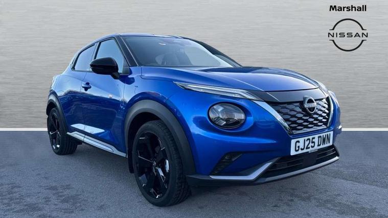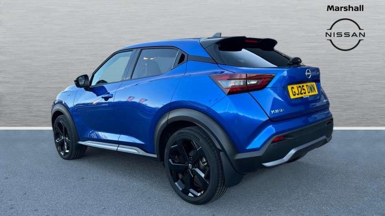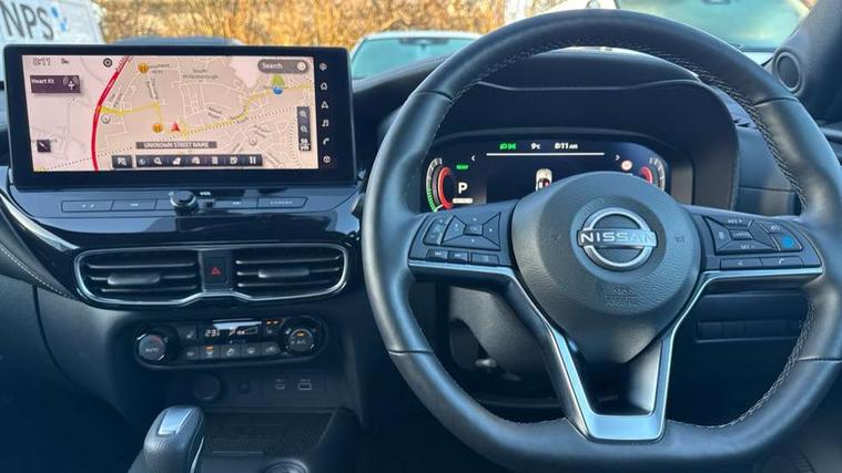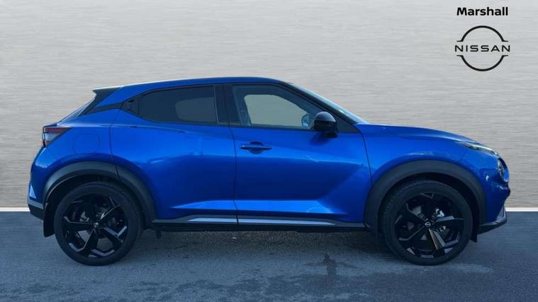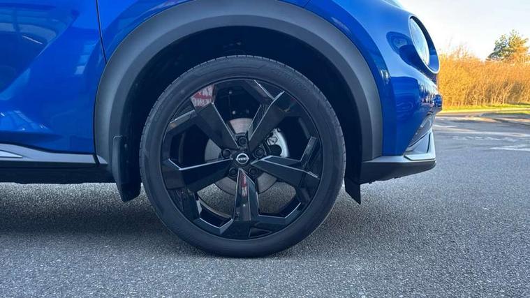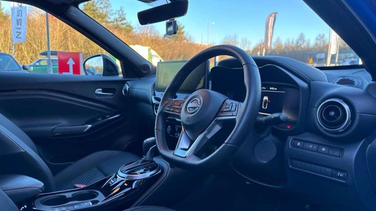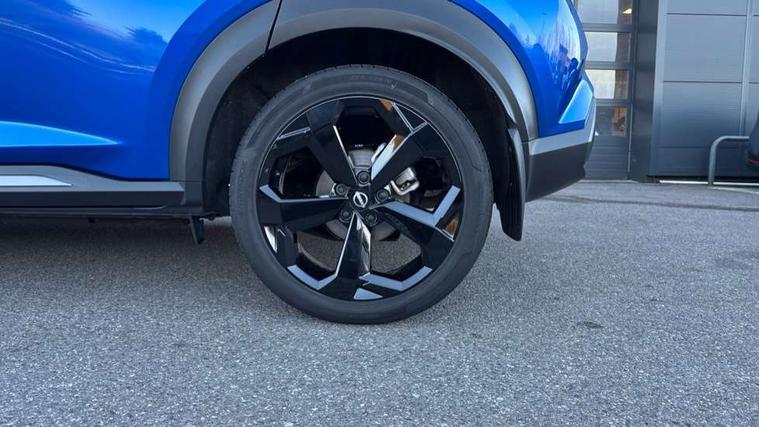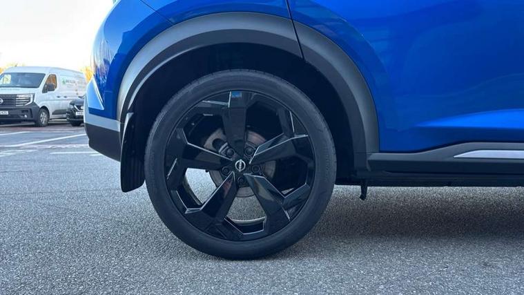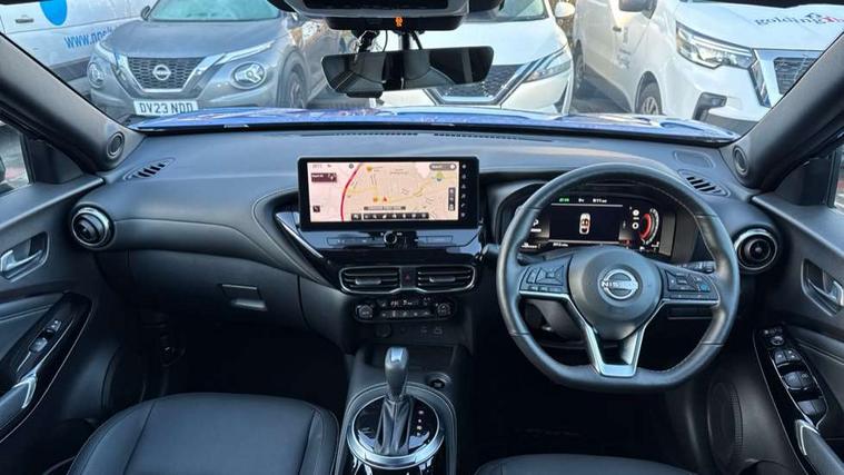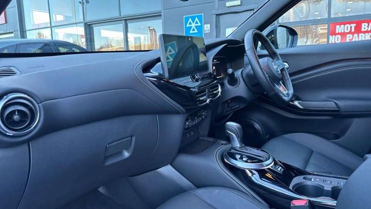 12.3" full colour TFT screen combimeter, Drive modes select (Eco, normal and sport), e-Pedal step, Emergency and breakdown call, EV mode switch, Front parking sensor, Intelligent driver alert system, Intelligent lane intervention, Lane departure warning system, Nissan connect 12.3" touch screen entertainment system, Nissan connect nav with TomTom traffic, Nissan connect services, Outside temperature sensor, Power Steering, Rear parking sensor, Stop/start button, Traffic sign recognition, Trip computer, Voice recognition, WiFi connectivity, Wireless Apple CarPlay and Google Android auto, Wireless Smartphone charger, 10 Bose speakers 8 speakers and 2 headrest speakers for driver/passenger seats, 2 X Rear console USB port, Bluetooth system, USB, Aux-in and 12V socket, Bose personal plus audio system, DAB Digital radio, Auto dimming frameless rear view mirror, Automatic hazard signal with emergency stop signal, Body colour door handles, Electrically adjustable door mirrors with integrated indicators, Follow me home headlights, Front and rear electric window with one touch driver window, High beam assist, LED 3rd brake light, LED daytime running lights, LED front fog lights, LED headlamps, LED rear fog lamp, LED rear lamps, One touch passenger window, Rear privacy glass, Rear side wing doors, Rear wiper, Roof spoiler, Shark fin roof antenna in solid Black, Solid black door mirrors, Three blink turn signal, 3 height adjustable rear headrests, 3 seat bench in 2nd row, 60/40 split folding rear seat, Card holder on driver sunvisor, Door ambient lighting, Driver seat back pocket, Driver side rear coat hanger, Driver/passenger sunvisors and vanity mirrors, Front and rear cabin lights, Front armrest, Front door pockets with bottle holders, Front head restraints, Front/rear passenger grab handles, Gear console ambient circle lighting, Height adjustable driver's seat, Internal chrome door handles, Luggage board, Luggage space lighting, Monoform sporty seats, Multifunction steering wheel, Passenger seat back pocket, Rear door bottle holders, Single front passenger seat, Smooth synthetic leather steering wheel, Synthetic leather kneepad, Synthetic leather shift knob, Synthetic leather upholstery, Telescopic steering wheel adjustment, Two cupholders in front centre console, Two rear isofix child seat anchorage points with top tether, Welcome light and console tray ambient lighting, Comfort pack - Juke, Heat pack with height adjustable passenger seats - Juke, ProPilot pack - Juke Auto, ABS with EBD and brake assist, Active ride control, Active Trace Control, Driver and passenger airbags, Driver and passenger side airbags, Electric handbrake with auto hold function, Electronic Stability Programme (ESP), Front and rear curtain airbags, Height adjustable seatbelts, Hill start assist, Intelligent emergency braking with pedestrian and cyclist recognition, Rear door child safety locks, Seatbelt reminder for driver/front passenger and rear seats, Three 3 point rear seatbelts, Traction control, Tyre pressure monitoring system, VDC Dynamic Vehicle Control, Alarm, Immobiliser, Intelligent key and start push button with walk away lock and approach unlock functions, Remote central locking, 19" Alloy wheels, Tyre puncture repair kit,