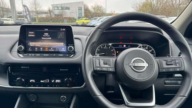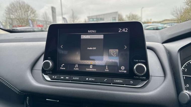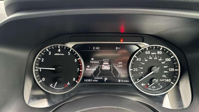 7" High definition full colour TFT screen combimeter, Android auto/Apple CarPlay (Wired), Blind spot warning, Drive modes (sport, normal, eco), Electric speed sensitive power steering, Emergency and breakdown call, Idle stop/start system, Intelligent Cruise control (ICC), Intelligent driver alert system, Intelligent forward collision warning, Intelligent lane intervention, Lane departure prevention, Lane departure warning system, Maximum speed limiter, Nissan connect 8" touchscreen infotainment system, Push button starter, Rear cross traffic alert, Rear parking sensors, Rear view camera, Traffic sign recognition with legal speed adjustment, Trip computer, 6 speakers, AM/FM audio system with DAB, Bluetooth audio streaming, Front USB connections (Type-A and Type-C), Auto dimming rear view mirror, Auto rear wiper when reversing, Automatic hazard signal with emergency stop signal, Body colour mirror caps, Body coloured door handles, Bodyside mouldings, Chrome side window finisher, Door handle with button, Electric auto folding door mirrors, Electrically adjustable and heated door mirrors with LED turn indicator, Follow me home headlights, High beam assist, Intelligent auto headlights, LED 3rd brake light, LED daytime running lights, LED Headlights, LED rear lights, One touch front and rear electric windows with remote opening and closing, Partially body coloured bumpers, Rear reversing light (bulb lighting), Rear roof spoiler, Rear side wing doors, Shark fin antenna, Splash free rain sensing wipers, Three blink turn signal, 12v power socket in dashboard and luggage, 2x Rear coat hooks, 3 bench rear seats in 2nd row, 3 rear headrests, 4 folding assist grip, 6-way manually adjustable driver's seat, 60/40 split folding rear seat bench, Centre console storage tray, Chrome interior door handles, Cloth monoform upholstery, Driver and front passenger sunvisors with illuminated vanity mirrors, Dual zone automatic climate control with pollen filter, Electrically adjustable lumbar support for driver, Front and rear door storage, Front centre console and armrest, Front cupholders x 2, Front door with bottle holders, Glovebox with light, Hard trunk cover, Height adjustable driver's seat, Height adjustable front headrests, Height adjustable passenger seat, Luggage space lighting, Manually adjustable passenger (slide recline + lifter), Multifunction steering wheel, Passenger seat back pocket, Rear armrest with 2 cupholders, Rear door bottle holders, Single front passenger seat, Steering wheel gearshift paddles, Steering wheel switches, Sunglasses holder, Tilt/telescopic adjustable steering wheel, Two rear isofix child seat anchorage points with top tether, 3x3 point rear seatbelt pretensioners + load limiters, ABS with EBD and brake assist, Active brake limited slip, Auto hold function, Child locks on rear doors, Curtain and front side, far side airbags, Driver and passenger airbags, Driver, passenger and 2nd row rear seat belt reminder, Electronic parking brake, Front seatbelt pretensioners + load limiters, Height adjustable front seatbelts, Hill start assist, Intelligent blind spot intervention, Intelligent front emergency braking with pedestrian, cyclist recognition and junction assist, Intelligent rear automatic braking, Tyre pressure monitoring system, Vehicle dynamic control, Capless fuel filler, Engine immobiliser, Intelligent Key, Remote central door locking with deadlocking, Thatcham Cat.1 alarm, Interior instrumental panel A finisher, 17" Alloy wheels, Tyre puncture repair kit,