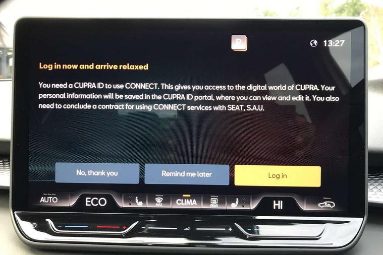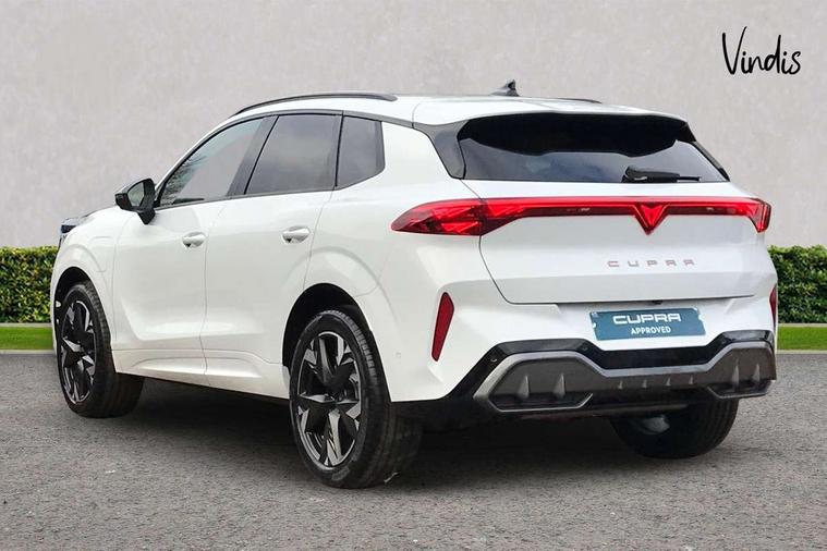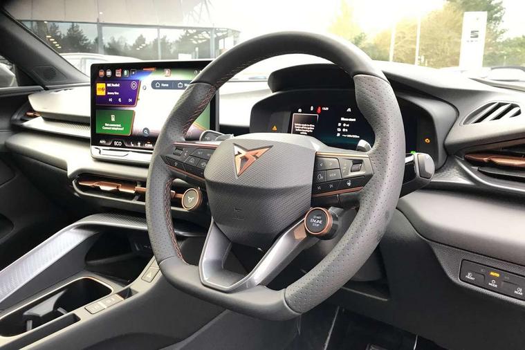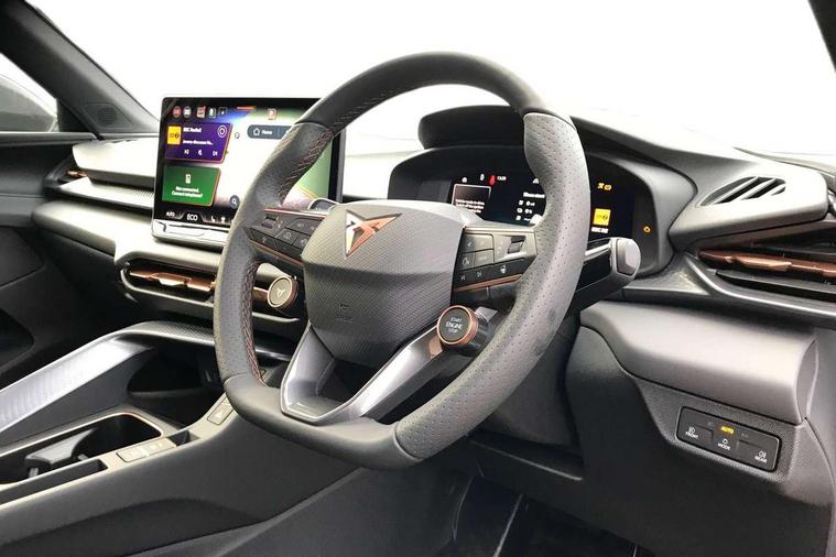 10.25" digital cockpit and configurable dashboard, Adaptive cruise control with follow-to-stop and speed limiter, Advanced driver alert system, Advanced lane assist with semi-automatic vehicle control in a medical emergency and traffic jam assist, Driving profile selection and conventional shock absorber, Dynamic road sign display, E-call, Electric tailgate with virtual pedal, Emergency steering support with turn assist, Front and rear parking sensors, Front assist (Forward collision warning with automatic braking) with multifunction camera and front cross traffic assist, Head up Display, Intelligent park assist, Media system with Nav - 12.9" touch display, voice control, full link phone (wired/wireless), DAB and Steering wheel mounted controls, Rear traffic assist, Side and exit assist, Speed sensitive power steering, Start/stop system with regenerative braking, Top view camera (front camera, rear camera, 2 side cameras), Wireless phone charger, 10 amp mode 2 charging cable, 16 amp mode 3 charging cable, CUPRA sport suspension, Auto dimming rear view mirror, Black roof rails, CUPRA 3D rear lights with ceremony & swiping indicator and illuminated logo, Dark tinted rear windows, Daytime running lights with automatic headlight control and Coming and Leaving home function, Door mirrors with memory function and lowing function on passenger mirror, Dynamic headlight range control, Electric front/rear windows, Electrically adjustable, heated and folding door mirrors, Front fog lamps with cornering function, Heat reflecting windscreen, High beam assist, LED headlamps with signature "CUPRA LED", Rain sensing wipers, Rear fog light on one side, back up light on both sides, Rear side wing doors, Rear wash/wipe, Third brake light, Welcome lights (within exterior mirror housing), 3 seat bench in 2nd row, Black roof lining, Cupra sports pedals, Dinamica cloth upholstery, Driver seat memory function, Electrically adjustable front seats including lumbar support, Four x USB Type C ports (2 in front and 2 in rear), Front and rear head restraints, Front and rear reading lights X 4, Front centre armrest, Heated front seats, Heated leather wrapped multi function sports steering wheel with tiptronic, Illuminated interior front door sills, Isofix, Operating voltage 12V, Single front passenger seat, Smart wraparound interior lighting, Sunvisors with illuminated mirror, Three zone climate control with control panel in rear, Unsplit rear seat bench, split folding backrest, with centre armrest, Variable luggage/load compartment floor, 3 point seatbelts in front with pretensioner and electric height adjustment, 3 point seatbelts on all rear seats, Brake control system - ESC and brake booster, Child proof door locks, Driver and front passenger airbags, Electronic parking brake, Front and rear disc brakes, Front interaction airbag, Front passenger airbag deactivation switch, Front side airbags with curtain airbags, Pre-crash front and rear seat belt tensioner, window closure and hazard lights, Tyre pressure monitoring system, Visual and acoustic seat belt reminder, electric contact in front and rear, Anti theft alarm, Keyless locking and starting system keyless advanced with safelock, Locking wheel bolts, Black decorative trims, Chrome interior detailing, 19" Spectrum exclusive machine alloy wheels, Breakdown kit, Tool kit,