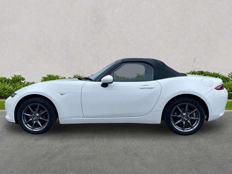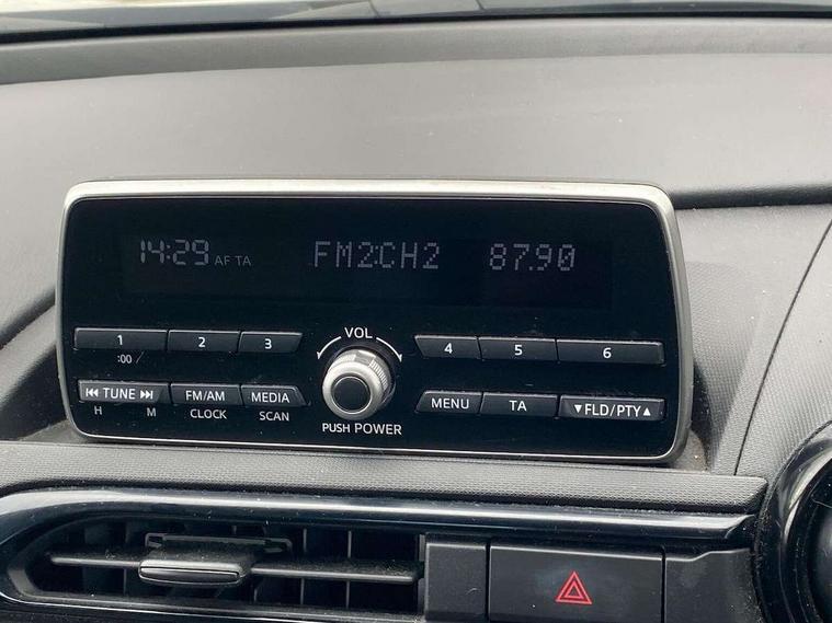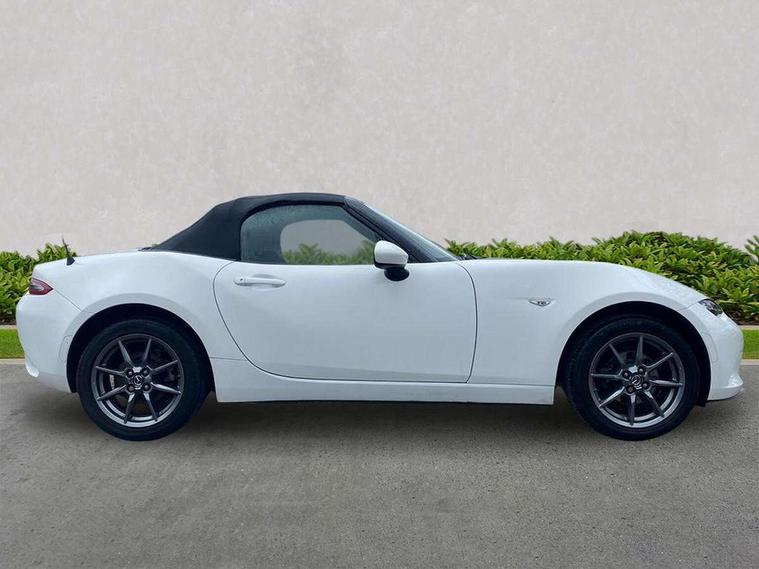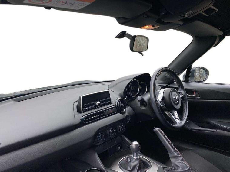Analogue speedometer, Engine start/stop button, PAS, Remote boot release, Trip computer, Water temperature gauge, I-ELOOP, i-stop, Audio system with 4 speakers, AM/FM radio and single CD/MP3, Steering wheel audio controls, USB/aux input socket, Automatic headlamp levelling, Black fashion bars, Body colour bumpers, Body coloured electric/heated door mirrors, Coming/leaving home lighting function, Dual exhaust pipes, Electric front windows/one touch facility, Front intermittent wipers, Halogen daytime running lights, High mounted rear brake light with Black cover, LED Headlights, Premium cloth soft top with integrated heated glass window and soft top cover, 12V socket, Air conditioning, Black Air conditioning dials, Black door trim, Centre console storage box, Cloth upholstery, Coin Box, Cupholders, Driver/ passenger seat manual slide, recline and tilt adjustment, Front centre armrest, Front head restraints, Gear shift indicator, ISOFIX front passenger seat child seat compliance, Leather gear knob, Leather handbrake lever, Leather steering wheel, Lockable rear storage box, Side door in Black trim, Sports seats, Tilt/telescopic steering column, Windblocker, 3 point ELR front seatbelts with pretensioners, ABS+Electronic Brake force Distribution, Deployable Hood System (DHS), DSTC-Dynamic Stability and Traction Control, Dual front airbags, Fasten seatbelt reminder, Hill hold assist, Manual passenger airbag deactivation function, Passenger airbag deactivate switch, Side airbags, Tyre pressure monitor, Remote central door locking, Remote keyless entry, Superlocking, Thatcham category 1 alarm + immobiliser, Black air vent surround, Black dash trim, Chrome meter rings, 16" alloy wheels, Tyre puncture repair kit,