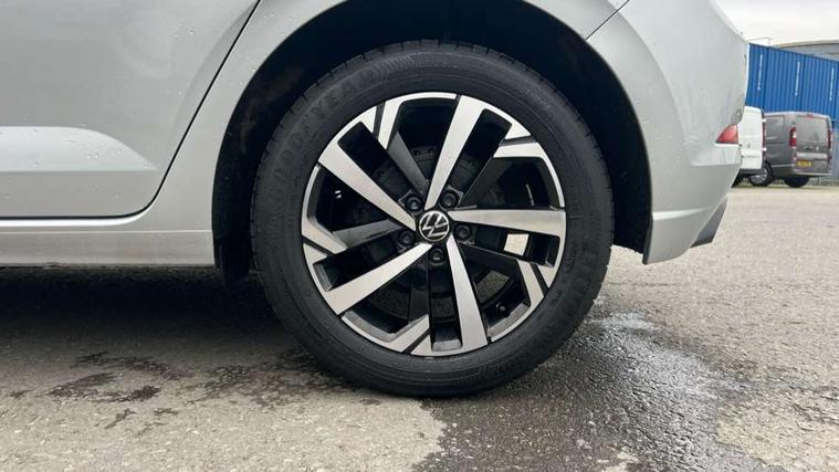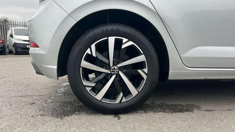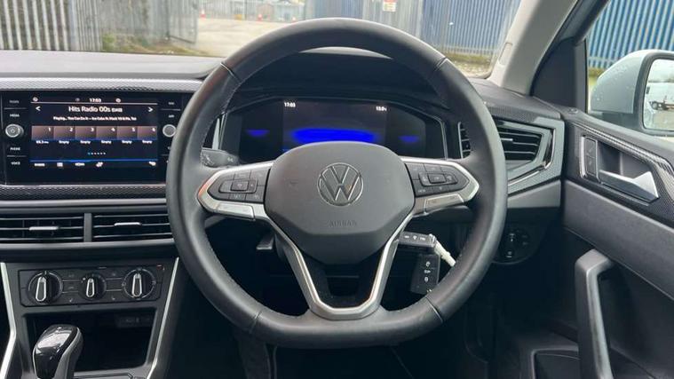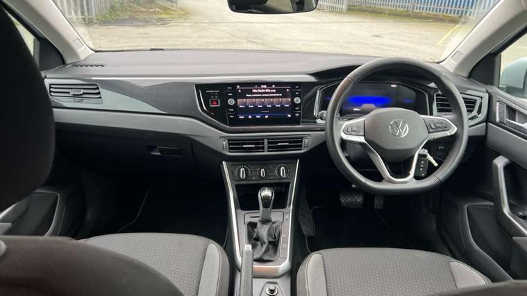 Advanced driver attention and drowsiness monitor, Bluetooth mobile phone interface, Dynamic road sign display, Emergency call service, Multifunction front facing camera for distance control, Park distance control, Power assisted speed sensitive steering, Predictive adaptive cruise control without follow-to-stop and speed limiter, Preparation for navigation system with media and internet package, Preparation for We connect and We connect plus, Rear view camera, Speedo and rev counter, electronic odometer, trip, service interval display and exterior temperature gauge, Standard rear axle, Travel Assist - Lane keeping system and traffic jam assist, Travel assist including emergency assist, Trip computer, Warning signal and warning light for front and rear seatbelts not fastened, Washer fluid level indicator, Wireless app connect, Front wheel drive, Rear shock absorpion, Start-stop system with battery regeneration (recuperation - energy recovery during braking), DAB Digital radio, Diversity antenna for FM reception, Front and rear 6 speakers, Automatic dimming interior rear view mirror, Automatic headlight control with LED separate daytime running lights with coming/leaving home function, Body colour bumpers with chrome inserts, Body colour door handles, Body colour door mirrors, Electric front windows, Engine badge deletion, Headlight range adjustment, Heat insulating and laminated safety glass windshield, LED Headlights, LED rear combination lamps, Power folding adjustable/heated exterior mirrors and front passenger exterior mirror lowering function, Rain sensor, Rear electric windows, Rear fog light, Rear side wing doors, Rear tinted glass from B-pillar backwards approx 65% tinted, Rear windscreen washer and wiper with interval delay, Third brake light, 12V power socket in centre console, 2 front and 2 rear reading lights with switch off delay and dimmer, 2 USB-C ports in the front, 2 USB-C charging sockets on the center console in the rear, 3 rear head restraints, 60/40 split folding rear seat and rear seat bench not split, Ceramique roof lining, Chrome plated radiator grille inserts, air vent surrounds and light switch surrounds, Door and side trim panel, Driver and front passenger seat height adjustment, Driver/passenger sunvisors with illuminated vanity mirrors, Front centre armrest, Front seat backrest storage pockets, Front standard seats, Handbrake lever handle in leather, Hartley/Thomas cloth upholstery, Headliner in recycled material, Isofix child seat preparation easy-fit (for two outer rear seats, and front passenger seat) compatible with I-size, Leather trimmed gear knob, Luggage compartment cover, Luggage compartment lighting, Removable luggage compartment floor, Single front passenger seat, Standard climatic zones, Standard pedal cluster, Three spoke leather wrapped multifunction steering wheel with shifting paddles, Light and vision pack - Polo, 3 point height adj front seatbelts + pretensioners, 3 point seat belt for centre rear seat, 3 point seatbelts, outer rear with ECE lable, ABS, Driver and front passenger airbag with front passenger airbag deactivation, Drivers and front passengers safety optimised head restraints, ESC (Electronic stability control) + EDL (Electronic Differntial lock) and ASR (Traction control), Extended and predictive pedestrian/ cyclist protection, Front assist with autonomous emergency braking (for Adaptive Cruise Control ACC up to 130 mph), Front curtain and side airbags with center airbag, Front disc brakes, Hill hold control, Manual child lock in rear doors, Rear drum brakes, Single tone horn, Tyre pressure loss indicator, Alarm with interior protection, Anti-theft alarm system with interior monitoring, backup horn, and towing protection, Anti-theft wheel bolts, Electronic engine immobiliser, Lava stone black gloss/matt decorative inserts in dash and front door panels, 16" Torsby alloy wheels, Low rolling resistance tyres,