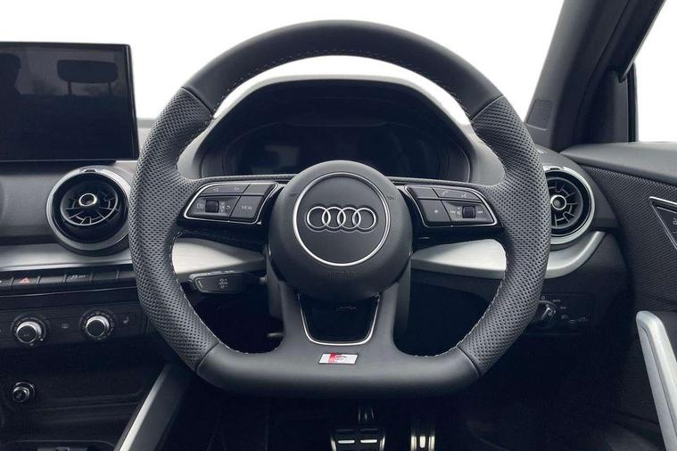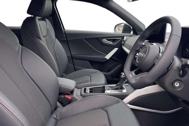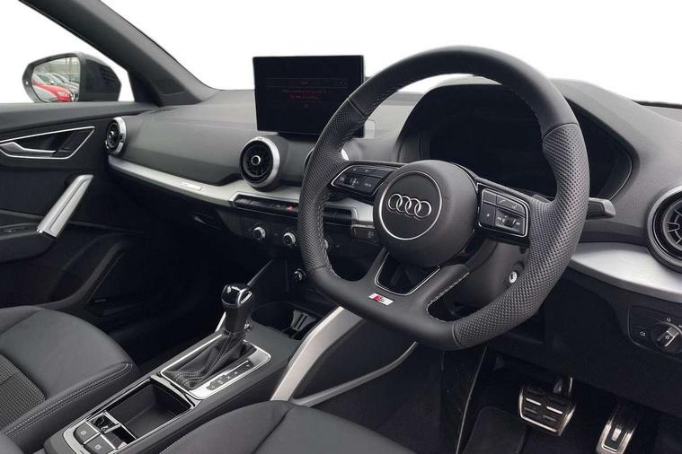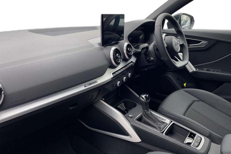 3D map display, Audi connect navigation and infotainment includes innovative services, Audi connect remote and control connects your vehicle to your smartphone, Audi drive select: S tronic - power steering assistance + engine + gearshift (modes: comfort, auto, dynamic, efficiency, individual), Audi smartphone interface - Apple carplay/Android Auto, USB connect, 2xSDXC card readers, voice control for navi, telephone, music and 3rd party apps, Audi virtual cockpit, Automatic start/stop system with recuperation, Bluetooth interface includes bluetooth audio streaming, Camera based traffic sign recognition, Cruise control, Distraction and Fatigue warning, E-call, Jukebox hard drive memory for music (10GB), Lane departure warning, MMI navigation plus with 8.8" touchscreen, Natural voice recognition, Power operated tailgate, Progressive steering, Rear parking sensors, Sport suspension, 6 passive loudspeakers, DAB Digital radio, USB type C port, Audi beam, Auto dimming rear view mirror, Black window trims, Bumper in full body colour paint finish, Electrically adjustable, folding, auto dimming and heated door mirrors with integrated LED side indicators, Front windscreen with grey tinted sunband, LED daytime running lights, LED headlights with dipped beam, high beam, position lights, indicators, LED rear lights, LED third brake light, Privacy glass - dark tinted rear and rear side windows from B-pillar backwards, Rear side wing doors, Rear wiper, Variable front intermittent wipers, Wheel arch trims in manhattan grey, 12V socket in front, 3 seat bench in 2nd row, 3 spoke flat bottomed multi-function leather sport steering wheel with gear shift paddles with S logo, 4-way electric lumbar support for front seats including manual seat height adjustment for both front seats, 60/40 split folding rear seat bench, Black carpets, Black cloth headlining, Front and rear head restraints, Front centre armrest, Front sport seats, Front/rear floor mats, Height/reach adjust steering wheel, Illuminated door sill trims with S logo, ISOFIX child seat mounting in front passenger and rear outer seats, Manual air conditioning, Single front passenger seat, Stainless steel pedals, Black styling pack - Q2, 3x3 point rear seatbelts, 6 airbags - Front, curtain and front side airbags, Electromechanical parking brake, Electronic stabilisation control including ABS, ASR and EDL, Front passenger airbag deactivation, Hill hold assist, Pre-sense front with pedestrian recognition, Seatbelt monitoring, Tyre pressure warning light with visual and acoustic warning, Warning triangle and first aid kit, Anti theft wheel bolts, Electronically operated child locks, Remote central door locking, Thatcham category 1 alarm, Aluminium interior element, Black dashboard, Gloss black centre console, Matt brushed aluminium trim inlays, Tool kit,