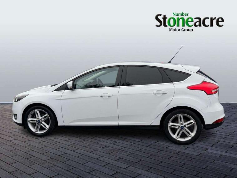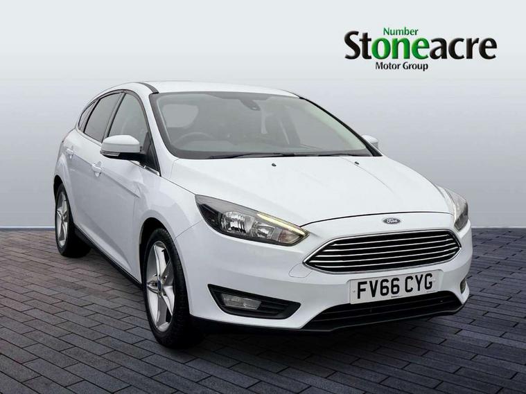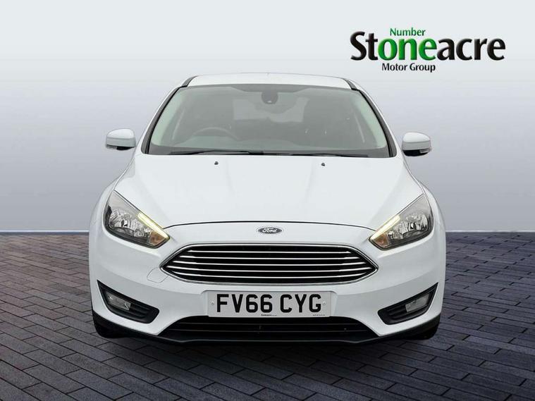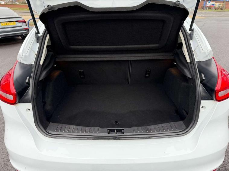 Digital clock, Easy fuel capless refuelling system, Eco mode, Electric boot release, PAS, TFT cluster screen, Trip computer, Aux input, Steering column with mounted audio controls, SYNC 2 DAB radio/CD, 8" colour touch screen, emergency assistance, Bluetooth connection, advanced voice control, USB connection, 'Quickclear' heated windscreen/heated washer jets, Body colour bumpers, Body colour door handles, Body colour door mirrors, Body colour rear spoiler, Chrome finish on upper door line, Chrome radiator grille and surround, Electric adjustable heated door mirrors, Front fog lights, Front variable intermittent wipers with electric wash, Heated rear window, Tailgate wash/wipe, 3 spoke leather steering wheel, 60/40 split back and cushion rear seats with 2 height adjustable headrests, Air conditioning - CFC-free, Centre console storage box/armrest, Cloth upholstery, Driver's seat manual height adjust, Driver's seat with adjustable lumbar support, Front floor mats, Height adjustable front headrests, Isofix child seat preparation, Reach + rake adjustable steering column, Sports style front seats, ABS+Electronic Brake force Distribution, Driver airbag, ESP with traction control + emergency brake assist, Front inertia reel height adjustable seatbelts with pre-tensioners, Front passenger airbag, Front side airbags, Hill start assist, Side curtain airbags, Three rear inertia reel lap/diagonal seatbelts, Torque vectoring brake, Tyre pressure monitoring system, Immobiliser-Passive Anti-Theft System (PATS), MyKey system, Remote central double locking, Thatcham Cat.1 alarm,