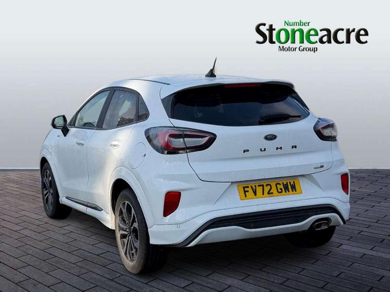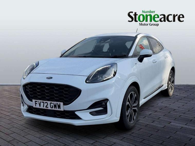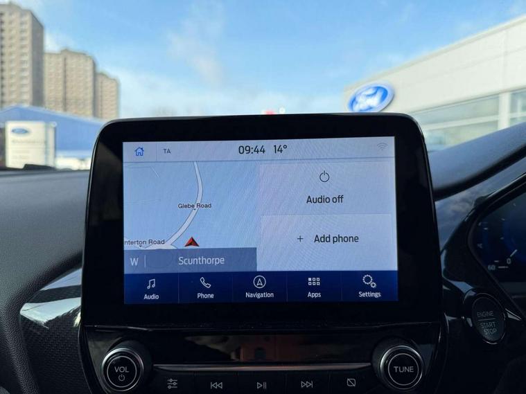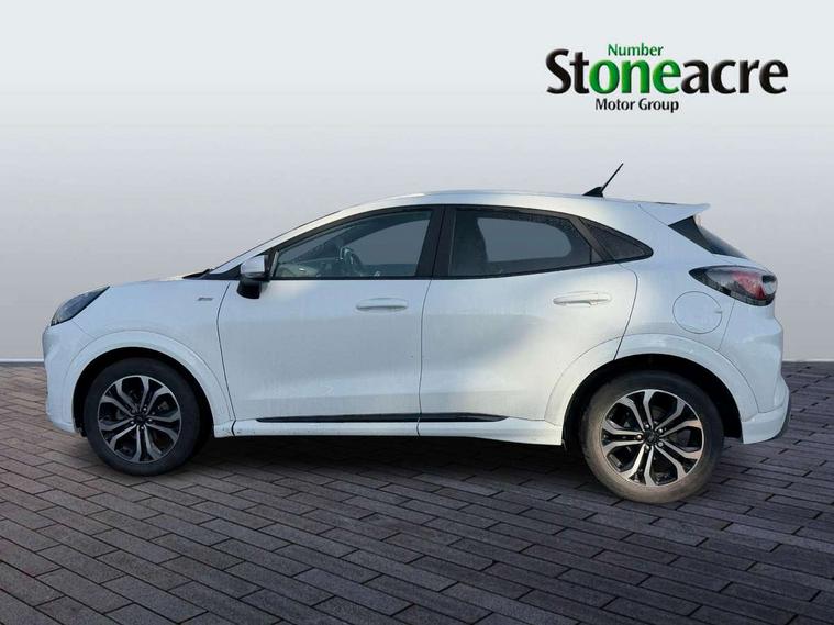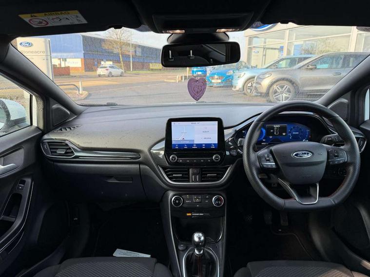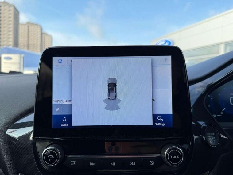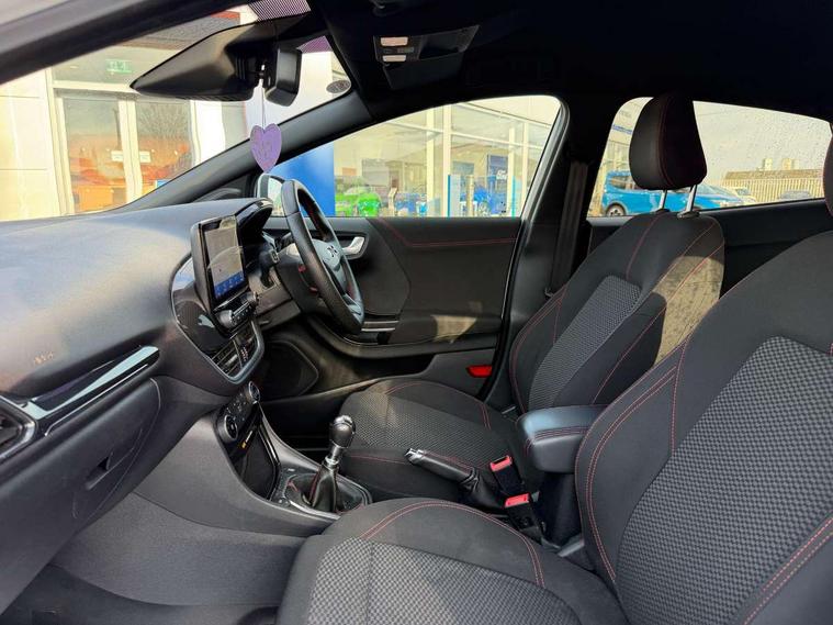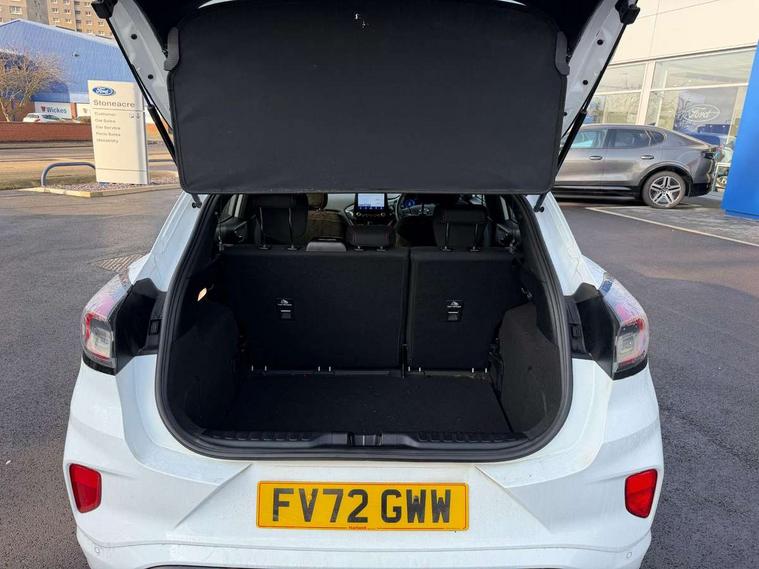 Driver impairment monitor, Emergency call service, Ford easy fuel, Full digital 12.3" instrument cluster, Lane keeping aid with lane departure warning, Power assist steering, Power start button, Rear parking sensor, Selectable drive modes(Normal, Eco, Sport, Slippery and Trail), Speed sign recognition, Sport suspension, Automatic headlights with auto high beam, Automatic rain sensing wipers, LED rear lamps, Power foldable heated door mirrors with puddle lamps, Projector headlamps with LED day time running lights and front fog lamps, Quickclear heated windscreen, Rear side wing doors, Rear wiper, ST-Line body styling kit with unique grille and large body colour rear spoiler, Third brake light, 3 seat bench in 2nd row, Centre console with armrest and stowage, Ford megabox extended bootspace, Front and rear head restraints, Front floor mats, Manual 2 way passenger seat adjustment, Manual 4 way driver seat adjust with lumbar adjustment, Single front passenger seat, ST- Line cloth trim with red stitching, ST-Line flat bottomed sensico leather steering wheel with leather handbrake and aluminium gear knob, Ford SYNC 3 navigation pack - Puma, 3 rear seatbelts, Child safety lock, Electronic stability control (ESC) and hill start assist, Pedestrian/cyclist detection & post-collision braking, Pre collision assist system, Tyre pressure monitoring system (TPMS), Thatcham alarm,