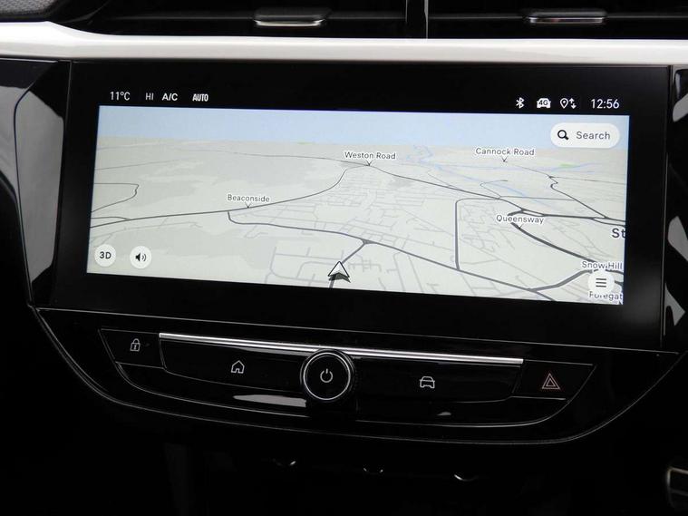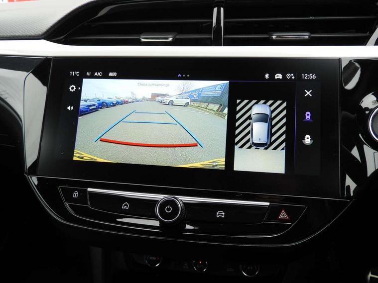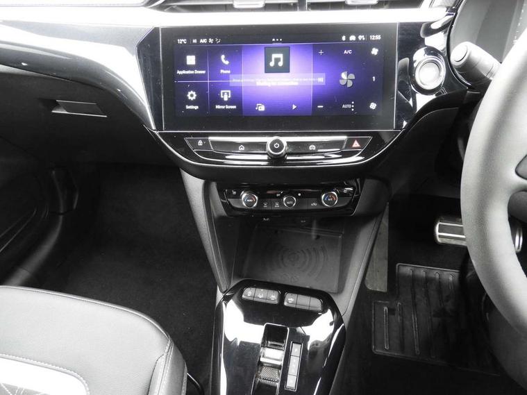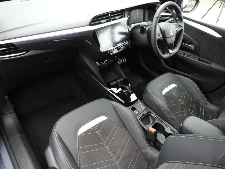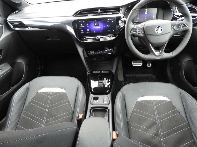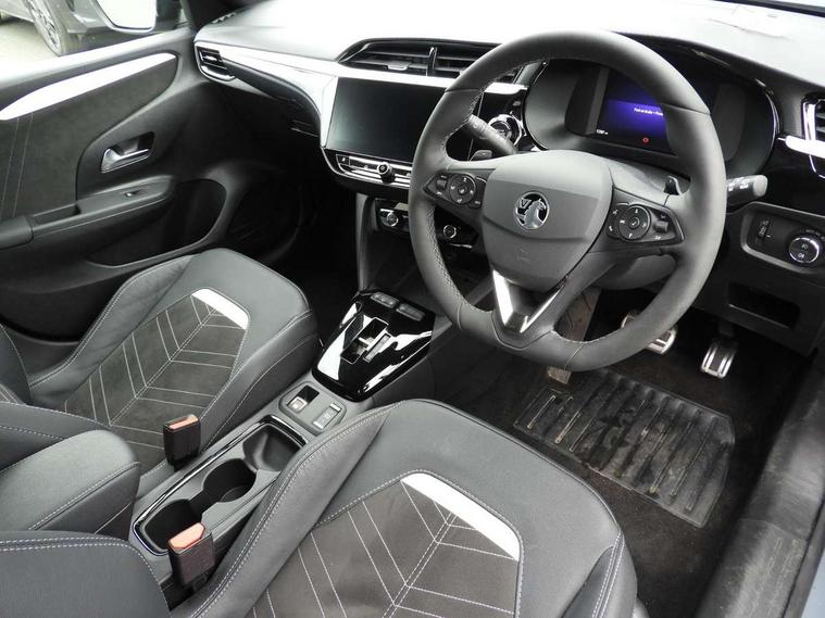 180 degree panoramic rear view camera, 2D/3D street level mapping, 7 inch digital instrument cluster display, Adaptive cruise control with intelligent speed limiter, Auto tele unit 3S vehicle communication system, Breakdown call (b-call), Central facia display with digital clock, outside air temperature and audio information, Drive modes (sport, normal, eco), Driver drowsiness alert system, E-call, Engine oil life indicator, Enhanced traffic sign recognition, European coverage, Extended speed sign recognition, Front and rear parking sensors, Front camera system, Instrumentation - Speedometer, rev counter, low fuel gauge warning light + water temperature gauge warning light, Lane departure warning, Lane keep assist, Lane positioning assist, Lights on audible warning, Live nav plus-Tom Tom, Real time traffic, parking prices, weather forecast, fuel prices, search for changing station, road safety alerts and speedcam alerts, MAP OTA updates, Multi function trip computer, POI (search), Pre conditioning of vehicle temperature, RDS with traffic programme, Remote check of battery level programming and charge management, Service indicator, Side blind spot alert, Smartphone projection, Speed sensitive power steering, Start/stop system, Vauxhall connect box, Vehicle status and information, Voice recognition, Wireless Apple CarPlay/Android Auto, Electronic returnless fuel system, Petrol Particulate Filter, Under body shield for aero, AM/FM stereo radio, Bluetooth A2DP audio streaming function (Advanced audio distribuition profile), DAB Digital radio, Multimedia Navi with 10-inch touchscreen, Rear USB port, Six speakers, Steering wheel audio, phone and cruise controls, USB type C port, 3rd brake light, Automatic headlamp levelling, Automatic headlight control system, Black door mirror housings, Black Griffin logo and vizor frame, Black lower side window mouldings, Body colour door handles, Body colour front and rear bumpers, Bonnet/headlight/wiper structure, Corsa lettering in tailgate, Dark tinted rear side windows + tailgate window, Electrically adjustable and heated door mirrors, Electrically folding door mirrors, Electrically operated front and rear windows with safety auto reverse and one touch up/down facility, Electrochromic automatic anti-dazzle rear view mirror, Glazed tailgate and heated rear window with wash/wipe facility, Hazard warning lights, Headlamps for left side traffic, High beam assist, High gloss black finish B pillar, High gloss black honeycomb lower grille with black badging, Intelli-Lux Matrix LED Headlights, LED daytime running lights, LED front fog lights, LED tail lamp, Rain sensitive windscreen wipers, Rear fog lamp, Rear reversing lights, Rear side wing doors, Rear wiper, Shark fin aerial, Solar heat absorbing windscreen and windows, Sports front and rear body styling for upper and lower bumper design, Two speed windscreen wipers with variable intermittent wipe, Windscreen and side window demist vents, 12V power sockets, 3 bench rear seats in 2nd row, 4 speed fan with illuminated controls, 6 way manual adjustable co-driver seat height up/down, reach fore/aft, backrest upright/recline, 6 way manual adjustable driver seat with massage function height up/down, reach fore/aft, backrest upright/recline, 60/40 split folding rear seat, Alloy effect sport pedals, Black headliner, Cabin particulate filter - removes dust, airborne particles and pollen, Comfort front seats, Driver's seat lumbar support, Driver/passenger sunvisors with vanity mirrors + covers, Electronic climate control (ECC), Flat bottomed steering wheel, Four adjustable facia vents, Front centre armrest with storage, Front cupholder, Front headrests, Height adjustable head restraints, Illuminated glovebox with lid, Interior courtesy light, Internal chrome door handles, LED ambient lighting, LED boot light, Polyurethane gear knob/lever, Reach and rake adjustable steering column, Rear cupholder, Rear headrests, ReNewKnit upholstery, Right hand drive (RHD), Single dome lamp with dual front reading lamps, Single front passenger seat, Standard floor mats, Two litre open door pockets, Vegan leather steering wheel, Winter pack - Corsa, 3 rear 3 point seatbelts, Anti-lock braking system (ABS), Cornering brake control, Deactivation switch for front passenger's airbag, Drag torque control, Driver and front passenger airbags, front seat side impact airbags, full size curtain airbags, EBD - Electronic brakeforce distribution, Electrical child lock system in rear door latch, Electronic parking brake, Electronic Stability Programme (ESP), Emergency brake assist, Enhanced automatic emergency braking, Forward collision alert, Front seatbelt unfastened audible warning and warning light, Front ventilated disc brakes - 381mm, Hill hold and start system, ISOFIX child seat mountings incorporating top tether anchor points located on second row rear seats, Rear disc brakes - 356mm, Seatbelt pretensioners, Single tone horn, Straight line stability control, Traction control, Tyre deflation detection system, 2 keys one folding with integral remote, Electronically protected audio equipment, Engine deadlock and immobiliser, Freewheeling door locks, Keyless entry and start, Locking wheel nuts, Remote control central locking, Remote control security alarm system, Remote locking fuel filler flap, Steering column lock, Visible vehicle identification number, Silent black fascia with blanc banquise insert, 17" Diamond-cut hi-gloss black alloy wheels,