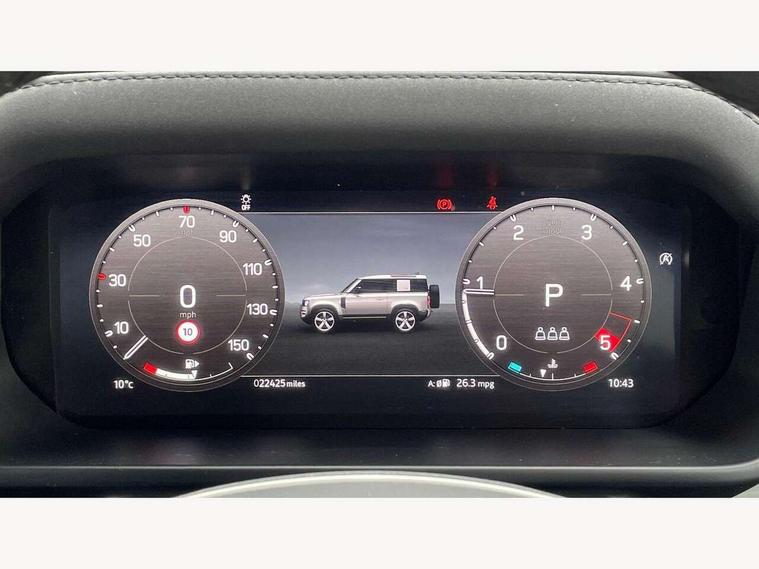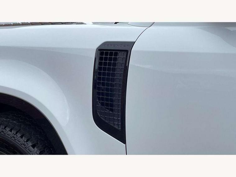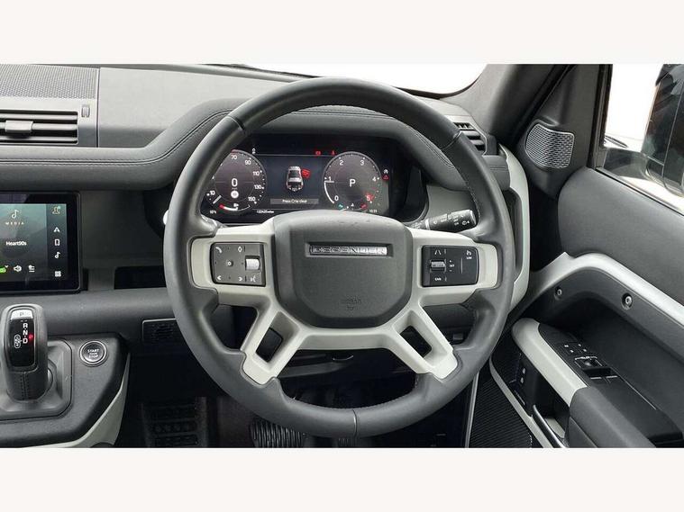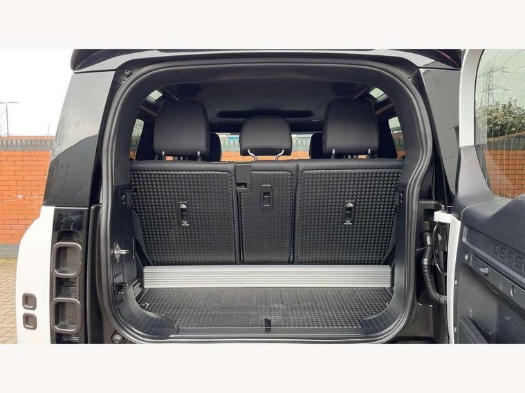 360 degree parking aid, 3D Surround Camera with 360 View, 180 Rear View, Front Traffic Detection, Forward Vehicle Guidance, Tow Hitch Assist and clear sight Ground View, Android Auto, Apple CarPlay, Assisted tailgate with soft close, Blind spot assist, Bluetooth system, Brake pad wear indicator, Clear exit monitor, Connected navigation pro, Driver condition monitor, Electric power assisted steering (EPAS), Lane keep assist, Push button start, Rear traffic monitor, Traffic sign recognition with adaptive speed limiter, Trip computer, Wade Sensing, 8 speed automatic transmission, All wheel drive system, Twin speed transfer box, DAB Radio (Digital Audio Broadcasting), Meridian 400w sound audio system with 11 speakers and subwoofer, Pivi pro connected, Automatic headlight levelling, Automatic headlights, Centre high mounted stop light, Electric heated/power fold door mirrors with approach lights and auto dimming driver side, Electric windows with one touch open/close and anti-trap, Follow me home lighting, Front fog lights, Heated rear window with timer, Heated windscreen, LED tail lights, Panoramic rear side glass, Privacy glass, Puddle lights, Rain sensing windscreen wipers, Rear fog lights, Rear wiper, Side hinged tailgate, Trailer stability assist, X-Dynamic badge, 12V power socket in loadspace, 3 seat bench in 2nd row, Alpine lights, Durable rubber cabin flooring, Durable rubber loadspace flooring, Footwell lights, Loadspace cover, Loadspace Hook, Multifunction steering wheel, Overhead stowage for sunglasses, Premium cabin lighting, Rear headrests, Rear ISOFIX, Rear reading lights, Single front passenger seat, Standard seat configuration, Storage glovebox, Sunvisors with illuminated vanity mirrors, Online pack with data plan - Defender, 5 x 3 point seatbelts, ABS, Brake hold function, Cornering brake control (CBC), Customer configurable autolock, DSC - Dynamic Stability Control, EBD - Electronic brakeforce distribution, Electric parking brake (EPB), Emergency brake assist, Emergency braking, ESP + traction control, Front airbags with passenger seat occupant detector, HDC - Hill descent control, Hill launch assist, Low traction launch, Remote for (e-Call, Optimised assistance call, InControl app, Climate, beep and flash and door), RSC - Roll stability control, Seat belt reminder, TPMS (Tyre pressure monitoring system), Alarm, Immobiliser, Intrusion sensor, Keyless entry, Locking wheel nuts,