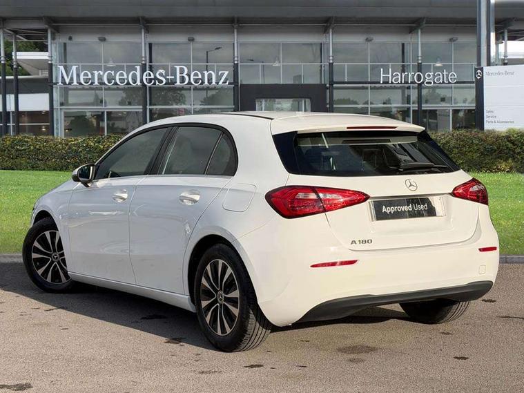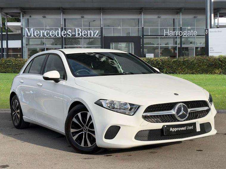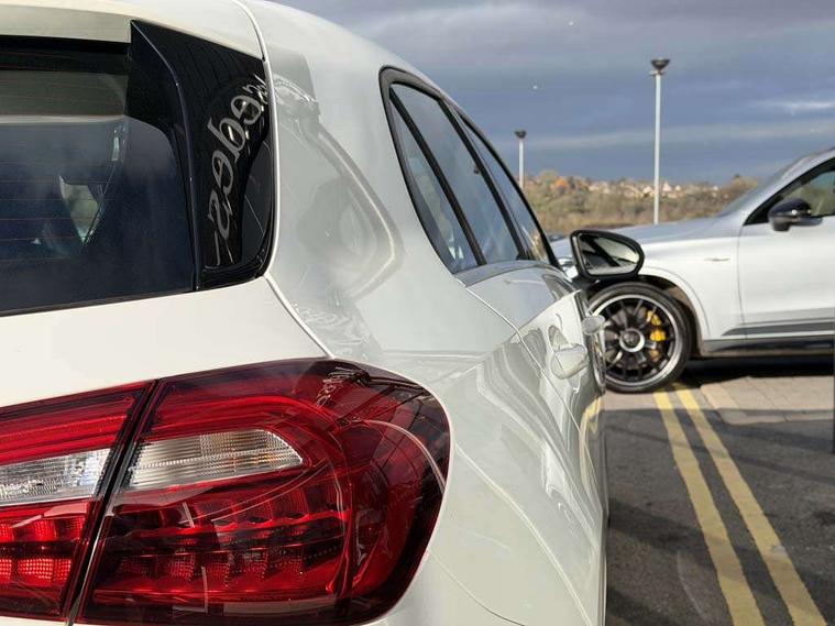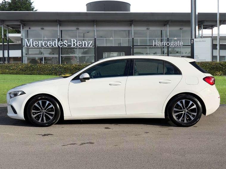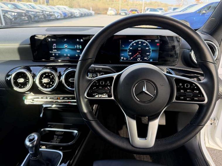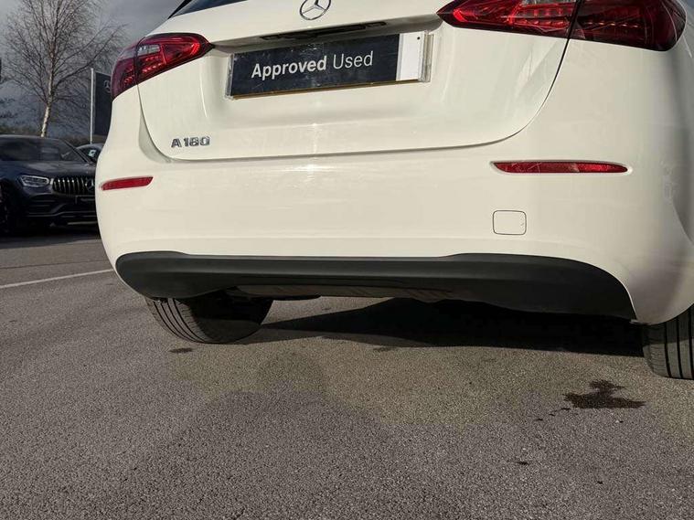 180 degree rear view camera with parking guidelines, 7" colour screen in instrument panel, 7" touchscreen media display, Attention assist, Brake pad wear indicator warning light, Car wash mode, Cruise control + speed limiter, Direct steering, Dual bluetooth interfaces, DYNAMIC SELECT with a choice of driving modes (ECO, Comfort, Sport and Individual), ECO start/stop function, Fluid level warning indicator for fuel, oil, coolant and washer fluid, Hard-disk navigation, Hey Mercedes Voice activation, Lamp failure indicator, Lane keeping system, Mercedes me connect including emergency call system, accident recovery, breakdown management and maintenance, Mercedes me remote services, Outside temperature gauge, Owners manual in English, Pre-installation for car sharing, Preinstallation for Mercedes Benz link, Service indicator (ASSYST), Speed sensitive power steering, Trip computer, Lowered comfort suspension, Rear axle torsion beam, 2 USB ports (type C) in rear stowage compartment and one in front of center console, 6 speakers, DAB Digital radio, MBUX multimedia system with DAB digital radio and touchpad including satellite navigation, Mercedes-Benz sound system - 100W, 4 Electric Front and Rear windows, Adaptive brake lights, Automatic headlights, Black weather strip, Body colour bumpers, Body colour door handles, Body colour side skirt, Body coloured door mirrors, Chrome beltline trim, Diamond radiator grille with black pins with one louvre in silver + chrome insert, Electric adjustable and heated door mirrors with integrated LED side indicators, Halogen headlamps with integrated daytime running lights, Headlamp assist automatic headlamp activation, Heated glass rear windscreen + timer control, LED High level third brake light, No visible exhaust tailpipes, Part LED tail light, Radio aerial, Rain sensing windscreen wipers with two sensitivity settings, Rear fog lights, Rear side wing doors, Rear wiper, Window line trim strip in black, 3 seat bench in 2nd row, 3 Spoke leather multi function steering wheel, 40:20:40 split folding rear seats, Artico man-made leather/Bertrix fabric upholstery, Auto Mercedes-Benz child seat recognition sensor, Black air vents with surround in silver chrome, Black roof lining, Controller on centre console with chrome surround, Front centre armrest with storage compartment, Front comfort seats with adjustable head restraints, Front door sills with Mercedes Benz lettering, Front seat backs luggage nets, Front seat cushion length adjustment, Heated front seats, Height/reach adjustable steering column, Interior mirror with reading lamps in black and frameless, ISOFIX and top tether child seat fixing points in two outer rear seats, Manual height adjustable front seats, Rear head restraints, Seat occupancy sensor for front passenger seat, Single front passenger seat, Sunvisors with illuminated vanity mirrors, Thermatic single zone climate control, Touchpad on center console, Twin front cupholders, Velour floor mats, Light and sight pack - A Class, Seat comfort pack - A Class, 3 rear 3 point seatbelts, ABS with Brake Assist, Active bonnet, Active brake assist includes forward collision warning system with autonomous braking, Adaptive brake assist with hold function and hill start assist, Black seatbelts, Childproof locks manually operated for rear doors and electrically operated for rear power windows, Crash responsive emergency lighting, Driver and passenger head and side airbags, Drivers knee airbag, Dual stage driver/passenger airbags, Electronic parking brake, ESP curve dynamic assist, ESP with ASR, Front and rear seatbelt reminder, Tyre pressure monitoring system, Warning triangle and first aid kit, Window airbags, Alarm system/interior protection/immobiliser, Keyless Go, Remote central locking and crash sensor with emergency opening function, Urban guard vehicle protection system with immobiliser and interior protection, 16" multi spoke alloy wheels painted in high gloss black with a high sheen finish, Summer tyres, Tirefit sealant kit,