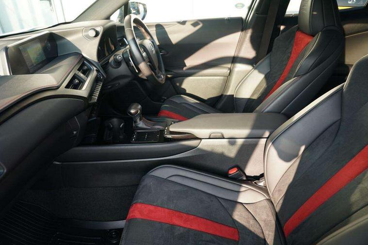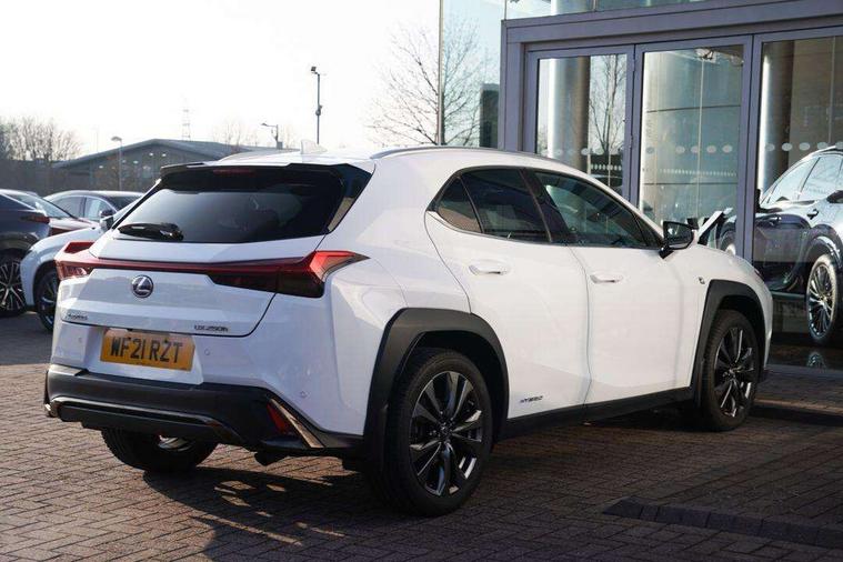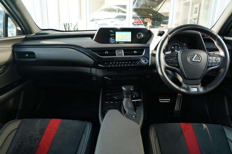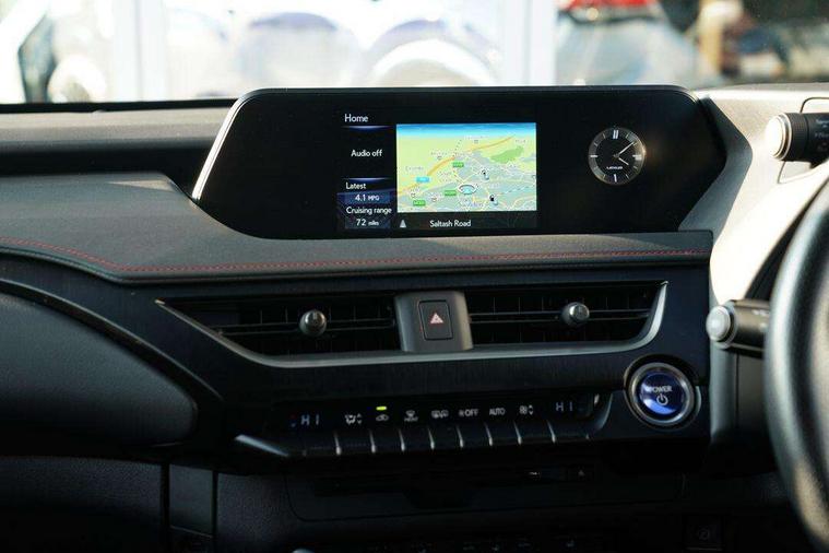 4 driving modes EV/Eco/Normal/Sport, 7" Lexus media display, 8" LFA inspired TFT meters with movable meter ring, Analogue clock with GPS function, Apple car play/Android Auto, Compatible mobile phone bluetooth with audio streaming, E-call, Electric power steering (EPS) with speed sensitive features, Lane change flasher function, Lexus link connected services, Lexus navigation system, Lexus safety systems + includes dynamic radar cruise control, pre collision system day and night, lane tracing assist, road sign assist, Parking assist sensors, 4 front and 4 rear, Push button start, Remote touch interface, Reversing camera with back guide lines, Trip computer, F Sport suspension tuning and rear performance dampers, Vehicle Dynamics Integrated Management (VDIM), Vehicle Stability Control (VSC), 2 front USB and 2 rear USB charging points, 6 speakers, AM/FM and DAB radio, AUX socket with VTR compatibility, CD player, Acoustic windscreen, Aero stabilising arch mouldings, Aero stabilising rear lights, Aero ventilated wheels, Aluminium roof rails, Auto dimming interior rear view mirror, Bi-LED (low and high beam) headlights with Auto High Beam (AHB), Black roof drip mouldings, Body adhesive, laser screw welding and laser brazed roof structure, Body coloured bumpers, Electric adjustable/heated door mirrors, F SPORT exterior styling consists of black Mesh front grille, enhanced side rockers, metallic coated front bumper and F SPORT badging, Front and rear one touch power windows, with anti-jam protection, Headlight cleaners, LED cornering headlights, LED daytime running lights, LED front and rear fog lights, LED tail lights, Privacy glass, rear doors and tailgate, Rain sensor windscreen wipers, Rear wiper, Shark fin roof aerial, Single hidden exhaust pipe, Towing preparation, 12V accessory port centre console and luggage compartment, 2 cup holders in the front and rear centre console, 2 way electrical lumbar adjustment for driver, 2 x folding shopping bag hooks in boot, 2 x sun visors with vanity mirror and lamp, 4 x tie down hooks in the boot, 5 headrests, 60/40 split folding rear seat, 8 way driver/passenger electrically adjustable front seats, Active sound control, Card holder installed in driver and passengers sun visors, Centre armrest with storage, Driver and passenger door pocket, Dual zone electronic climate control + Nano-E humidity sensor, F SPORT Aluminium front scuff plates, F Sport aluminium sports pedals, F SPORT dimpled leather gear lever, F SPORT front seat headrest adjustable forwards and backwards, F Sport interior styling, F Sport leather steering wheel with paddle shifts, Fabric/Tahara leather upholstery, Glovebox, Heated front seats, Heated steering wheel, LED interior illumination, Map pockets in the rear of passenger's front seat, Rear air vents with 2 USB chargers, Rear armrest with 2 cupholders, Storage tray under audio panel, Textile carpet mats, Tilt/reach adjustable steering column, Under deck storage, Under desk side storage, 2 x Isofix child rear seat restraints, 3x3 point rear seatbelts, Anti-lock braking system (ABS), BAS (Brake Assist System), Driver and front passenger 2 stage airbag, Driver and front passenger knee airbag, Driver/front passenger side airbags, EBD - Electronic brakeforce distribution, ECB (Electronically Controlled Brake System), Electric parking brake, Front adjustable seatbelt anchor points, Front and rear curtain shield airbags, Front outer seatbelt+pre-tensioners, force limiter+tension reduction: 3-point with active safety link to PCS, Hill start assist control (HAC), Passenger airbag cut-off device, Rear outer seatbelt+pre-tensioners, force limiter+tension reduction: 3-point with active safety link to PCS, Centre belt w/o pre tensioner+force limiter, Secondary Collision Brake (SCB), TRC (Traction Control), Tyre pressure warning, 2 x remote key fobs, Anti theft system : Alarm instruction sensor, glass breakage sensor and engine immobiliser, Locking wheel nuts, Remote central door locking, Speed sensitive auto door locking, Two motion door lock with double lock, VIN Window etching, 18" F Sport alloy wheels with run flat tyres,
