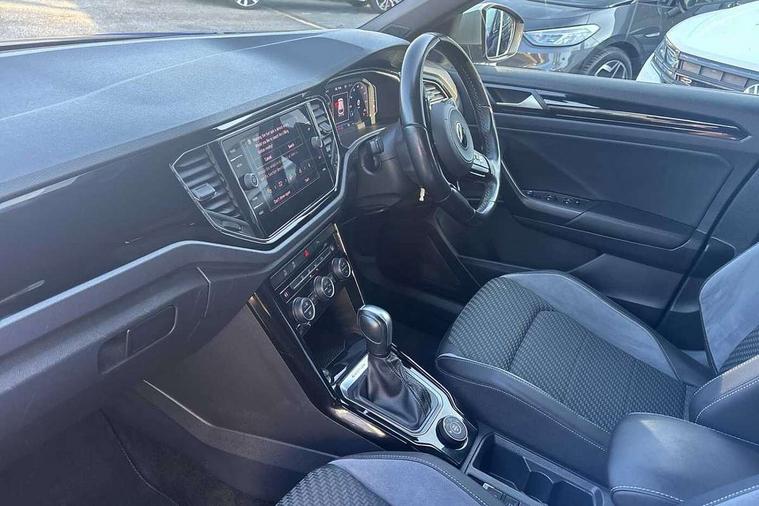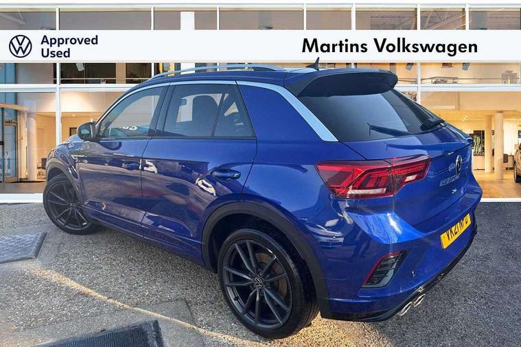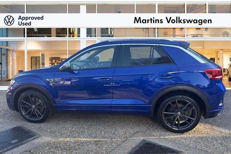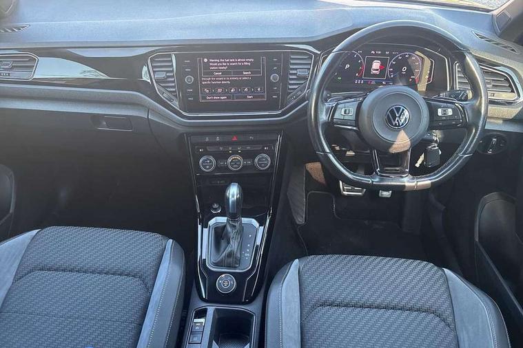'Lights On' Reminder warning buzzer, Adaptive cruise control, Bluetooth telephone and audio connection for compatible devices, Car information display, Digital Cockpit Pro - Active info display, Driver alert system with audible and visual fatigue detection system, Driver tips and journey analysis, Emergency call service, Lane assist with warning text instrument cluster, Modified key software - reduce switch off time for key status change to Long no motion, Multifunction camera, Multifunction computer with visual gear change recommendation for fuel consumption, Navigation system discover media including streaming and internet, Race mode in driving programme selection, Service interval indicator, Think blue trainer driver tips and journey analysis, Traffic sign recognition, Ultrasonic front and rear optical and audible parking sensors, Unique R instrument cluster, Warning sound and light for front seatbelts unfastened, Wireless app connect for apple carPlay, 4MOTION active control, Battery regeneration during braking, Four wheel drive, Fuel system for SI engine, ethanol fuel, Rear shock absorption, Rear stabiliser bar, Start/stop function with battery regeneration, DAB Digital radio, Disk brakes in front, with integrated backing plate, Disk brakes in rear, Diversity antenna for FM reception, Music playback - MP3, WMA and AAC files, Premium USB cable in choice of either Apple or Android smartphone compatibility, SD card slot, Simultaneous pairing of 2 compatible mobile devices, SMS functionality - read, compose and send SMS messages using touch-screen display, Storage compartment with longitudinal and height adjustable in armrest and two rear air vents, Three route options - Fast, Short, Eco, Title and cover art display, USB C Port in rear, USB-C Interface and USB charging socket, Auto dimming interior rear view mirror, Automatic coming/leaving home lighting function and daytime running lights, Automatic hazard lights activation under emergency braking, Black grained lower door protectors, Black grained wheel arches, Body colored door lower parts, Body colour door handles, Body colour rear roof spoiler, Chrome plated moldings, Chrome plated roof rails, Dusk sensor, Dynamic headlight range control with self adjusting whilst driving, Electrically foldable, adjustable and heated door mirrors with puddle lights and reverse activated kerb-view adjustment on passenger's door mirror, External USB type C socket and charging sockets, Front and rear electric windows, Front windscreen wiper with intermittent wipe and 4 position delay, Fully galvanised body, Heated rear window, Heated windscreen washer jets, High level 3rd brake light, LED darkened rear light clusters, LED headlamps with automatic range adjustment and unique signature LED separate daytime running lights, LED rear number plate lights, LED tail lamp rear comination lamps, Painted bumpers, Privacy glass, Rain sensor, Rear tinted glass from B-pillar backwards approx 65% tinted, Rear wash/wipe with intermittent wipe setting, Unique R badging, Unique R design key, Unique R door sill protectors, Volkswagen roundel, 12V socket in centre console storage area, 3 rear head restraints, 4 load lashing points in luggage compartment, Black roof lining and sun visors, Branded points of interest, Chrome plated radiator grille inserts, air vent surrounds and light switch surrounds, Climate control - 2 zone electronic air conditioning with automatic air recirculation and allergy filter, Door and side trim panel, Door and side trim panel in foam film, insert in leatherette, Drawer under drivers seat, Front + rear carpet mats, Front centre armrest, Front cupholders x 2, Front seat back storage pockets, Front seat backrest, Glovebox, Height adjustable front seats, Height/reach adjust steering wheel, Instrument lighting, white adjustable panel illumination, Interior light delay, Interior light in footwell, Isofix easy fit child seat preparation for 2 outer rear seats, Leather multi function sport steering wheel with gear change selection via paddle shift on steering wheel, LED interior light with switch off delay/dimmer and 2 front/rear LED reading lights, Load through provision with single cup holder when folded down, Luggage compartment cover, removable, Luggage compartment lighting, Scuff plates in door apertures, Split folding rear seat backrests with centre armrest, Stainless steel pedals, Storage compartment in left and right luggage area, Storage compartment in rear doors, Storage compartments in driver and front passenger doors, Sunvisors with illuminated vanity mirrors, Unique R gear lever knob, White ambient lighting, R styling pack - T-Roc, 3 rear three point seatbelts, ABS, Black brake calipers with R logo, Curtain airbags, Driver and front passenger safety-optimised head restraints, Drivers and front passengers airbags with passengers deactivation switch, Drivers seatbelt reminder, Electronic parking brake with auto hold, Electronic stability control (ESC) includes ASR, EDL, EDTC and trailer stabilisation function, Front assist with city emergency braking and pedestrian monitoring, Front seat side impact airbags, Hill descent control, Hill start assist, Predictive pedestrian protection, Rigid safety cell with front and rear crumple zones, Single tone horn, Three point height adjust front seatbelts + pretensioners, Tyre pressure loss indicator, Ventilated front and rear disc brakes, Volkswagen roadside assistance, Alarm with remote central locking and interior protection, Electronic engine immobiliser, Remote central locking with SAFELOCK, radio remote control with 2 remote control folding keys, Piano black decorative inserts in dash, centre console and door panel, 19" Pretoria alloy wheels with anti-theft wheel bolts,