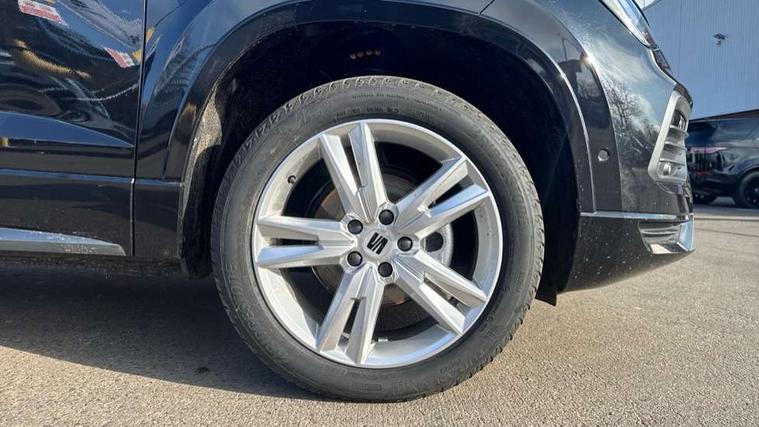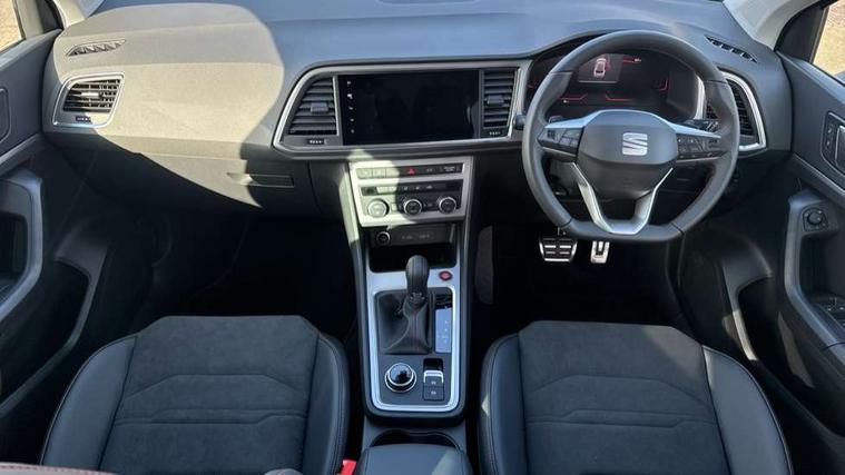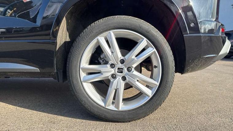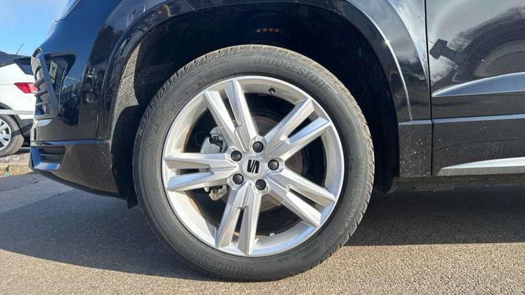 8" Digital cockpit, Bluetooth audio streaming with handsfree system, Cruise control system with speed limiter, E-call, Electric tailgate with virtual pedal, Outside temperature gauge, Progressive power assisted steering, Rear view camera, SEAT drive profile with driving experience button - Normal, Sport, Eco and Individual mode, gearshift, steering and throttle response, Self parking functionality (includes front and rear parking sensors), Start/stop system, Trip computer, wired and wireless full link smartphone integration, Wireless phone charger, Steering wheel mounted audio/phone controls, Black roof rails, Black side window trim, Body colour bumpers, Body coloured wheel arch surrounds, Chrome front grille frame, Dark tinted rear windows, Daytime running lights, Door mirrors with welcome light silhouette, Dynamic headlight range control with self adjusting whilst driving, Electric adjustable/heated/folding door mirrors, Front and rear electric windows, Illuminated aluminium front door sill, LED 3rd brake light, LED headlamps with lens and LED front fog lamps with cornering function, LED rear tail lights with dynamic indicators, Rear exhaust tailpipe, Rear fog lights, Rear side wing doors, Rear spoiler, Rear wash/wipe, Variable front intermittent wipers, 12V socket in front, 3 seat bench in 2nd row, 60/40 split folding rear seat, Aluminium pedals, Dinamica upholstery with front comfort seats, Drawer under right front seat, Dual zone climate control, Front and rear head restraints, Front centre armrest, Front seat back storage pockets, Height adjustable driver and passenger seat with lumbar adjustment, ISOFIX points in outer rear seats with top tether anchorage points, Leather sports steering wheel and gear knob, Rear armrest and easy back seat release mechanism from boot, Single front passenger seat, Steering wheel mounted gearshift paddles, Convenience pack - Ateca, Interior lighting pack - Ateca, Navigation system pack with DAB - Ateca, Safety and driving pack with attention and drowsiness assist - Ateca, 3x3 point rear seatbelts, ABS, Traction control system (TCS), Electronic stability control (ESC) and Electronic differential lock system (XDS), Airbags - Driver and front passenger airbag with deactivation, front side, two curtain and driver's knee airbags, Electric parking brake with auto hold function, Front and rear seatbelt reminder, Front assist with autonomous emergency braking, Hill hold control, Manual rear child locks, Single tone horn, Tyre pressure monitoring system, Alarm, Keyless entry, Locking wheel bolts, Remote central locking, Chrome interior detailing, 18" Brillaint silver alloy wheels, Tool kit,