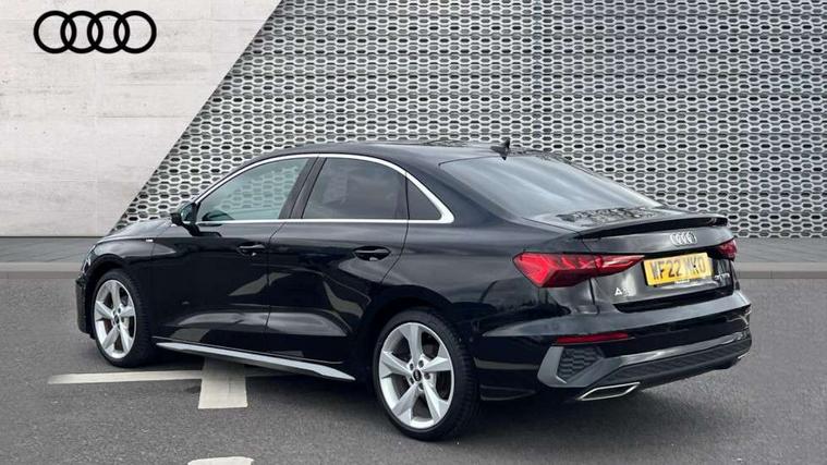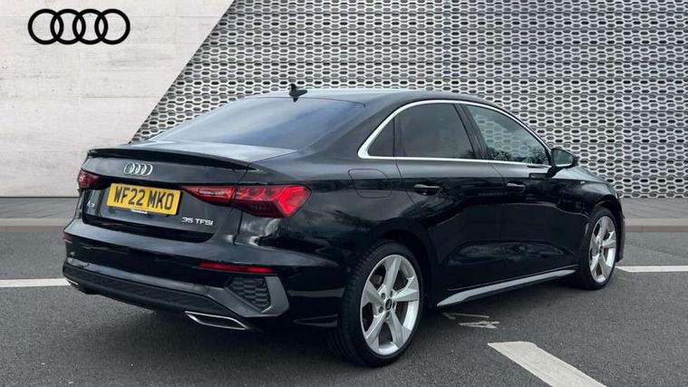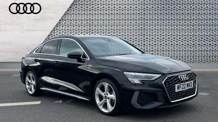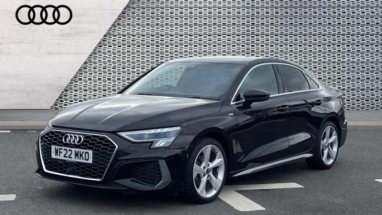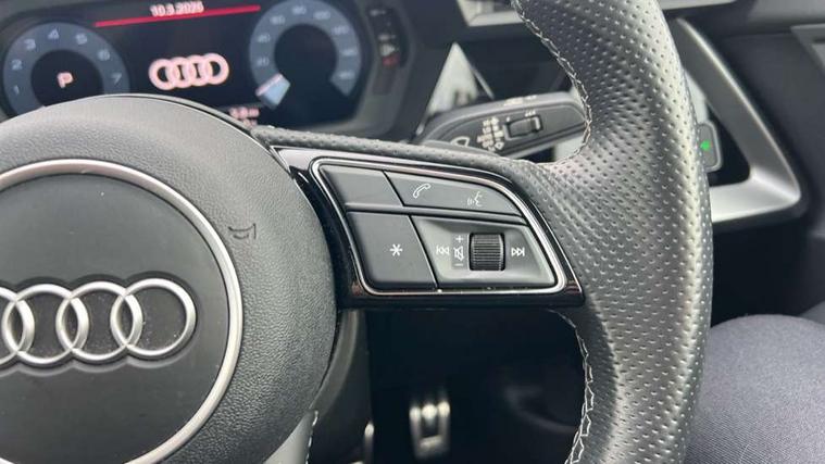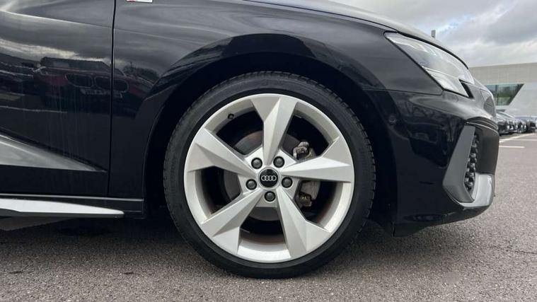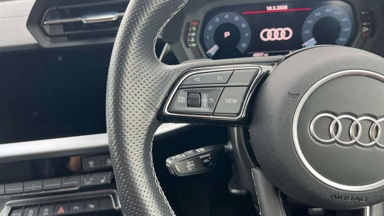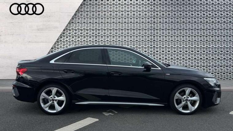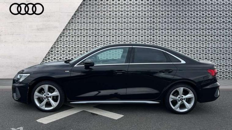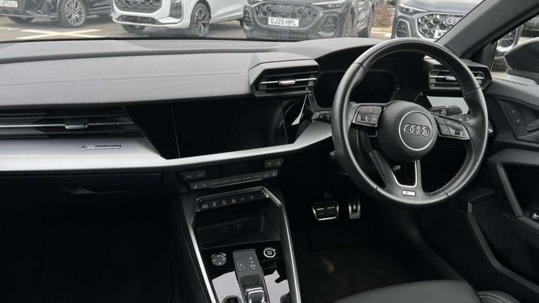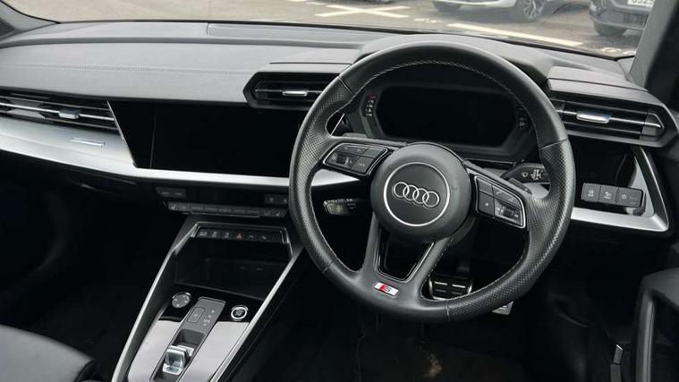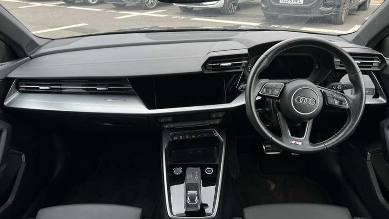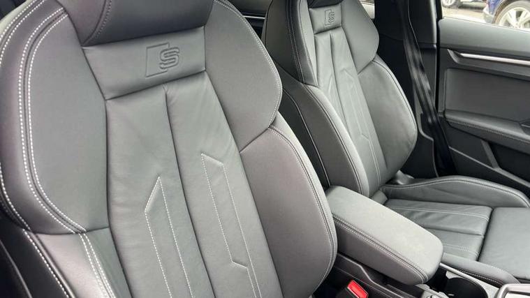 Audi connect emergency call and service, Audi drive select (Auto, Comfort, Dynamic, Efficiency and Individual), Audi smartphone interface, Audi Virtual Cockpit - 10.25" digital and colour instrument cluster, Automatic start/stop system with recuperation, Bluetooth interface, Collision avoidance assistant, Electromechanical power speed sensitive steering, Lane departure warning system, MMI Navigation Plus with high resolution 10.1" colour touch screen display, Service indicator, Voice control system with natural language interaction, 2x USB Type C ports (for charging and data transfer), 6 passive loudspeakers, CD player, DAB Digital radio, 3rd brake light, Acoustic glass windscreen, Aluminium window trim, Auto dimming frameless rear view mirror, Electrically adjustable/heated/folding/auto dimming door mirrors with integrated LED indications + kerb view function for passenger side, Front electric windows, Illuminated door sills with aluminium inserts at the front with S logo, LED daytime running lights, LED headlights with LED rear lights and dynamic rear indicators, Light and rain sensors, Model and engine designation badges at rear, Privacy glass - dark tinted rear window, rear door and side windows, Rear electric windows, S line bumpers, S roof spoiler, 12V socket and storage compartment in front centre console, 40/20/40 split folding rear seat bench with cupholder, Black cloth headlining, Dual zone electronic climate control, Front and rear centre armrest in leather, Front and rear headrests, Front/rear floor mats, Height and reach adjustable steering wheel, Interior lighting - glove compartment light and right hand side, Luggage compartment floor covering, Manual boot compartment lid, Manually adjustable front sport seats, Seat side bolsters, Stainless steel pedals and front footrest in black, Twin leather upholstery with front sports seats S embossed logo, Aluminium interior elements pack - A3, S line styling pack - A3 Saloon, 3x3 point rear seat belts, Driver and front passenger airbag with passenger airbag deactivation, Electronic Stabilisation Control (ESC) including ABS, ASR and EDL, First aid kit with warning triangle and 2 safety vests, Front side airbags with head airbags and interaction airbag, Hill hold assist, Pre-sense front with pedestrian and cyclist detection, Seatbelt monitoring, Tyre pressure loss indicator, Anti theft alarm, Anti-theft wheel bolts, Electronically operated child lock, Immobiliser, Remote control central locking, Aluminium air vent surrounds, Aluminium trim elements, Dark spectrum aluminium inlays, accent surfaces in the dashboard and centre console in platinum grey silk effect paint finish,