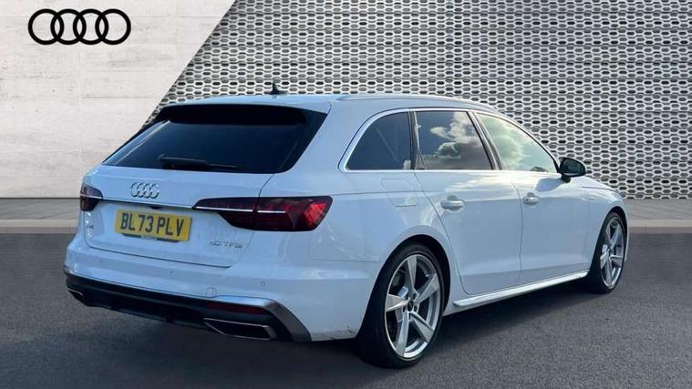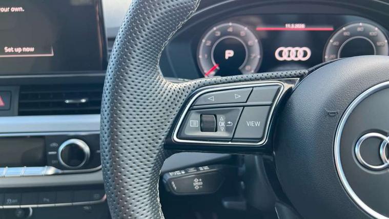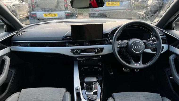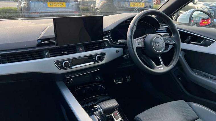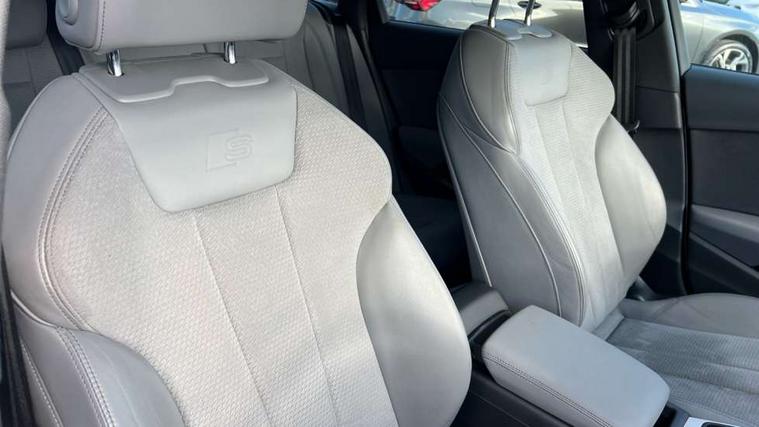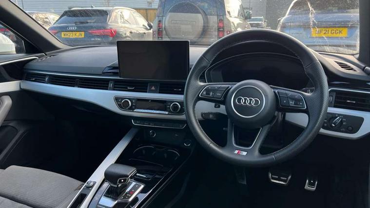 Audi connect safety and service (e-call), Audi drive select, Audi smartphone interface, Audi virtual cockpit, Automatic start-stop system with coasting functionality and efficiency programme, Bluetooth interface, Camera based traffic sign recognition, Electromechanical power steering, Email, calendar and text messages displayed via MMI, Front and rear parking sensors, Lane departure warning, MMI Navigation plus with MMI touch includes 10.1" high resolution colour MMI display, 3D map, Power operated tailgate, Rear view camera, Voice control system, 54 litre fuel tank, Sports suspension lowered by 23mm, 2 USB charging ports, 8 passive loudspeakers, DAB digital radio reception, Aluminium roof rails, Auto dimming rear view mirror, Body colour door handles, Body colour front spoiler lip, Body colour side sill trim, Body coloured door mirrors, Electric adjustable/heated/folding door mirrors with auto dimming, Grained matt black side air inlets with matt aluminium silver inlay, High beam assistant, Honeycomb structure radiator grille in grained matt black, LED headlights with LED rear lights + dynamic rear indicators + headlight adjustment and high beam, turning light + LED daytime running lights, LED third brake light, Matt aluminium silver tailpipe trim, Privacy glass, Rain and light sensors, Rear side wing doors, Rear wiper, S Line badges on the front wings, S line front and rear bumpers with side skirts, S Line rear diffuser in matt anthracite black with trim strip in matt aluminium silver, S Line roof edge spoiler, Variable intermittent front wash/wipe, Windscreen with acoustic glazing, 3 spoke high multi-function sports leather steering wheel grips in perforated leather with S badging including paddle shift, 4 way electric lumbar support for driver and front passenger, 40/20/40 split folding 3 rear seat bench in 3 parts with rear centre armrest, Black carpets, Black cloth headlining, Black perforated leather gearknob, Contrast stitching on seats, steering wheel and gear lever gaiter, Deluxe 3 zone electronic climate control, Electric load area cover, Front and rear head restraints, Front centre armrest, Heated front seats, Illuminated door sill trims with S logo, ISOFIX child seat mounting and top tether, Manual seat adjustment, Single front passenger seat, Stainless steel pedals and foot rest, High gloss package - A4, LED Interior light pack - A4/S4, 3 rear seatbelts, 6 airbags - Driver, front passenger, curtain and side windows, Attention and drowsiness assist, Electronic Stabilisation Control (ESC) including ABS, ASR and EDL, Hill hold assist, Multi collision brake assist, Pop-up bonnet for pedestrian protection, Pre sense city, Rear door child safety locks, Seatbelt monitoring, Warning triangle and first aid kit, Anti theft alarm, Anti theft wheel bolts, Central locking, Keyless Go, Matt brushed aluminium inlays, Tool kit, Tyre repair kit,