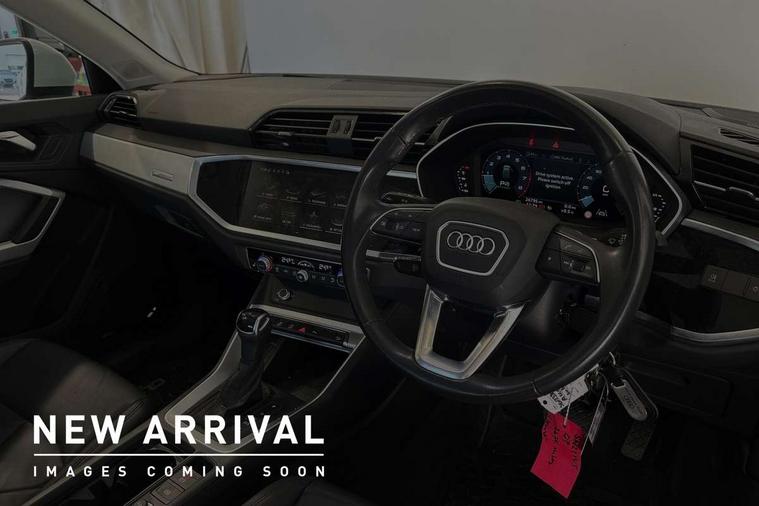 Amazon alexa Integration, Audi drive select, Audi lane departure warning, Audi Virtual Cockpit - 10.25" display, Bluetooth interface, Camera based traffic sign recognition, Legal emergency call, MMI Navigation Plus with high resolution 10.1 inch touchscreen colour display, Power operated tailgate, Progressive steering, Service interval indicator, Smartphone interface includes wireless Apple carplay/Android Auto, Start stop system with recuperation, Voice control system with natural language interaction, Standard suspension, 2 USB-C ports with charge and data functions, 6 passive loudspeakers, DAB digital radio module, Acoustic windscreen, Auto dimming frameless rear view mirror, Black roof rails, Body colour door mirrors, Diffuser in grained anthracite, Electrically folding, adjustable and heated door mirrors with integrated LED side indicators and kerb view function for passenger side, Exterior bumper with wheel arch trims and side sill trims in grained black matt, Front and rear electric windows, Grained radiator protective grille, Halogen rear lights, LED headlights with LED daytime running lights, Rain and light sensors, Rear side wing doors, Rear wiper, Third brake light, Variable front intermittent wipers, 12V socket in rear centre console, 3 seat bench in 2nd row, 3 spoke multi-function leather steering wheel, 40:20:40 folding with manual adjustment for 60:40 forwards/backwards position and backrest angle, Dual zone electronic climate control, Front and rear floor mats, Front and rear headrests, Front and rear roof module including reading lights, Front centre armrest, Glove compartment lighting, Height and reach adjustable steering wheel, ISOFIX child seat mounting for front passenger with airbag deactivation and outer rear seat including top tether attachment point for outer rear seats, Luggage compartment light, Lunar silver cloth headlining, Manual front seats with height adjustment, Single front passenger seat, Stainless steel luggage compartment sill finisher, Non smoking pack - Q3, 3x3 point rear seatbelts, 6 airbags - Driver, front passenger, curtain and side windows, Audi pre-sense front with pedestrain and cyclist recognition, Electrically operated child locks on rear doors, Electromechanical parking brake, Electronic stabilisation control including ABS, ASR and EDL, Front seatbelt reminder, Hill descent control, Hill hold assist, Pre sense basic, Seatbelt monitoring, Tyre pressure warning, Warning triangle and first aid kit, Anti theft alarm, Anti theft wheel bolts, Immobiliser, Remote central locking, Detail dashboard around MMI touch colour display in glass look, black with surround in aluminium look, Micrometallic silver inlay, 17" 5 twin spoke design alloy wheels,