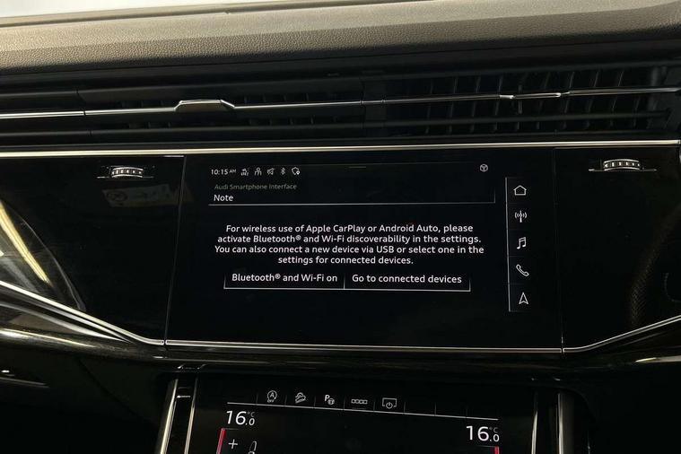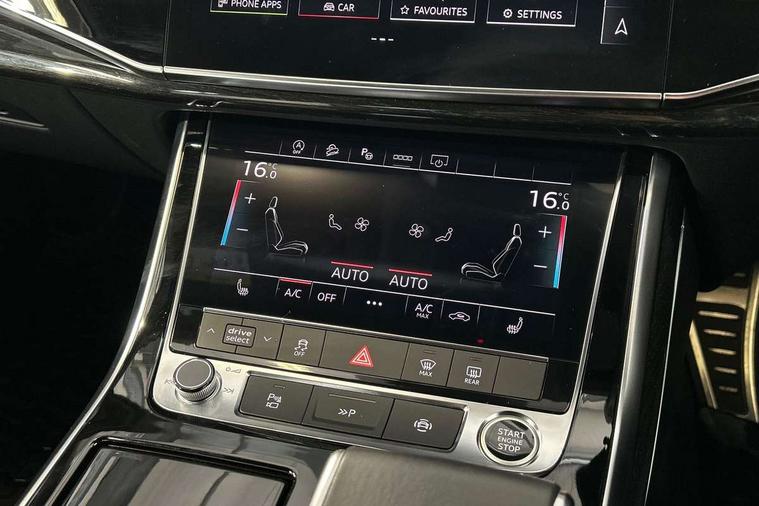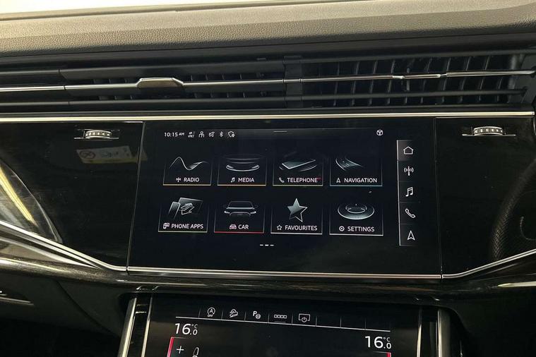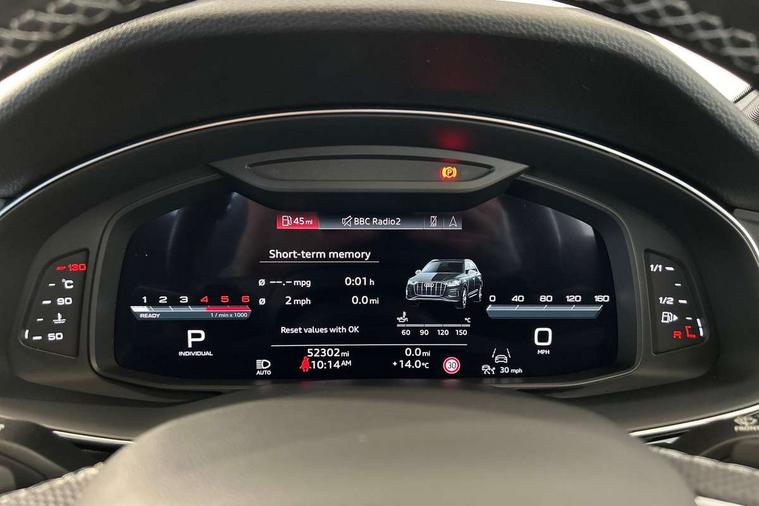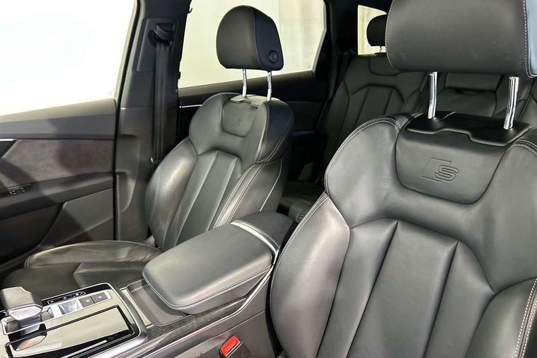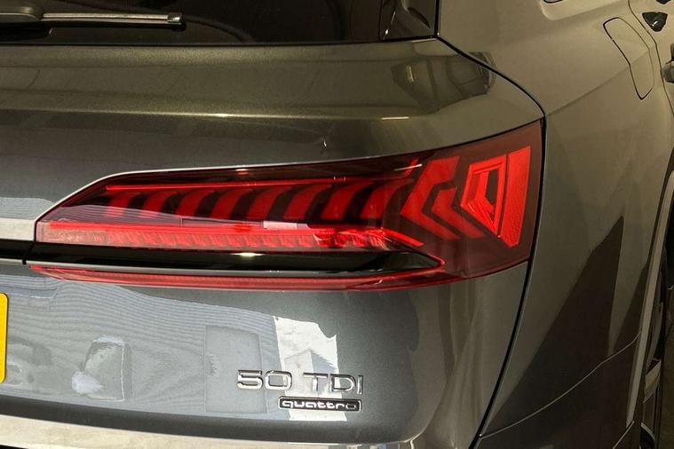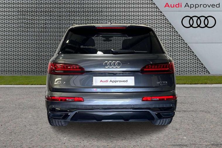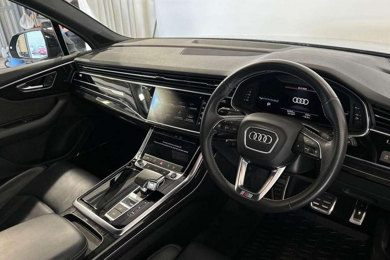Audi connect safety and service (e-call), Audi connect with Amazon Alexa Integration, Audi drive select (Auto, Comfort, Dynamic, Efficiency, Individual, Off-road and All road), Bluetooth interface, Camera based traffic sign recognition, Electromechanical steering, MMI navigation plus with MMI touch screens includes 10.1" and 8.6" screens with haptic feedback, Natural voice recognition, Parking system plus with 360 degree display (front, rear and side sensors) - acoustic and visual park assist system, Power operated tailgate, Rear view camera, Smartphone interface includes wireless Apple carplay/Android Auto, Start/stop system, 48V Mild hybrid technology, Adaptive air sports suspension, Quattro all wheel drive with self locking centre differential, Audi music interface - front 2 USB-C ports with charger and data functions, Audi sound system with 6 channel amplifier, 180 watt amplifying capacity and 10 loudspeakers including subwoofer, DAB digital radio module, 3rd brake light, Audi matrix LED headlights with dynamic front and rear indicators, Auto dimming frameless rear view mirror, Black roof rails, Bumpers in contrast paint scandium grey finish includes door trim and wheel arch trim strips, inlays in door strip contain quattro embossing, Electrically adj heated/folding + automatically dimming exterior mirrors with memory + automatic kerb side function for passenger side exterior mirror, Heat insulating glass in windshield, Integrated LED indications in door mirrors, LED daytime running lights, LED rear tail lights, Privacy glass - dark tinted rear and rear side windows from B-pillar backwards, Rear side wing doors, Rear wiper, 2 seat bench in 3rd row, 3 seat bench in 2nd row, 4 zone deluxe automatic climate control, 7 seat layout with ISOFIX points for the front passenger seat and rear passenger seat, Black cloth headlining, Comfort front centre armrest, Electric adjustable front seat with 4 way lumbar support, driver memory functionality, Folding rear seats, Front head restraints, Front/rear floor mats, Heated front seats, Illuminated door sill trims with S logo, LED interior ambient lighting, Luggage compartment cover, Luggage compartment sill protection in stainless steel, Rear head restraints, Single front passenger seat, Stainless steel pedals, Sunvisors with illuminated vanity mirrors, Titanium black styling pack - Q7/SQ7, 3 point seatbelts on all rear seats, Audi pre sense front, Child locks on rear doors, Driver and front passenger, front side and curtain airbags, Electromechanical parking brake, Electronic Stabilisation Control (ESC) including ABS, ASR and EDL, Extended pedestrian protection measures, Hill hold assist, Seatbelt monitoring, Tyre pressure loss indicator, Warning triangle and first aid kit, Anti theft alarm, Anti-theft wheel bolts and wheel loosening detection, Keyless Go, Remote central locking, Polished oak trim with grey finish inlay, Tool kit, Tyre repair kit,