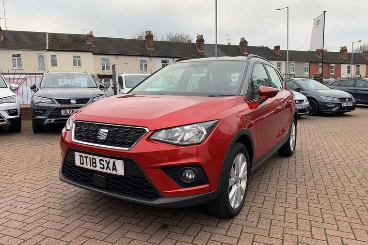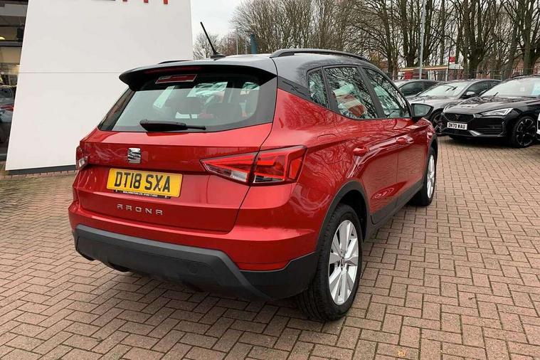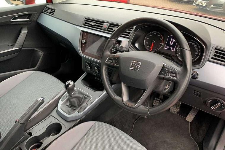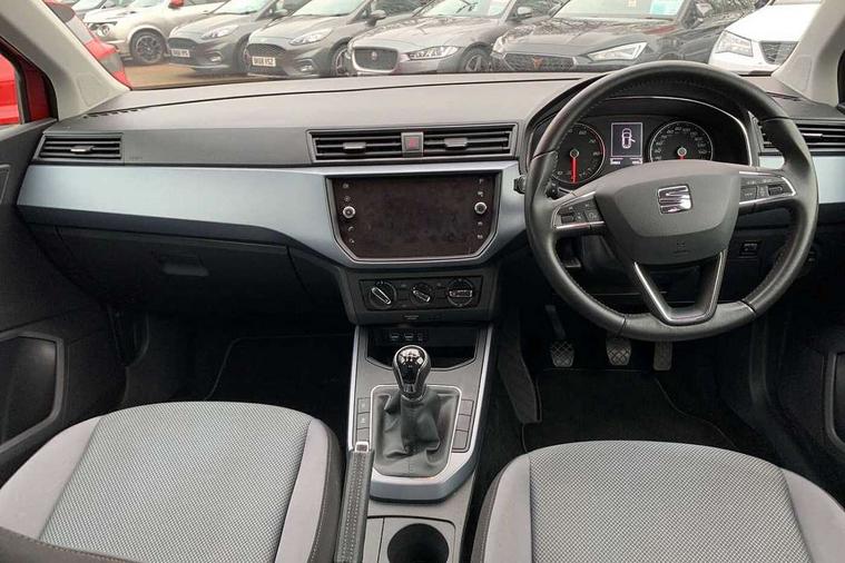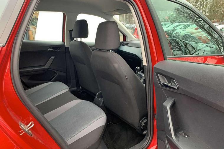 Interior chrome line trim, Connectivity pack plus - Arona, 17" Dynamic alloy wheels, 2 folding remote keys with window open/close function, Immobiliser, Locking wheel bolts, Remote central locking + deadlocks, 6 speakers, Bluetooth interface for hands free and audio streaming, DAB Digital radio, Steering wheel mounted audio controls, 3 point seatbelts on all rear seats, ABS+EBA, Child locks on rear doors, Driver/Front Passenger airbags, Electronic stability control, Front and rear seatbelt reminder, Front side/curtain airbags, Height adjustable active front headrests, Hill hold control + Tyre Pressure monitor, Multi-Collision braking, Passenger airbag deactivate switch, Tiredness recognition system, Traction control, Automatic activation of hazard warning lights, Automatic headlights, Black roof rails, Black window surrounds, Body coloured bumpers, Body coloured door handle inserts, Chrome grille surround, Electric adjustable door mirrors, Electric front/rear windows with one touch/auto up/down, Electric headlight adjustment, Front fog lights with static cornering function, LED daytime running lights, Rear window wash/wipe, 2 cupholders, 3 rear height adjustable headrests, 60/40 split folding rear seat, Air conditioning, Ambient interior lighting, Cloth upholstery, Double boot floor, Driver and passenger sunvisors, Driver/front passenger seat height adjustment, Dust/pollen filter, Footwell ambient lighting, Front courtesy lights, Front reading light, Height/reach adjustable steering column, Illuminated boot, Isofix attachments on rear seats, Leather handbrake, Leather steering wheel and gear knob, 'Lights On' Reminder warning buzzer, Cruise control, Electric speed sensitive power steering, Front assistant collision mitigation, Outside temperature display, Rear parking sensor, Trip computer, Comfort suspension,