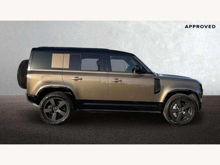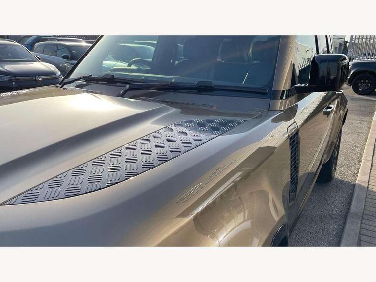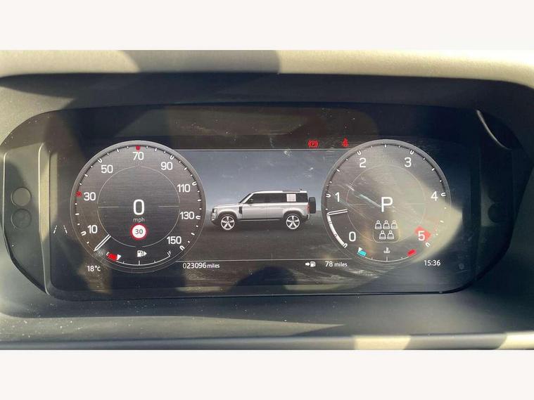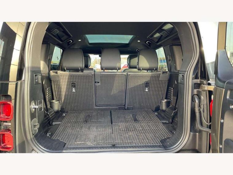 1 x USB-C (power only) & 1 x USB-C (power & data) in Row 1, 2 x USB-C in Row 2, 11.4" touchscreen, 2 x USB-C in Row 3, 360 degree parking aid, 3D Surround Camera with 360 View, 180 Rear View, Front Traffic Detection, Forward Vehicle Guidance, Tow Hitch Assist and clear sight Ground View, Adaptive cruise control, Android Auto, Apple CarPlay, Blind spot assist, Bluetooth system, Brake pad wear indicator, Clear exit monitor, Connected navigation pro, Driver condition monitor, Electric power assisted steering (EPAS), Interactive driver display, Lane keep assist, Push button start, Rear collision monitor, Rear traffic monitor, Traffic sign recognition with adaptive speed limiter, Trip computer, Wireless device charging, 8 speed automatic transmission, All wheel drive system, Twin speed transfer box, DAB Radio (Digital Audio Broadcasting), Meridian 700w surround sound audio system with 15 speakers, Pivi pro connected, Automatic headlight levelling, Automatic headlights, Black exposed rear recovery eyes, Body coloured bonnet, Centre high mounted stop light, Electric heated/power fold door mirrors with approach lights and auto dimming driver side, Electric windows with one touch open/close and anti-trap, Follow me home lighting, Front fog lights, Heated rear window with timer, Heated windscreen, Illuminated metal treadplates with brand name script, LED tail lights, Matrix LED headlights with signature DRL, Privacy glass, Puddle lights, Rain sensing windscreen wipers, Rear fog lights, Rear side wing doors, Rear wiper, Side hinged tailgate, Sliding panoramic roof, Standard tail door, Trailer stability assist, X-Dynamic badge, 12V power socket in loadspace, 2 seat bench in 3rd row, 3 seat bench in 2nd row, Alpine lights, Configurable cabin lighting, Durable rubber cabin flooring, Durable rubber loadspace flooring, Electric reach + rake adjustable steering column, Electrically adjustable steering column, Extended leather upgrade, Footwell lights, Front head restraints, Front passenger isofix child seat attachment, Heated steering wheel, Loadspace cover, Loadspace Hook, Multifunction steering wheel, No flat load floor storage, Overhead stowage for sunglasses, Rear headrests, Rear ISOFIX, Rear reading lights, Single front passenger seat, Soft close tail door, Storage glovebox, Sunvisors with illuminated vanity mirrors, Twin front cupholders, Air suspension pack - Defender SE/HSE/X-Dynamic SE/X-Dynamic HSE, Non-smoker package, Online pack with data plan - Defender, 7 three point seatbelts, ABS, Brake hold function, Cornering brake control (CBC), Customer configurable autolock, Driver and passenger airbags, DSC - Dynamic Stability Control, EBD - Electronic brakeforce distribution, Electric parking brake (EPB), Emergency brake assist, Emergency braking, ESP + traction control, Front airbags with passenger seat occupant detector, HDC - Hill descent control, Hill launch assist, Low traction launch, Power operated child locks, Remote for (e-Call, Optimised assistance call, InControl app, Climate, beep and flash and door), RSC - Roll stability control, Seat belt reminder, TPMS (Tyre pressure monitoring system), Alarm, Immobiliser, Intrusion sensor, Keyless entry, Locking wheel nuts, Secure tracker pro,