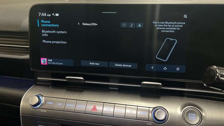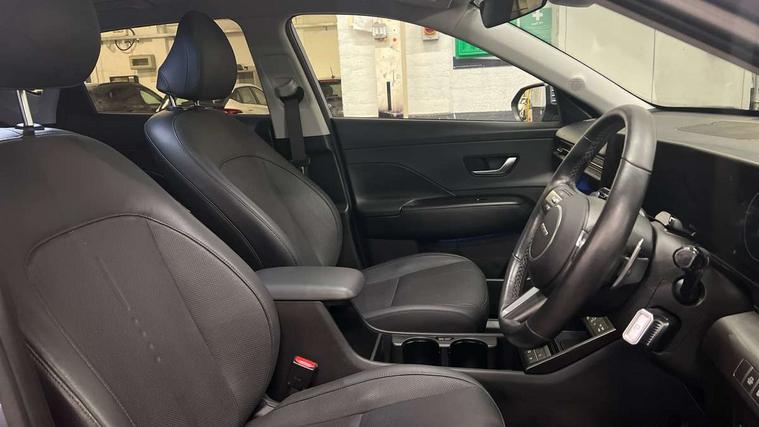 12.3" touchscreen centre console display satellite navigation with bluelink, live services and mapcare, Blind spot collision avoidance assist, Blind spot view monitor, Bluetooth connectivity with voice recognition, Digital clock, Driver status monitor (DSM), Driver supervision instrument cluster with 12.3" LCD display, eCall emergency call system, Feature on demand - Enabled, Forward collision avoidance assist (FCA 1.5) - Car, pededstrian, cycle and junction turning, Front parking sensor, HDA - Highway Drive Assist Level 1.5, Height adjustable power tailgate, Intelligent speed limit assist, Lane follow assist, Lane keep assist, Leading vehicle departure alert (LVDA), Parking Collision Avoidance Assist-Reverse (PCA-R), Parking distance warning - side, Parking system with rear camera and guidance system, PAS, Rear cross traffic collision avoidance (RCCA), Rear parking sensor, Roadside assistance, Safe exit warning (SEW), Smart cruise control with stop and go functionality, Smartphone integration compatible with Apple CarPlay and Android Auto, Surround view monitor, Windscreen washer fluid sensor and warning indicator, Wireless phone charging pad, 2 front USB C and 2 rear USB C charging points, Bose Premium Audio system with 7 premium speakers + subwoofer, DAB Digital radio, Steering wheel audio, phone and cruise controls, Auto dimming rear view mirror, Automatic headlights with dusk sensor, Automatic windscreen wipers with rain sensor, Black painted wheel arch inserts, Body colour bumpers, Body colour exterior door handles, Body coloured door mirrors, Door mirror LED indicator lights, Electric front windows with anti-trap mechanism and one touch control, Electric rear windows, Electric sunroof, Electrically adjustable and heated door mirrors, Horizon centre LED DRL, LED projector headlights, LED upper and lower rear lights, Power folding door mirrors, Privacy glass - Rear windows and tailgate, Rear roof spoiler with integrated LED brake light, Rear side wing doors, Rear skid plate - silver, Rear wiper, Roof rails, Solar glass with front door glass and windscreen, Tinted glass in front and rear doors, Windscreen auto defog function, 12V power outlet in front console, 2 zone climate control, 3 seat bench in 2nd row, 40/20/40 split folding rear seat, Adjustable head restraints, Ambient lighting, Driver and passenger front seat pockets, Driver's seat electric adjustments, Driver's seat lumbar support, Driver/passenger sunvisors and illuminated vanity mirrors, Floor mats, Front passenger's seat electric adjustments, Heated front seats, Heated rear seats, Heated steering wheel, Height/reach adjustable steering column, Isofix rear child seat fastenings, Leather upholstery, Leather wrapped steering wheel, LED centre interior light, LED front interior light, Luggage compartment LED lighting, Luggage net, Luggage shelf, Metal paint effect interior door handles, Parcel shelf, Rear centre armrest, Rear centre console with air vents, Shift by wire SBW, Single front passenger seat, Ventilated front seats, Vertical adjustment rear head restraints, Trailer wiring package - Kona, Airbag - front, front side, curtain and centre front airbag, Anti-lock brake system (ABS), Childproof rear door locks, Downhill brake control, EBD + Brake Assist, Electric parking brake, Electronic stability control, Fasten seatbelt reminder, Fixed 3 point for second row centre passenger seatbelt, Front seatbelt pretensioners, Height adjustable front seatbelts, Hill start assist control (HAC), Passenger airbag deactivate switch, Rear seat alert, Traction control, Tyre pressure monitoring system, Alarm/immobiliser, Deadlocks, Folding key, Locking wheel nuts, Remote central locking, Smart key with keyless entry and engine start/stop button, Five year annual vehicle health checks, 18" Alloy wheels, Temporary mobility kit (TMK),