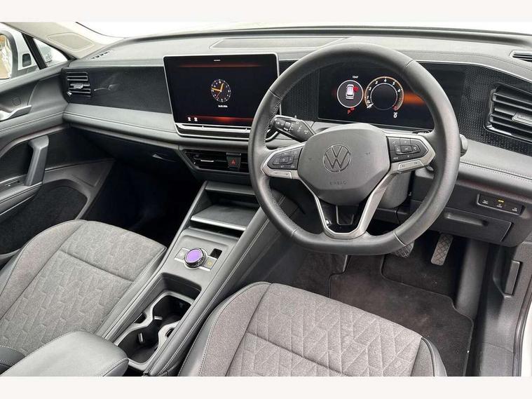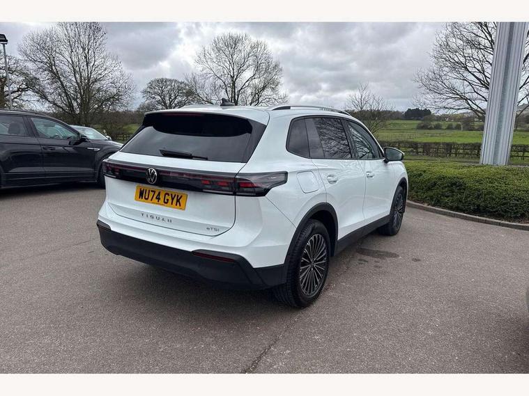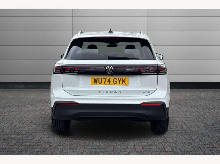 Adaptive cruise control (ACC), Advanced driver attention and drowsiness monitor, Bluetooth mobile phone interface, Car2X technology, Digital Cockpit Pro - 10.25" high resolution dash display screen with customisable menus and information, Dynamic road sign display, E-Sim card for online connectivity, eCall emergency call service, Front Assist - Autonomous emergency braking with pedestrian and cyclist monitoring, Lane change system, Side assist, Rear traffic alert and Exit warning system, Lane keeping system Lane Assist, Multifunction front facing camera, Oncoming vehicle braking when turning including swerve support, Park assistance plus with front and rear parking sensors, Power assisted steering with speed sensitive, Start/stop system with regenerative braking, Warning signal and warning light for front and rear seatbelts not fastened, Wireless App-Connect, Front wheel drive, Digital radio reception (DAB), Diversity antenna for FM reception, Ambient lighting with logo projection, Auto dimming interior rear view mirror, Automatic headlight control system, Body coloured bumpers and air intake with chrome trim, Body coloured door handles, Body-coloured exterior mirror housings, Coming/leaving home lighting function, Heat insulating glass in side and rear windows, Heat insulating windshield, Heated rear window, High level 3rd brake light, Illuminated door handle recesses, Illuminated lightline between headlamps, Rain sensor windscreen wipers, Rear fog light on one side, reversing light on both sides, Rear side wing doors, Rear wiper, 12V outlet in center console rear and in luggage compartment, 12V socket in centre console, 3 bench rear seats in 2nd row, Air care climatronic 3 zone air conditioning system with rear air conditioning control panel, Carpet mats, front and rear, Centre console with illuminated storage compartment with sliding cover and two drinks holders, Ceramique headlining, Door and side trim panel in foam film and woven fabric, Front centre armrest, ISOFIX anchors for child seats on outer rear seats and front passenger seat. Compatible with i-Size, Mechanical rear seat release, Power adjustable lumbar support in front, Rear bench seat, split folding, longitudinally movable and folding with load-through hatch and centre armrest, Safety optimised front head restraints, Single front passenger seat, Sun visors with illuminated vanity mirrors, Three rear head restraints, Variable luggage compartment floor, Comfort package with park assist plus and Safelock - Tiguan, Design package - Tiguan, 3 point seat belt for centre rear seats, 3 Point seat belts in front with pretensioners, 3 point seatbelts in outer rear with ECE label, Driver and front passenger airbag with front passenger airbag deactivation, Electronic parking brake with auto hold, Front and rear curtain airbags, Front and rear side airbags, Front centre airbag, Front disc brakes, Manual child proof rear door locks, Rear disc brakes, Two tone horn, Warning triangle, Anti theft wheel bolts, Soul instrument panel, Airstop tyres,