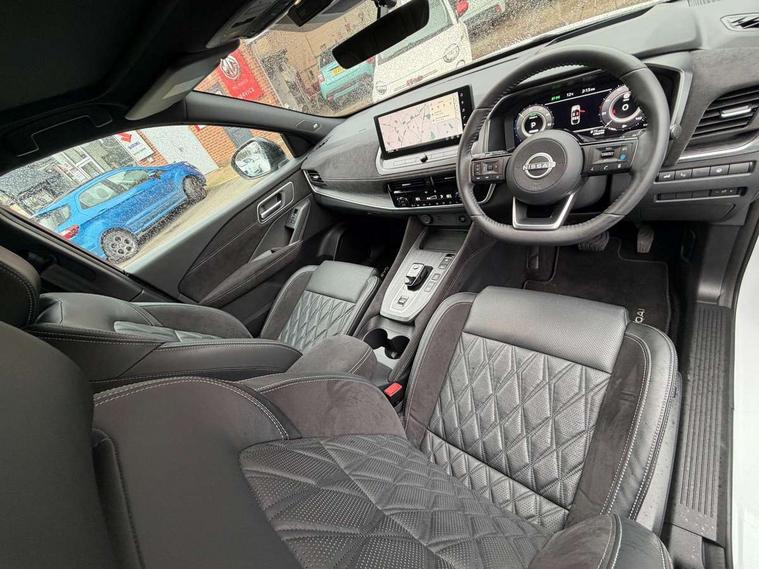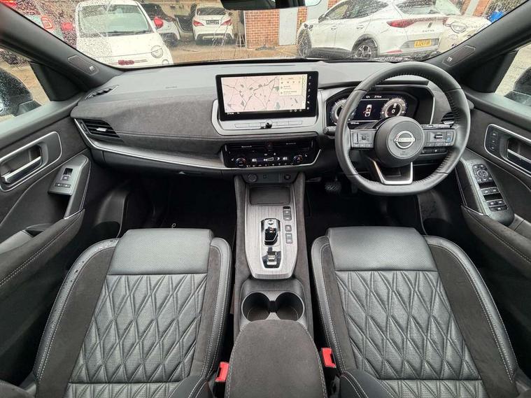 2 front USB-C ports, 2 rear USB-C ports, 360 degree Intelligent around view monitor with moving object detection, Advanced windscreen head up display, Blind spot intervention, Blind spot warning, Drive assist custom mode, Drive modes (sport, normal, eco), Driver drowsiness and attention warning, e-Pedal step, Electric speed sensitive power steering, Emergency and breakdown call, Emergency lane keep assist, Emergency Stop Signal (ESS), Engine start/stop button, EV mode switch, Event data recorder, Front and rear parking sensors, Full Digital 12.3" TFT Digital Combimeter, Google virtual personal assistance, Hands free power tailgate, Idle stop/start system, In-car WIFI hotspot, Intelligent Cruise control (ICC), Intelligent forward collision warning, Intelligent speed assist, Lane departure warning system, Nissan connect 12.3 inch touchscreen infotainment system, Nissan connect navigation with google maps, Nissan connect services 2.0 (Google Automotive System), Outside temperature sensor, Rear cross traffic alert, Reversing detection, Traffic jam pilot, Wireless Apple CarPlay/Android Auto, Wireless charging pad, Limited slip differential, Multi link suspension, 10 Bose speakers - 2 tweeters, 6 high and medium frequency door speakers and 2 in subwoofer, AM/FM audio system with DAB, Bluetooth audio streaming, Bose acoustimass bass box, Auto dimming frameless rear view mirror, Auto rear wiper when reversing, Body colour mirror caps, Body coloured bumpers, Body coloured door handles, Bodyside mouldings, Chrome side window finisher, e-POWER badging, Electric auto folding door mirrors, Electrically adjustable and heated door mirrors with LED turn indicator, Follow me home headlights, Glossy black bumper inserts and fenders, High beam assist, Intelligent auto headlights, LED 3rd brake light, LED daytime running lights, LED headlights with adaptive driving beam, LED rear lights, LED sequential turn lights, One touch front and rear electric windows with remote opening and closing, One touch passenger window, Rear privacy glass, Rear roof spoiler, Rear side wing doors, Rear styling plate, Reverse tilting door mirrors, Shark fin antenna, Silver roof rails, Splash free rain sensing wipers, Super RED rear LED lights, Super UV and infrared cut glass, Thermaclear heated windscreen, 3 bench rear seats in 2nd row, 3 rear headrests, 60/40 split folding rear seat bench, Chrome interior door handles, Dark headlining, Driver seat back pocket, Dual zone automatic climate control with pollen filter, e-POWER shifter, Fixed Glass roof with electric sunshade, Front door with bottle holders, Heated front seats, Heated steering wheel, Height adjustable front headrests, Luggage board system, Luggage space lighting, Multifunction steering wheel, Passenger seat back pocket, Quilted premium leather upholstery, Rear door bottle holders, RGB ambient light (Full area coverage), Single front passenger seat, Smooth leather steering wheel, Tilt/telescopic adjustable steering wheel, Two rear isofix child seat anchorage points with top tether, 3x3 point rear seatbelt pretensioners + load limiters, Autonomous emergency braking, Child locks on rear doors, Curtain and front side, far side airbags, Driver and passenger airbags, Driver, passenger and 2nd row rear seat belt reminder, Electric handbrake with auto hold function, Front seatbelt pretensioners + load limiters, Height adjustable front seatbelts, Hill start assist, intelligent front emergency braking, Rear automatic braking, Tyre pressure monitoring system, Vehicle dynamic control, Engine immobiliser, Intelligent key with walk away lock and approach unlock functions, Remote central door locking with deadlocking, Thatcham alarm, 20" Diamond cut alloy wheels, Tyre puncture repair kit,