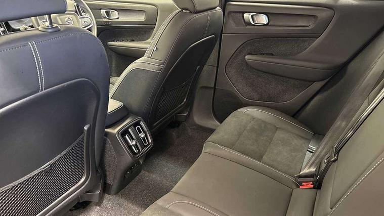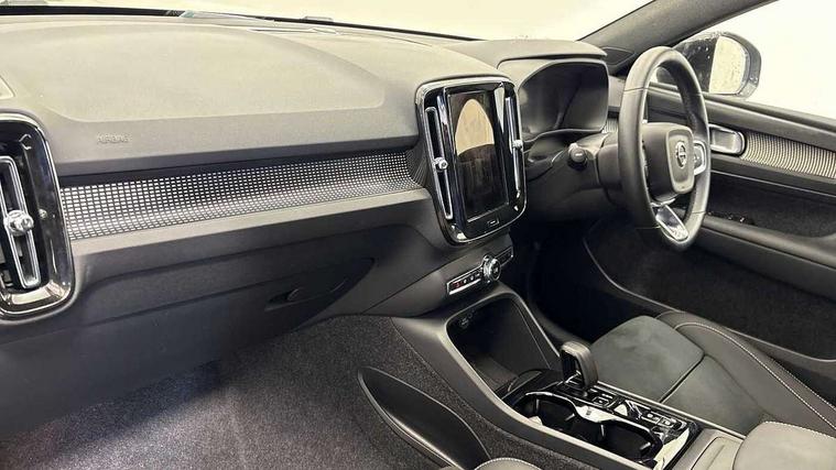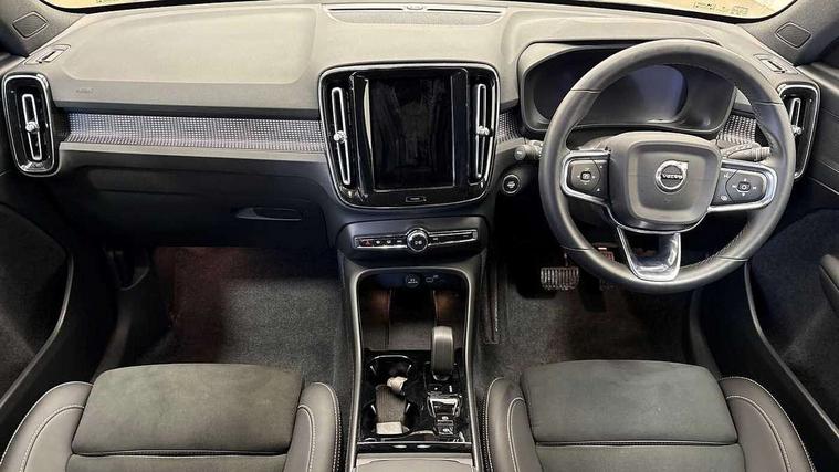 12.3" Progressive Driver Display, 9" centre console portrait touch screen, Adjustable steering wheel force, Android auto (Wired), Apple carplay (wired), Bluetooth handsfree system, Driver alert control, Driver assistance (pilot assist and adaptive cruise control), Driver awareness - Blind spot information system with steer assist, cross traffic alert with autobrake and rear collision warning and mitigation, E-call, Front park assist, Google automotive services - Enabled entertainment apps, navigation with google maps, voice recognition with google assistant, Hands free power tailgate, Intelligent speed assistance, Lane keeping aid, Oncoming Lane Mitigation, Rear park assist, Speed sensitive steering, Volvo cars services with app - Driving journal, emergency and breakdown call, engine remote start, remote door locking/unlocking and vehicle dashboard, Wireless/Inductive Mobile Phone Charging, Automatic transmission with start/stop and manual change functions, Dynamic chassis, DAB Digital radio, Steering wheel mounted remote controls, Adaptive brake lights with high level LED brake lights, Auto dimming feature for exterior door mirrors, Auto dimming interior mirror, Automatic headlamp levelling, Automatic LED Headlights + Active high beam incorporating daytime running lights, Colour coordinated auto folding and heated power door mirrors, Dark tinted windows - rear side windows and rear screen, Front aluminium tread plates, Front and rear electric windows, High gloss black front and rear skid plate, High gloss black front bumper deco, High gloss black front grille strikethrough and ironmark, High gloss black rear model, engine and volvo logo badges, High gloss black window trim, Home safe and approach lighting, Integrated roof rails in high gloss black, LED front fog lights, Puddle lights, Rain sensor with automatic windscreen wiper activation, Rear side wing doors, Rear wiper, Roof antenna, Roof spoiler, Visible VIN plate, 12V socket in front tunnel console and luggage compartment, 2-Zone electronic climate control with CleanZone air quality system and pollen filter, 3 seat bench in 2nd row, 3 Spoke tailored steering wheel with chrome trim, 60/40 versatile split folding rear seat, Centre console cupholders and storage, Charcoal headlining, Connect textile/microtech upholstery, Flexible load floor and grocery bag holder, Floor mats, Front cabin courtesy lights, Front door pocket, front cupholder, ambient front door, rear reading, rear courtesy, instrument panel and tailgate lighting, Front footwell illumination, Front headrests, Front reading lights, Front seat cushion extensions, Front side step illumination (under door), Glovebox bag hook, Heated front seats, Height adjustable passenger seat, Height/reach adjustable steering column, High gloss centre tunnel deco, Illuminated glovebox, Illuminated luggage compartment, Illuminated vanity mirrors + ticket holder, Integrated waste bin, Isofix attachments on outer rear seats, Load cover, Load protection net, Multi directional lumbar support for driver and passenger seat, Power driver seat with memory + exterior mirrors memory, Rear armrest with cupholders, Rear headrests, Single front passenger seat, Underfloor cargo storage, Climate pack without heated front seats - XC40, 3x3 point rear seatbelts, City safety with steering support with Pedestrian + cyclist + front collision warning with full auto brake and rear auto brake, Driver and passenger airbags, Drivers knee airbag, Electronic parking brake with auto hold, First aid kit, Front and outer rear seatbelt reminder and pretensioners, Front seats SIPS airbags, Hill descent control, Hill start assist, Inflatable curtain, Passenger airbag cut-off device, Power child locks on rear doors, Road sign information display, Run off Road Protection, SIPS (Side Impact Protection System), Slippery road and hazard light alert, Stability and Traction Control with Spin control, Engine Drag Control and Corner Traction Control, Tyre pressure monitoring system, Vehicle deceleration control with Anti-lock Brake System, Electronic Brake Distribution and Emergency Brake Assist, Warning triangle, WHIPS whiplash protection system - front, 2 x Key integrated remote control central locking including with deadlocking system and auto open/close windows, Anti-theft alarm including immobiliser/volume sensor + level sensor, Keyless drive includes keyless entry and keyless start, Locking wheel nuts, 20" 5 spoke high gloss black alloy wheels,