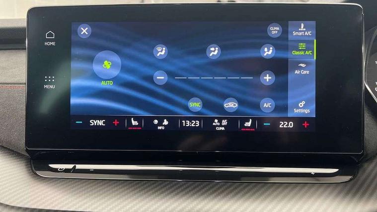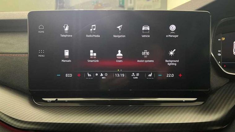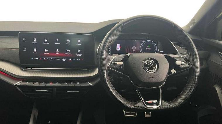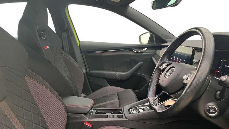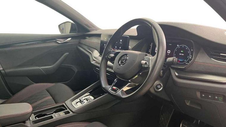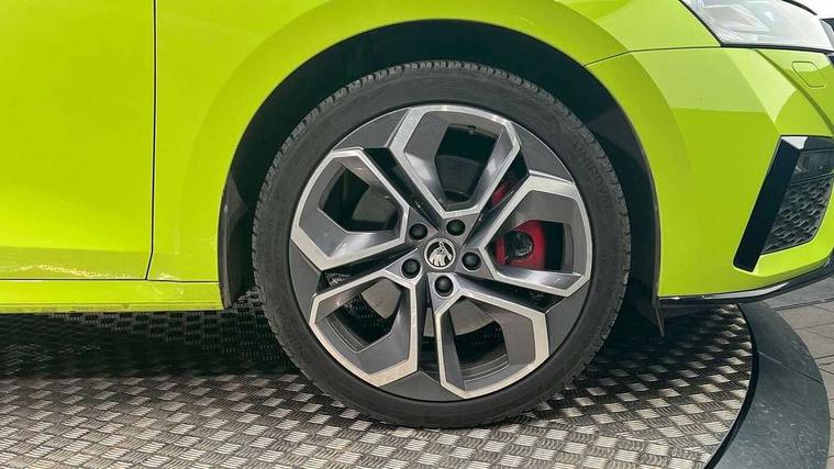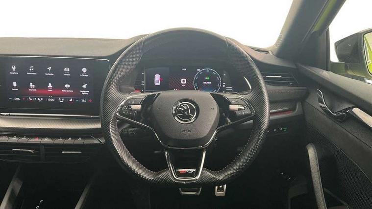 1x USB Type C port in rear view mirror (charging only), 2x USB Type C ports in rear of front centre armrest (charging only), Bluetooth system, Columbus satellite navigation with 10" touchscreen display, Driver fatigue sensor, eCall emergency system, Front and rear parking sensors with manoeuvre assist, Front assist system, Progressive dynamic steering, Speed limiter, Turn Assist, Virtual Cockpit - 10.25" digital display, Virtual pedal with electrically operated boot door (Rear LED lights (high functionality), dynamic indicators, Voice control system, Wireless SmartLink for Apple Car Play, Electronically controlled limited slip differential, Front and rear stabilizers, 2x USB Type C ports (for charging and data transfer), 8 Speakers, DAB Digital radio, Aero front windscreen wipers with intermittent function, Auto dimming rear view mirror, Body colour door handles, Chrome exhaust tailpipes, Door sills with vRS logo, Electric front and rear windows, Exterior gloss black sports styling including front grille, side strip, window surrounds, door mirror and badging, Full LED Matrix headlights with AFS, rear LED lights (high functionality) and dynamic indicators and cornering front fog lights, Headlight washers, Heated rear windscreen, High level third brake light, Ice scraper in fuel cap, LED daytime running lights, Rain and light sensors, Rear fog light on one side, Rear privacy glass, Rear side wing doors, vRS bumpers and lip spoiler, 3 rear headrests, 3 seat bench in 2nd row, 4 foldable roof handles, Aluminium pedals, Black headlining, Black microsuede padded dash panel with red contrast stitching, Chrome inner door handles, Front centre armrest, Front head restraints, Heated front seats, Illuminated glovebox, Leather trimmed gearshift lever, Luggage compartment lighting x1 light, Mechanical rear seat release, Parcel shelf - folding, Single front passenger seat, Sunglasses storage, Textile floor mat set, Three spoke leather sports multifunction steering wheel with paddles, Ticket holder, Umbrella in door panel, Unsplit rear bench seat and split folding backrest, LED interior light pack - Octavia, 3 point front/outer rear seatbelts+pre-tensioners, Alarm with interior monitoring, tilt sensor and back up horn, Automatic door unlocking in case of crash, Automatic fuel cut off in case of crash, Automatic warning lights in case of emergency braking, Curtain airbags and front side airbags, Driver and front passenger airbags, Drivers knee airbag, Electronic parking brake, ESC including ABS, EBV, MSR, ASR, EDS, HBA, DSR, Front and rear disc brakes, Front central airbag, Hill hold control, Hill start assist, ISOFIX on front passenger seat and outer rear seats, Manual rear child locks, Passenger airbag deactivate switch, Pro active services, Red brake calipers, Two tone horn, Tyre pressure monitor, Visual and acoustic seat belt reminder, Warning reflectors in front door, Door locks with immobiliser, Keyless entry and start/stop including rear doors, Remote central locking, Carbon optic decorative inserts, Gloss black air vent surrounds, 19" Altair anthracite alloy wheels,