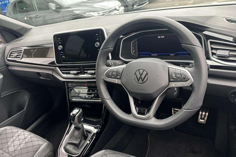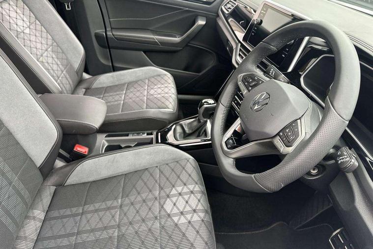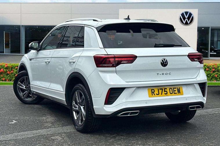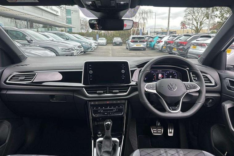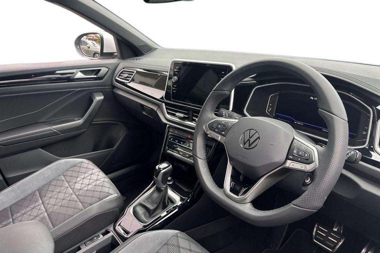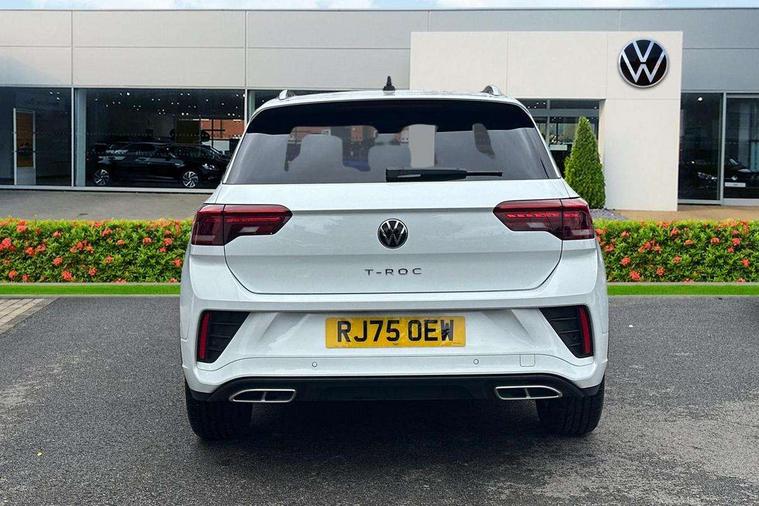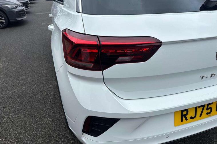 10.25" Digital cockpit pro, Advanced driver attention and drowsiness monitor, Emergency call service, Lane keeping system Lane Assist, Mobile phone interface, Modified key software - reduce switch off time for key status change to Long no motion, Online services, Park assist including front and rear parking sensors, Service interval indicator, Tailgate/trunk lid release from outside, Think blue trainer driver tips and journey analysis, Warning sound and light for front seatbelts unfastened, Wireless app connect, Battery regeneration during braking, Start/stop function with battery regeneration, DAB Digital radio, Diversity antenna for FM reception, Front and rear 6 speakers, Music playback - MP3, WMA and AAC files, Premium USB cable in choice of either Apple or Android smartphone compatibility, SD card slot, Simultaneous pairing of 2 compatible mobile devices, Title and cover art display, We Connect and We Connect Plus functionality, Auto dimming interior rear view mirror, Automatic hazard lights activation under emergency braking, Automatic headlight control with LED separate daytime running lights with coming/leaving home function, Body coloured exterior mirror housings and door handles, Electrically adjustable and heated door mirrors, Extended roof spoiler, Exterior mirrors aspherical on driver side, convex on front passenger side, External USB type C socket and charging sockets, Front windscreen wiper with intermittent wipe and 4 position delay, Heated rear window, LED 3rd brake light, LED rear combination lamps, LED rear number plate lights, Power windows with comfort operation and circuit breaker, Privacy glass for rear side windows and rear window, R-Line design body coloured bumpers, Rain sensor, Rear exhaust tailpipe, Rear fog light on one side and reversing lights on both sides, Rear side wing doors, Rear wash/wipe with intermittent wipe setting, Remote electrically foldable door mirrors, puddle lights and reverse activated passenger's door mirror, 12V power socket in centre console, 3 rear head restraints, 3 seat bench in 2nd row, 4 load lashing points in luggage compartment, Air care climatronic air conditoning system with active combination filter and 2-zone temperature control, Black roof lining, Chrome plated decorative trims, Chrome plated radiator grille inserts, air vent surrounds and light switch surrounds, Door and side trim panel with leatherette insert, Front + rear carpet mats, Front centre armrest, Front cupholders x 2, Front footwell illumination, Front reading light, Front scuff plates with R Line logo, Front seat back storage pockets, Glove compartment door with light, Instrument lighting, white adjustable panel illumination, Interior ambient lighting and surround lighting, Interior light delay, Isofix child seat preparation, Leather gearshift handle, Load-through provision with cup holder when folded down ('Unsplit rear seat bench, split folding backrest, with centre armrest), Luggage compartment lighting, Single front passenger seat, Stainless steel pedals, Storage compartment in left and right luggage area, Storage compartment in rear doors, Storage compartments in driver and front passenger doors, Sunvisors with illuminated vanity mirrors, Variable boot floor, height adjustable and removable, Driver assistance pack without proactive passenger protection - T-Roc, 3 point height adj front seatbelts + pretensioners, 3 point seatbelts in outer rear with ECE label, ABS, Child locks on rear doors, City emergency braking and pedestrian monitoring, Driver and front passenger airbag with front passenger airbag deactivation, Driver and front passenger safety-optimised head restraints, Drivers seatbelt reminder, Electronic parking brake, Electronic Stability Control (ESC) inc EDL (Electronic Differential Lock) and ASR (Traction Control), Front and rear passengers curtain airbag system including front side airbags, Hill start assist, Predictive pedestrian protection, Rear disc brakes, Two tone horn, Tyre pressure loss indicator, Volkswagen roadside assistance, Piano black decorative inserts in dashboard and front door trim panels, Trims for alloy wheels,
